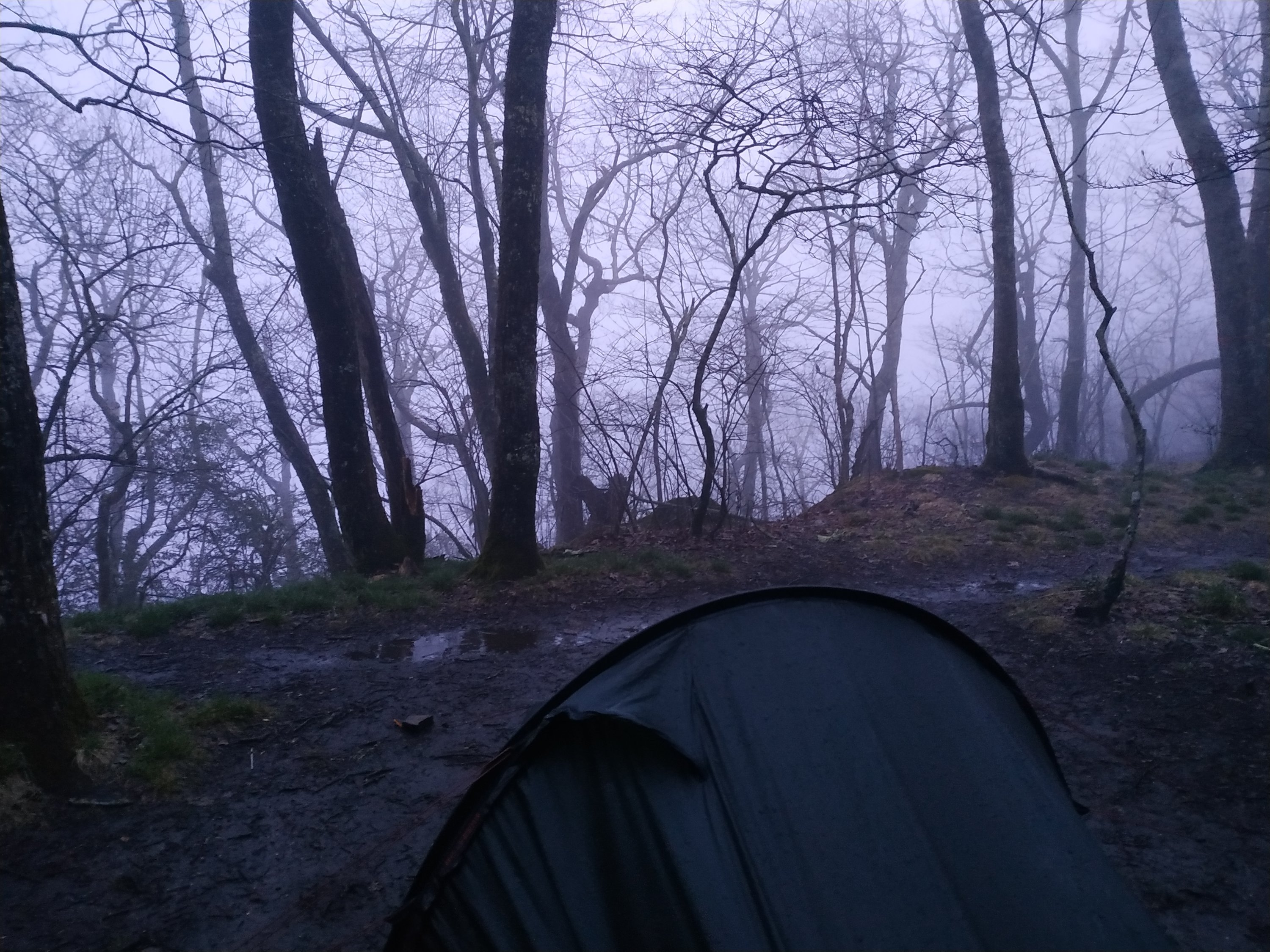 Nachdem der Regen nachgelassen hat, habe ich mich gegen 7h aus meinem Schlafsack gepellt. Die Aussicht war alles andere als schön.
