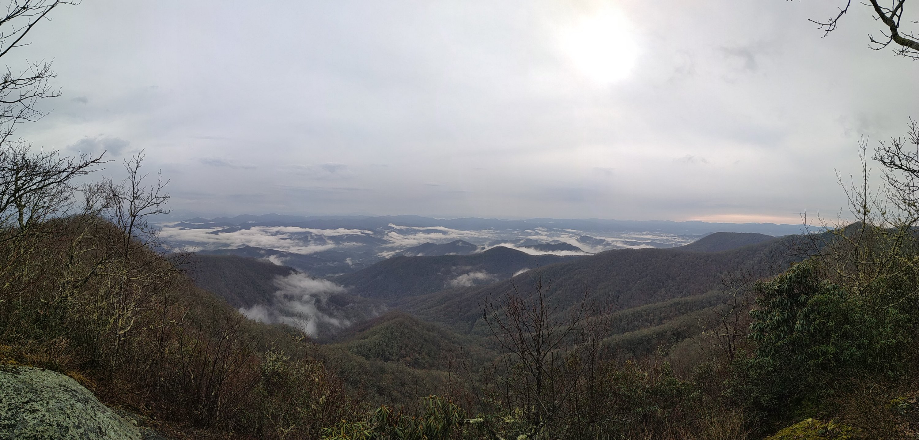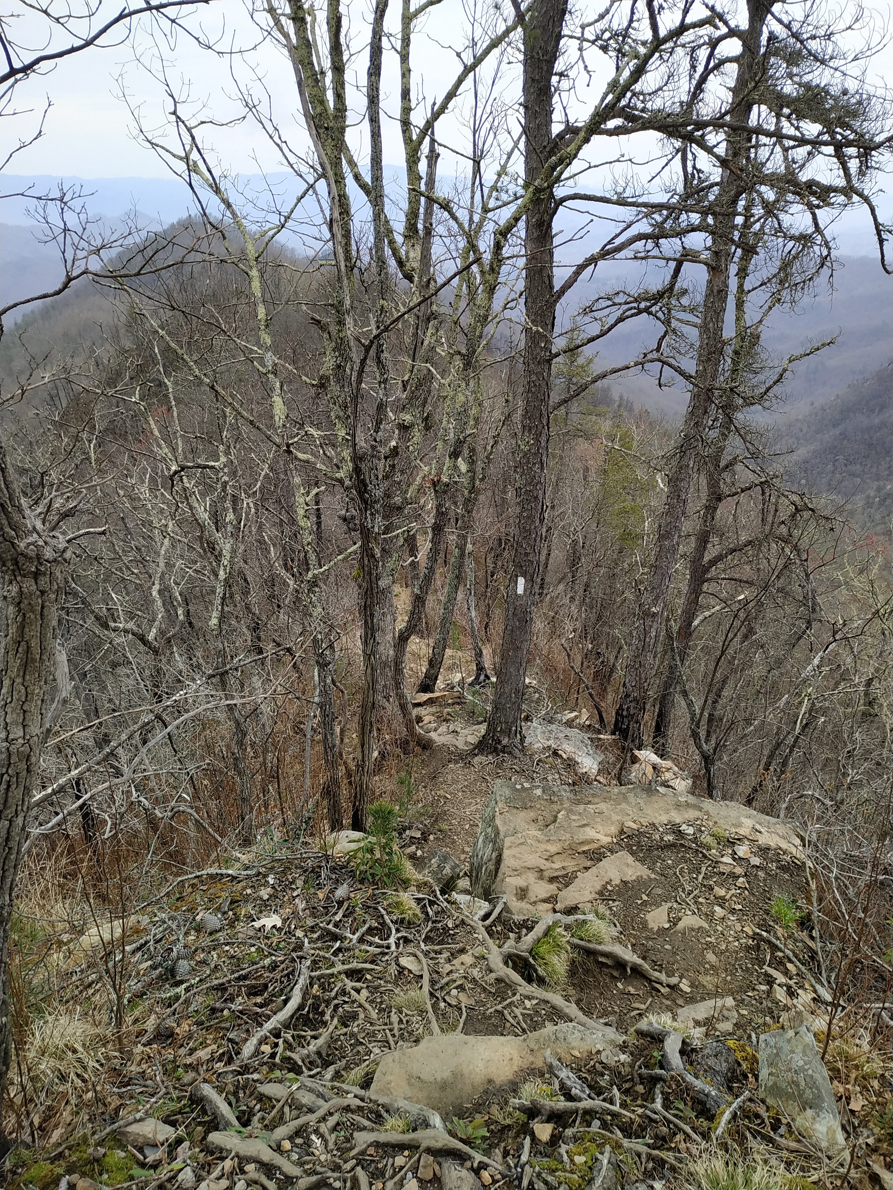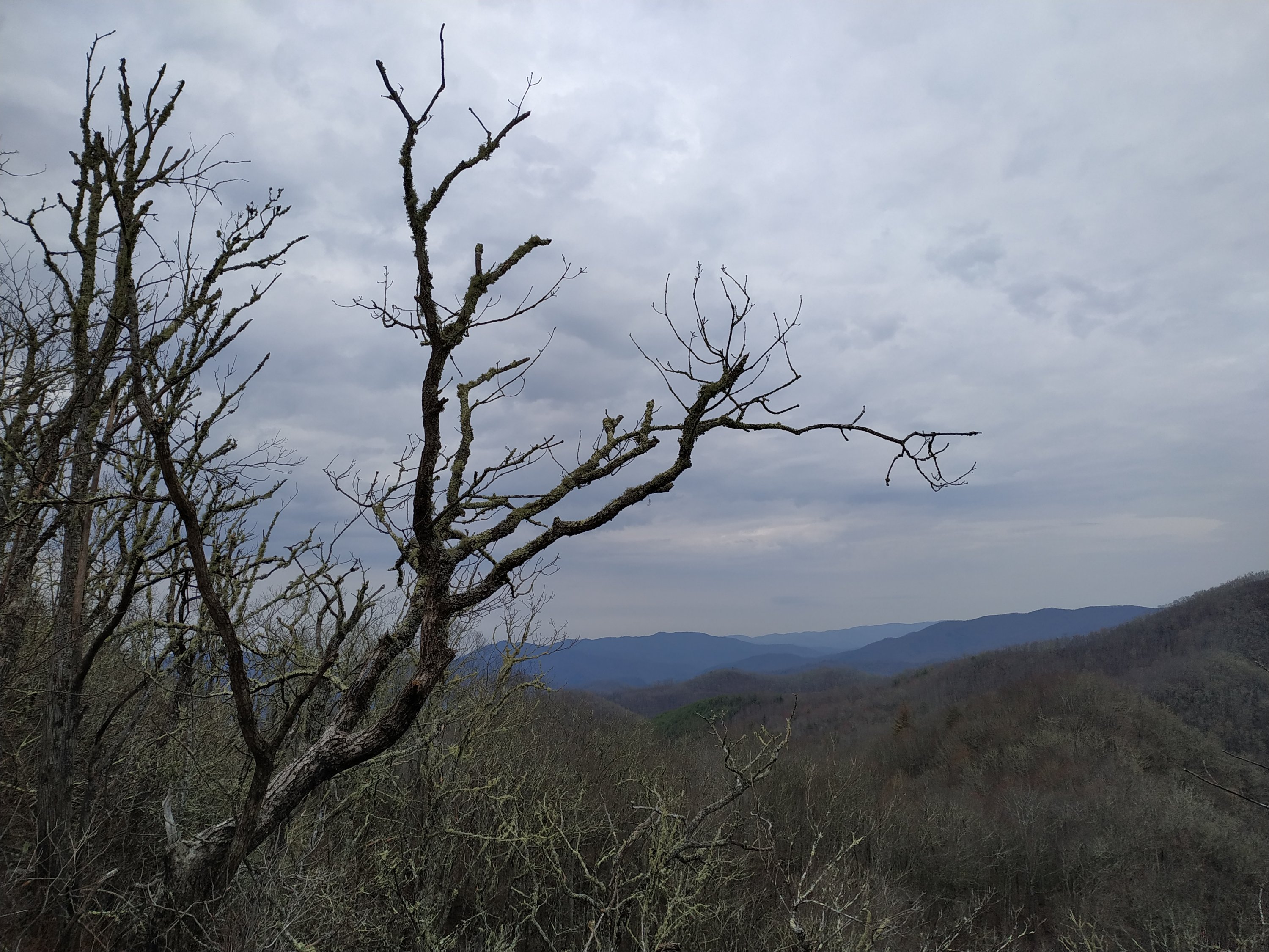 Durch den noch regennassen Wald ging es erst einmal etwas aufwärts, bevor der erste Abstieg über 1.200 Fuss nach Tellico Gap folgte. Die Aussicht auf die aufsteigenden Wolken zwischen den Bergkuppen war wunderschön.