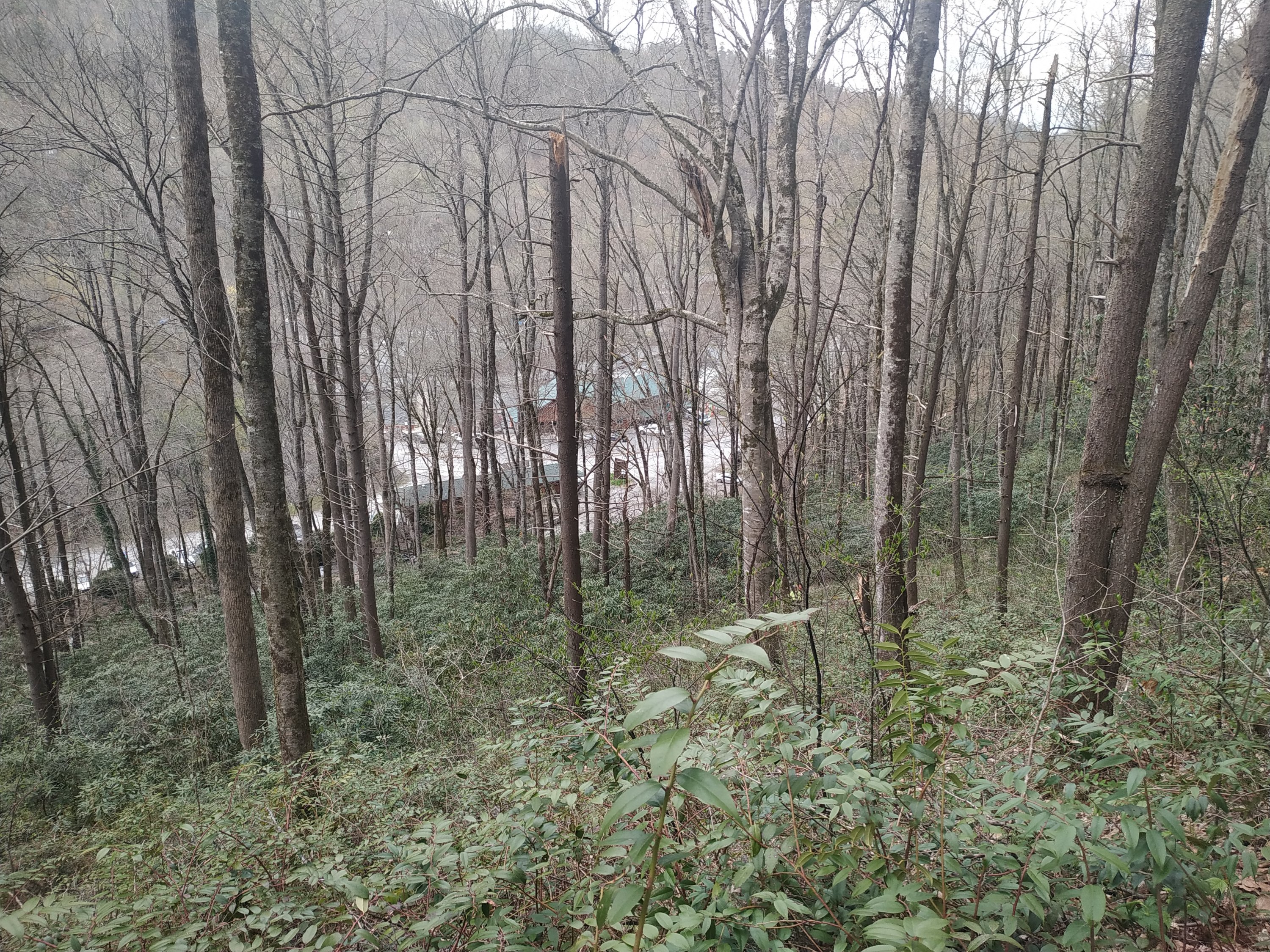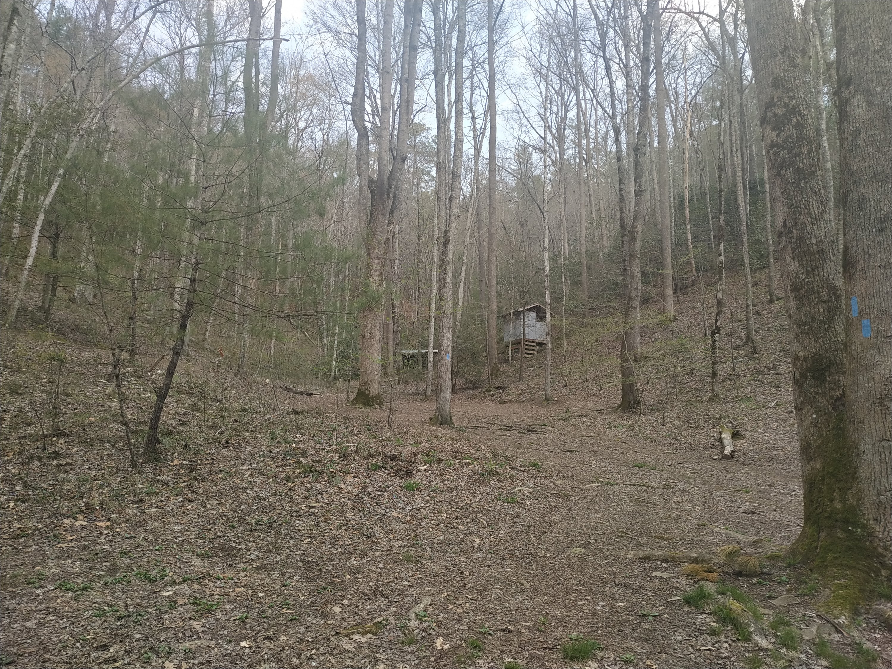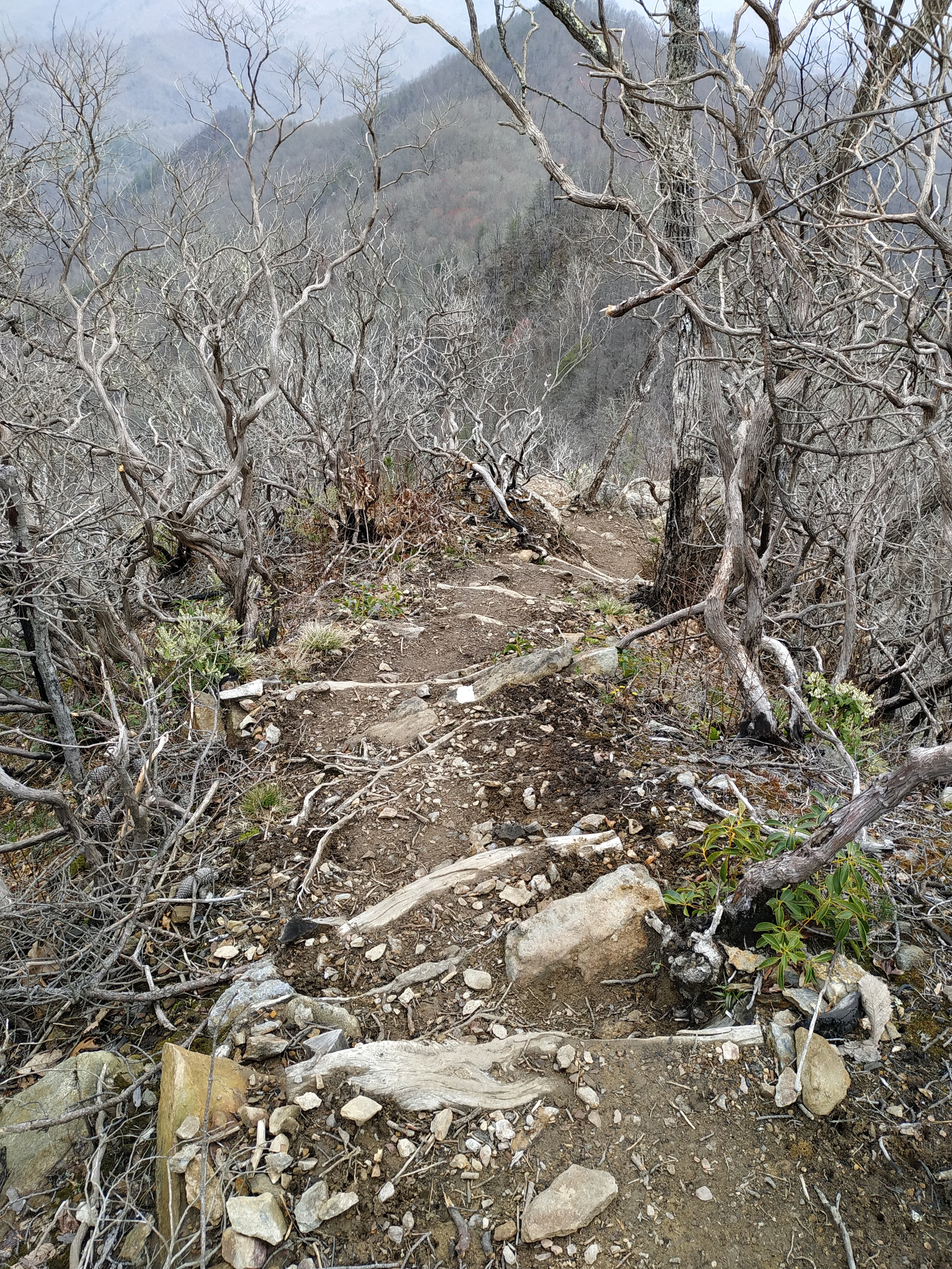 Durch den noch regennassen Wald ging es erst einmal etwas aufwärts, bevor der erste Abstieg über 1.200 Fuss nach Tellico Gap folgte. Die Aussicht auf die aufsteigenden Wolken zwischen den Bergkuppen war wunderschön.