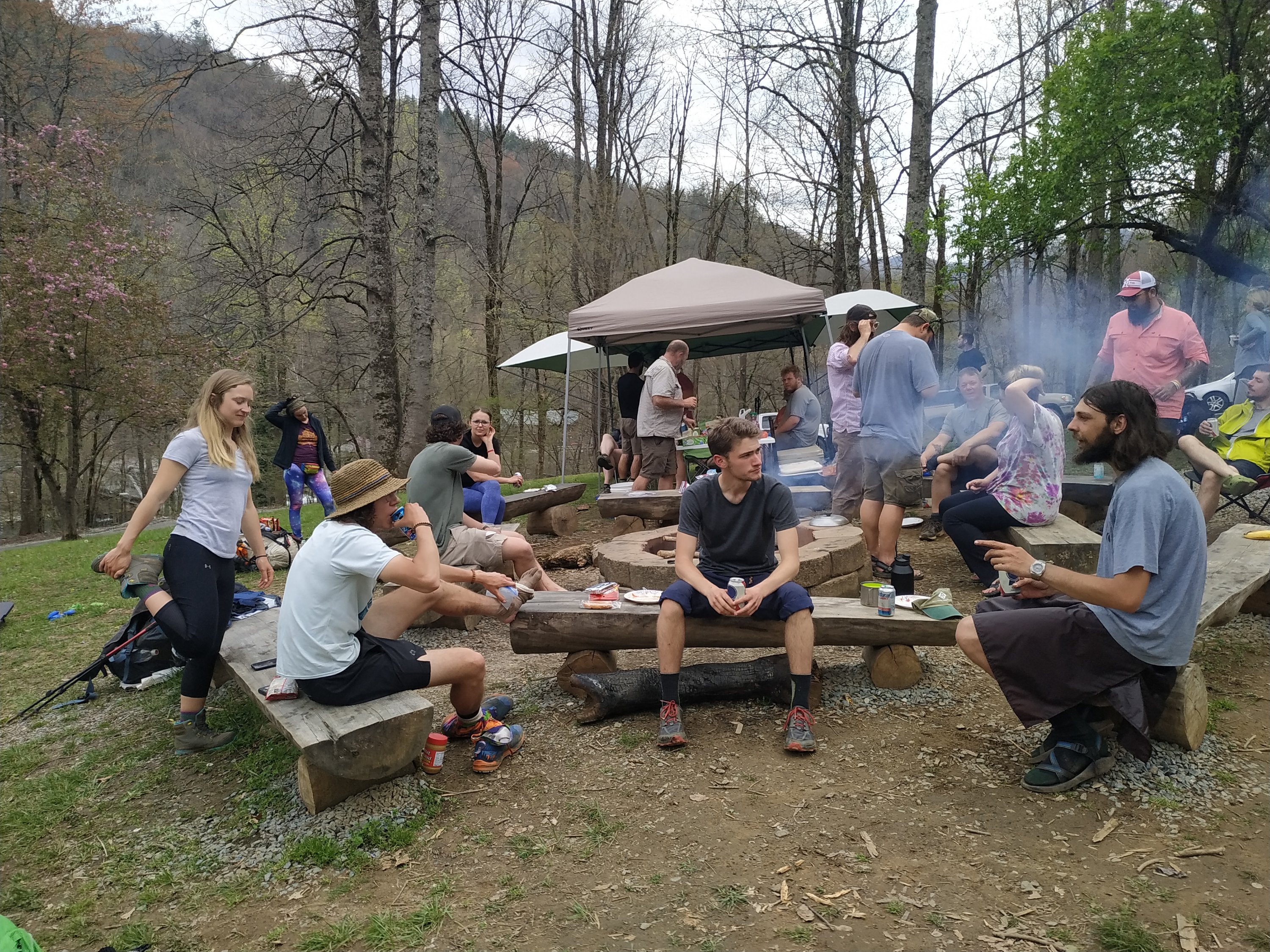 Um 15h war ich dann in Nantahala. Und hier gab es eine tolle Überraschung: das erste Mal richtige Trail Magic. 5 Mann aus unterschiedlichen Staaten haben sich zusammengetan und haben ein Barbecue mit Snacks, Bier, Obst und Vorräten spendiert. Das war Ihr Danke schön für die Großzügigkeit, die sie während Ihrem Thru-Hike erlebt haben.