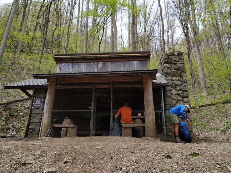 Kurz vor dem Ende kommt noch ein ganz besonderer Shelter: Davenport Gap Shelter. Das besondere an diesem Shelter ist, dass er als einziger noch einen Bärenkäfig hat. Früher hatten alle Shelter solche Schutzkäfige. Dann haben einige Intelligenzbestien aber begonnen, Bären durch den Käfig hindurch zu füttern und …