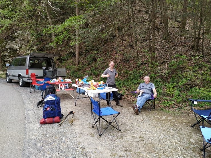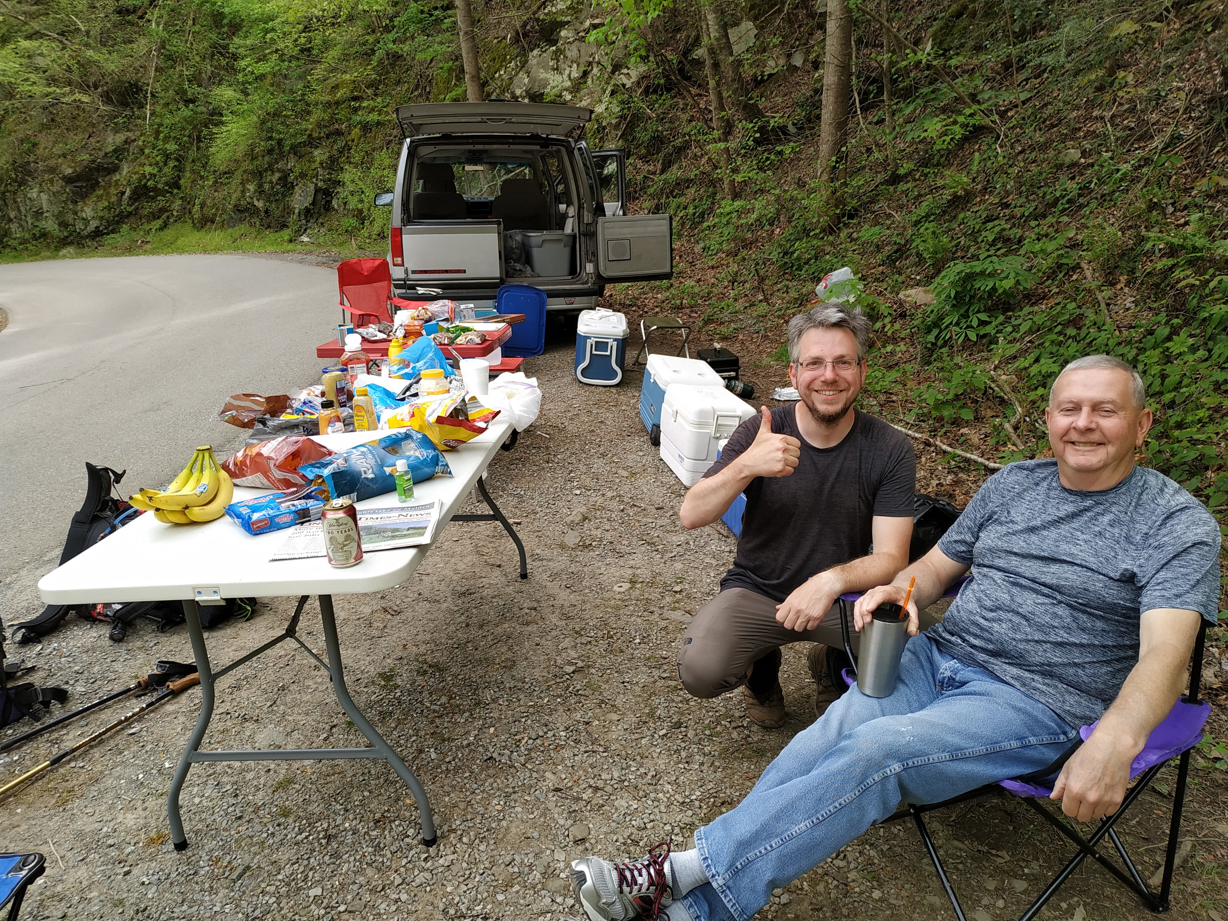 Davenport Gap an Meile 239,1 markiert das offizielle Ende des Great Smoky Mountains National Parks. Hier hatte ich dann das zweite Glück des Tages. Tugboat, ein Freiwilliger Helfer im National Park und Tierbeobachter hat etwas Trail Magic spendiert. Die kalte Cola und die Banane waren super lecker.