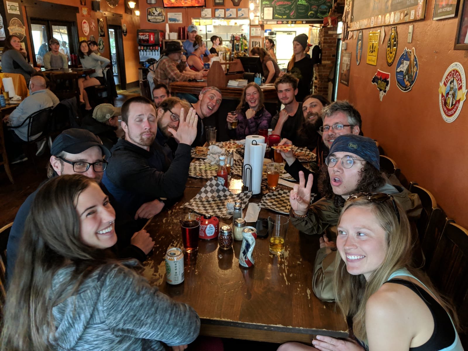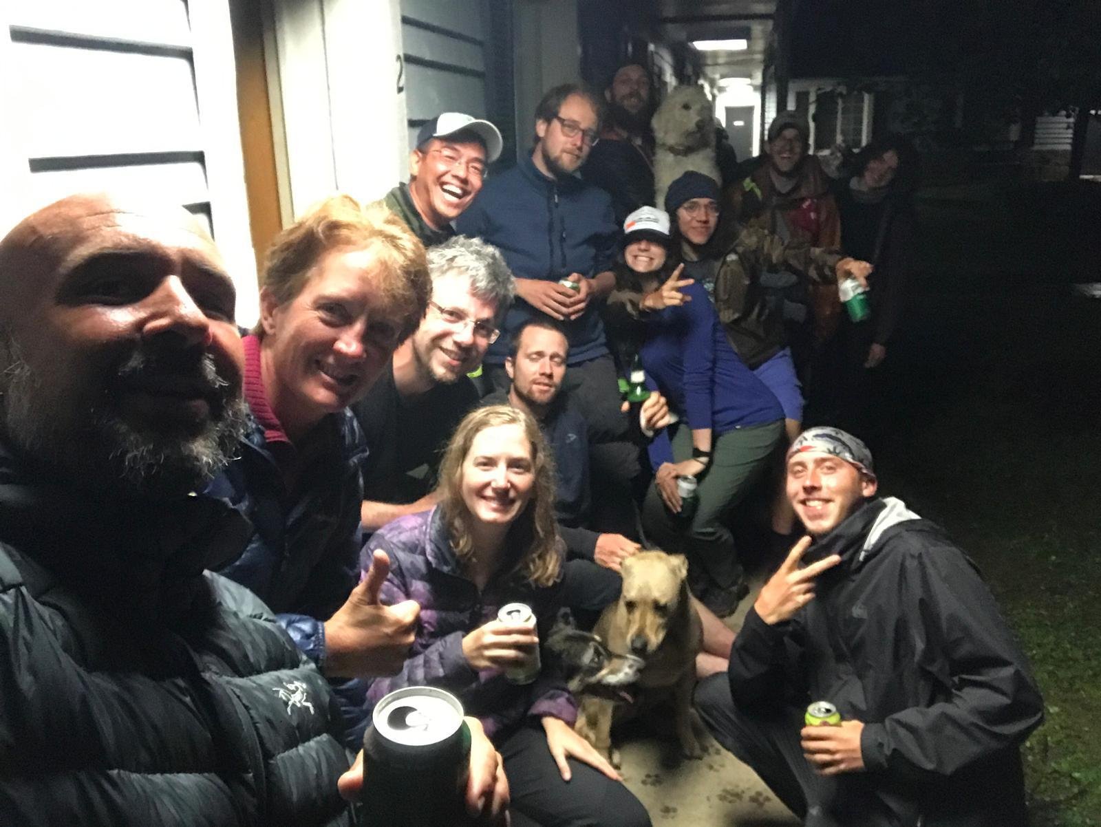 Und was macht so eine lustige und trockene Gruppe Hiker so früh am Abend nach dem Essen? Richtig: feiern das wir den Regen (und die Smokies) überlebt haben, in der Stadt sind und leben – und ab zum Liqour Store und ein paar Bier holen und gemeinsam feiern. Hier kamen dann noch ein paar andere dazu. Unter anderem Sherpa (mit Blue) und Shock Top.