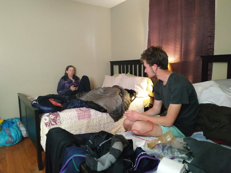 Durch das schlechte Wetter waren nahezu alle Zimmer in der Stadt ausgebucht. Zum Glück konnte Thomas von unterwegs aber noch ein Zimmer für vier in der Spring Creek Tavern organisieren. Da sind wir dann auch zum trocknen und Duschen als nächstes hin. Mit uns hat noch Jerry mit im Zimmer übernachtet.