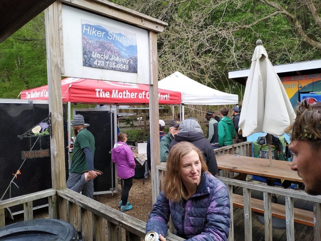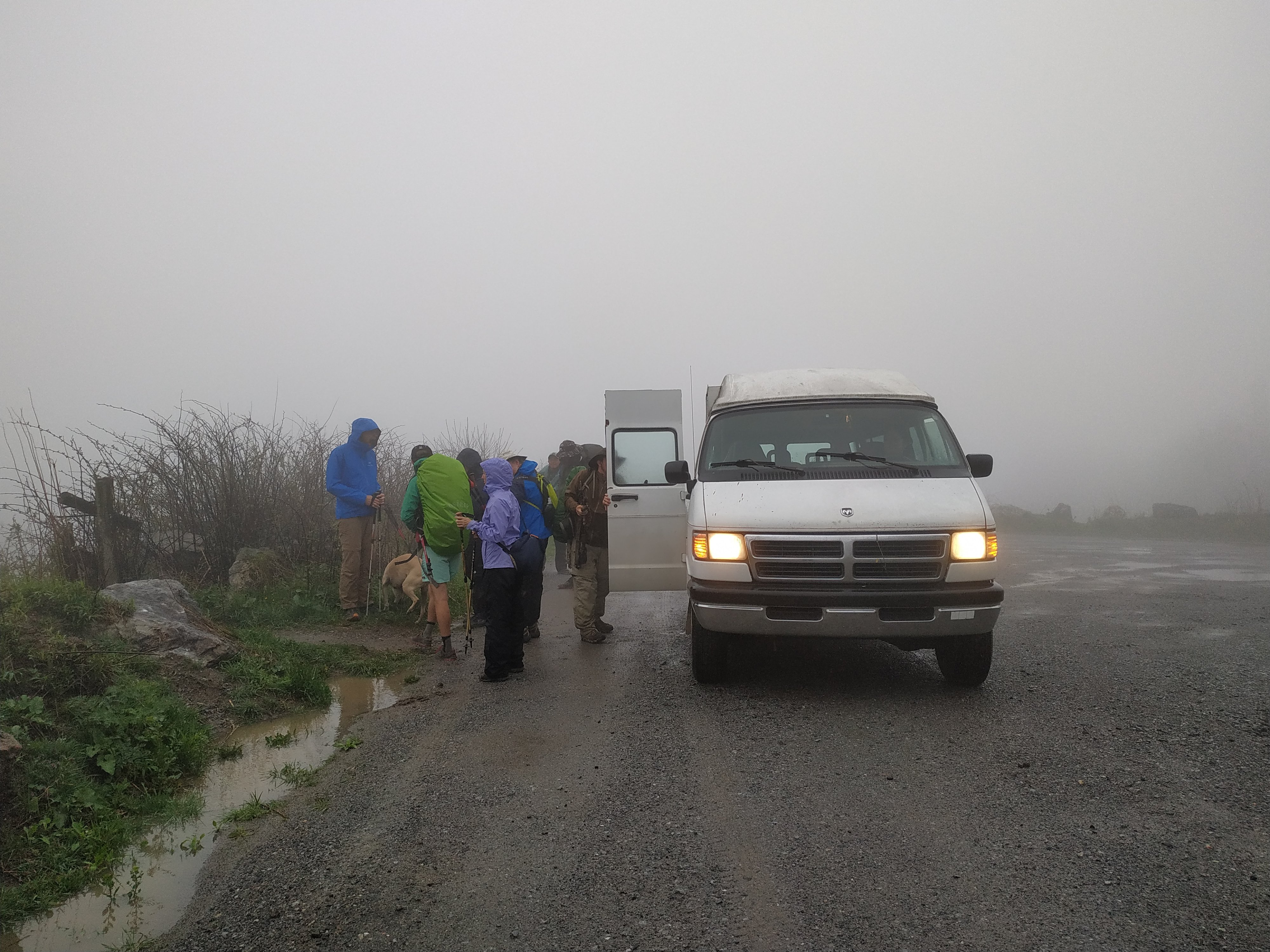 Die ersten Meter waren zwar nicht besonders trocken, dafür aber lustig. Wir wussten ja, das wir Two Fingers, Shoelaze und Flying Dutchmen treffen würden. In bester Day-Hiker Manier haben wir Ihnen dann kalte Getränke und Obst gegen ein paar Geschichten und Antworten angeboten. Tragt Ihr das Essen für den ganzen Trail im Rucksack? Habt Ihr schon Bären oder Schlangen gesehen? Wie weit? Den ganzen Weg? Und das zu Fuß?! Wir hatten auf jeden Fall viel Spaß.