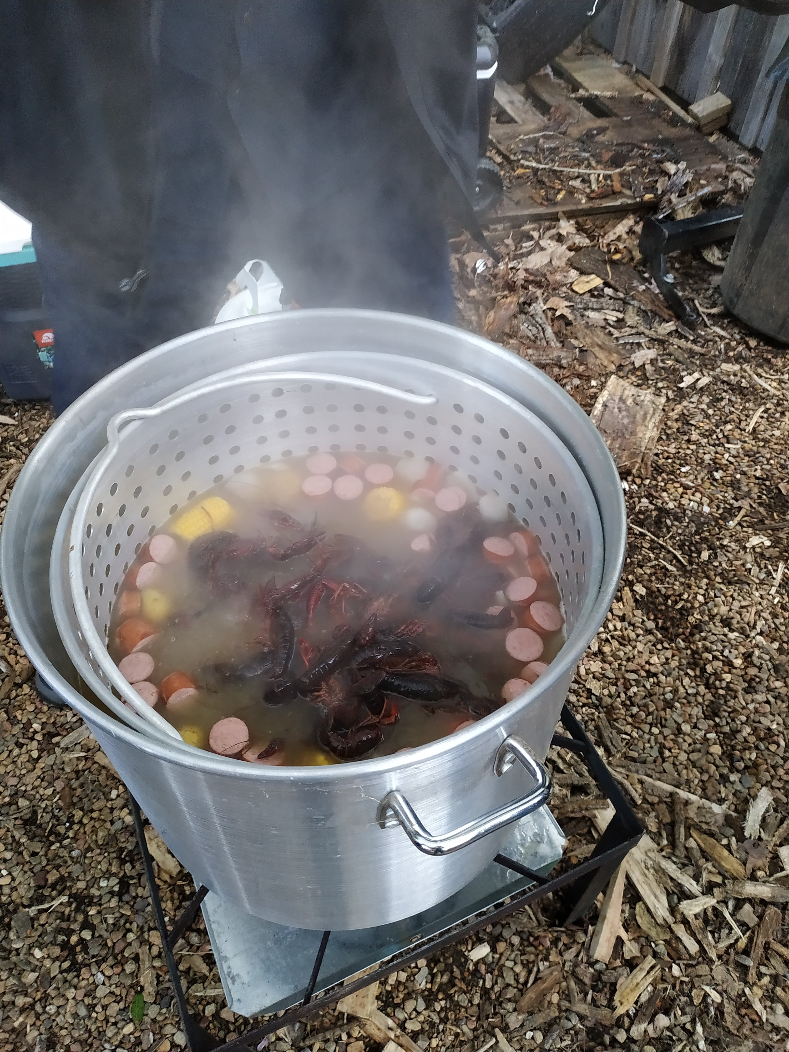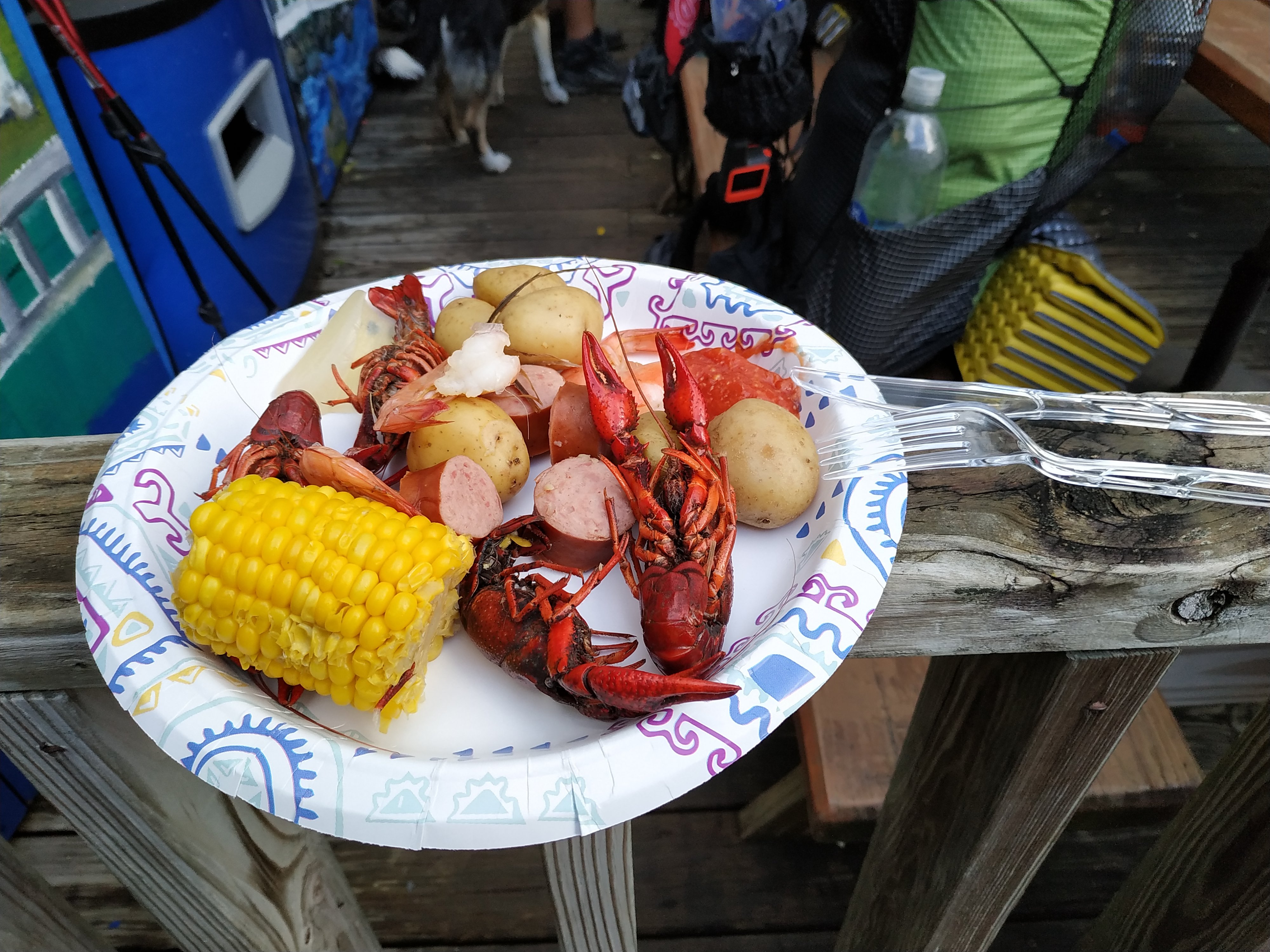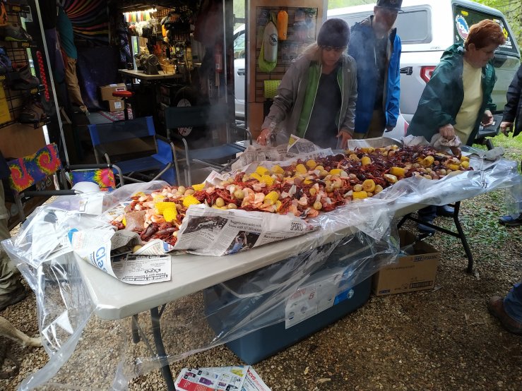 Freitag und Samstag gibt es für die Gäste des Hostels nämlich kostenloses Abendessen. Und heute gab es einen Little Country Boil. Ein sehr leckeres Eintopf Gericht. Nach dem Kochen wird alles auf einem Tisch (und auf Zeitungen) ausgekippt und später auf Teller verteilt. Gegessen wird dann mit den Fingern. Dazu gab es freie Getränke und gute Laune für alle. Genau mein Essen!