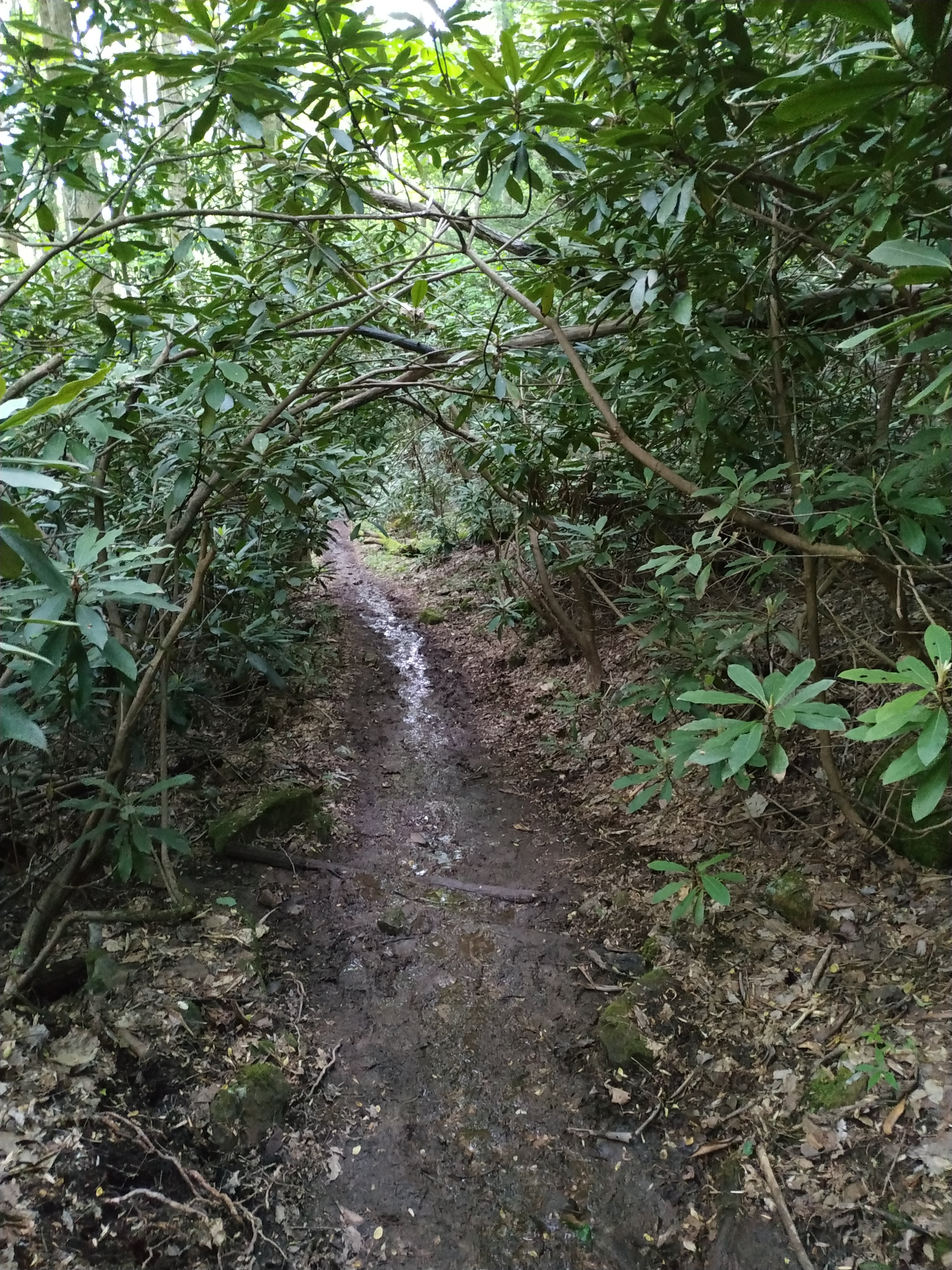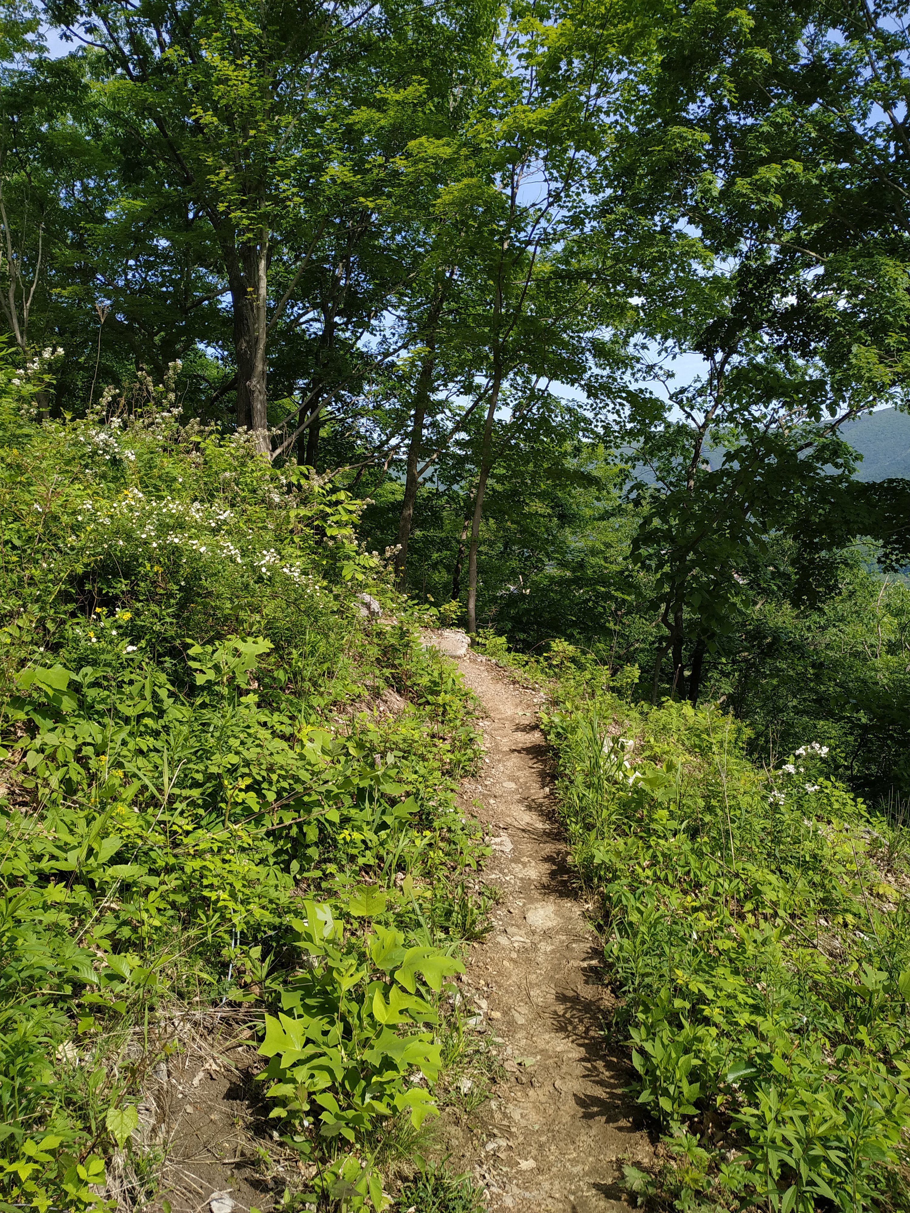 Die nächsten acht Meilen führte der Trail recht flach den Hügelkamm entlang. Dabei gab es zwar nur am Anfang Aussichten, aber der Weg durch den Wald war einfach schön. Allerdings haben hier meine Füße, und viel schlimmer, mein rechtes Schienenbein angefangen sich zu melden. Und beides wurde den Tag über nicht besser.
