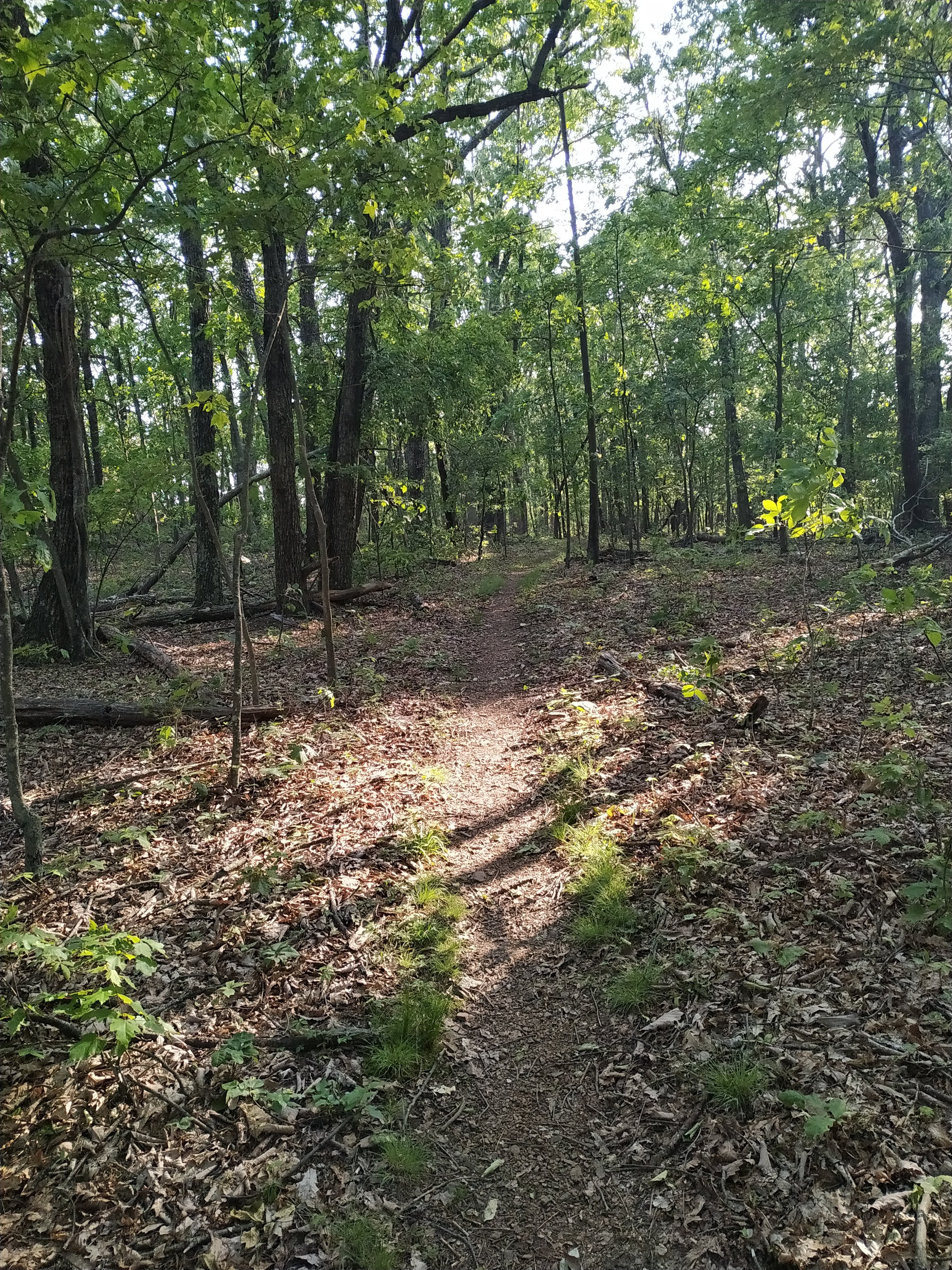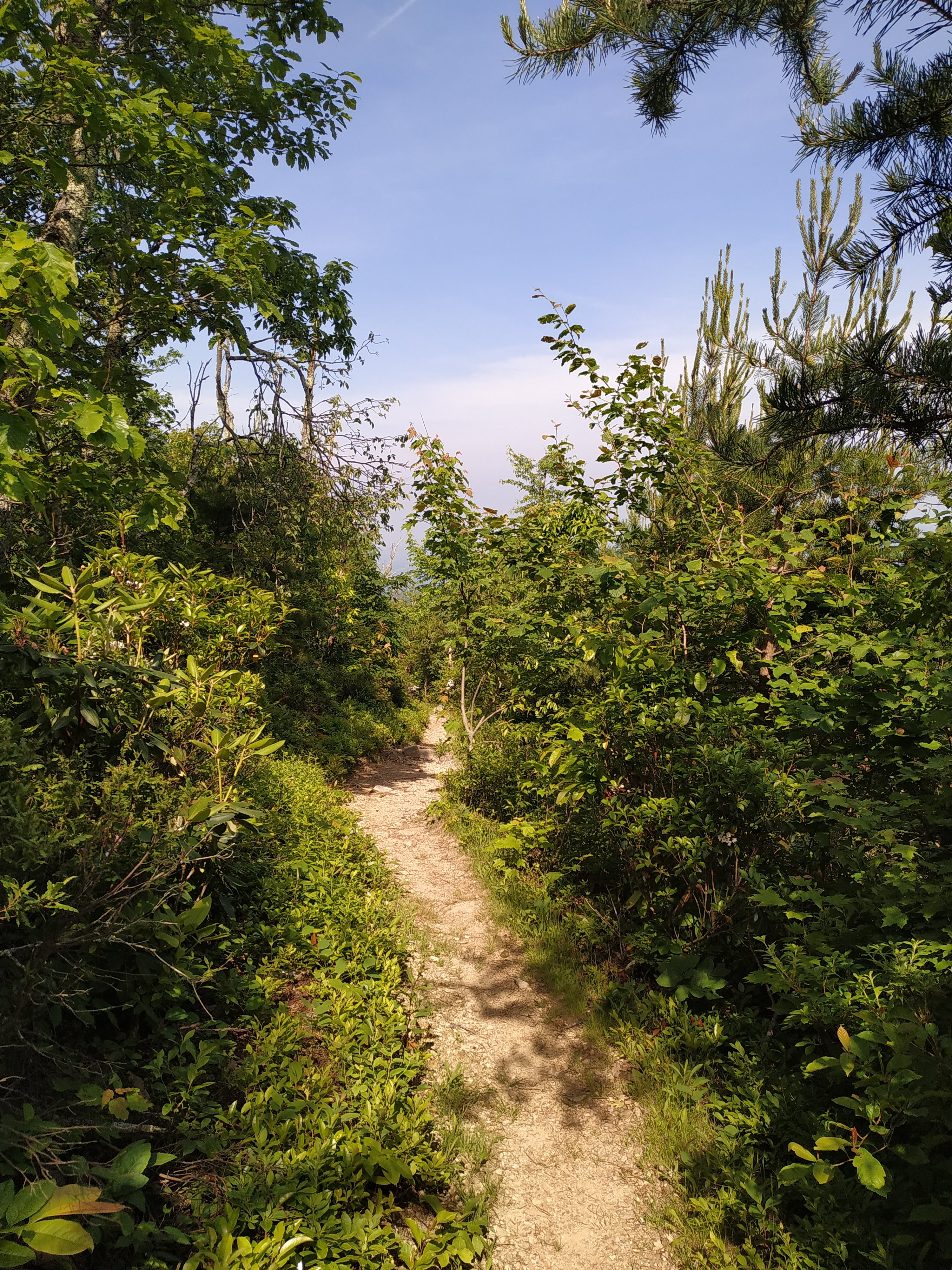 Und dann kam der erste Aufstieg des Tages. Laut Wettervorhersage sollte es zwischen 11h – 13h evtl. regnen. Das hat es zwar nicht, dafür war die Luft ziemlich schwül. 1,6 Meilen, 1.100 Höhenfuß und eine dreiviertel Stunde später war ich oben. Und komplett durchgeschwitzt. Wer braucht da noch Regen? 😉