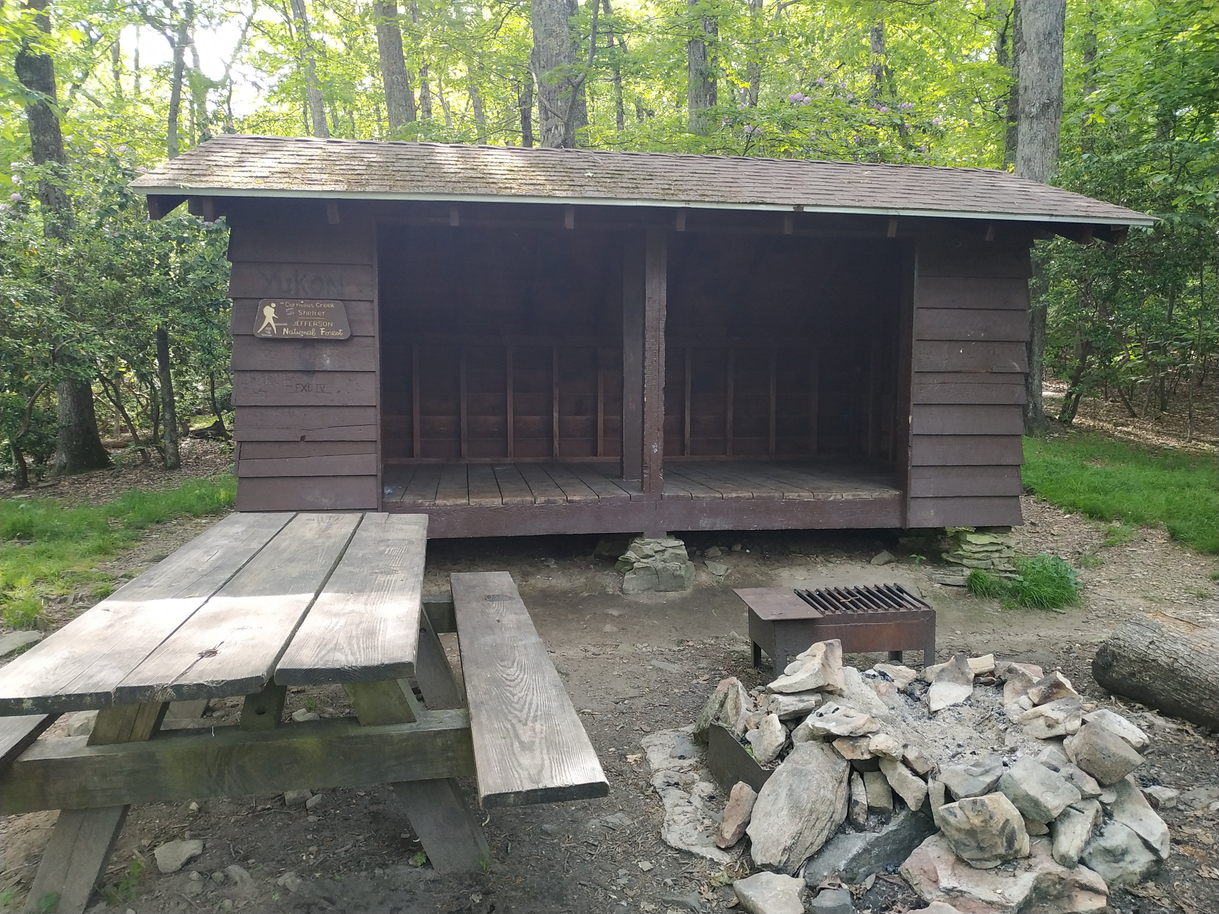 Die letzten 0,6 Meilen bergab zum Shelter liefen ganz gut. Allerdings habe ich meine Füße schon ordentlich gespürt. Um kurz nach 17h war ich da. Und eigentlich hatte ich vor noch weiter zu gehen. Da meine Füße aber doch weh getan haben und ich eh noch meine nächsten Tage bis nach Waynesboro planen musste, habe ich halt früh Feierabend gemacht. Außerdem scheint es bisher, als wäre ich der einzige hier im Shelter. Das wäre doch Mal ein besonderes Erlebnis!