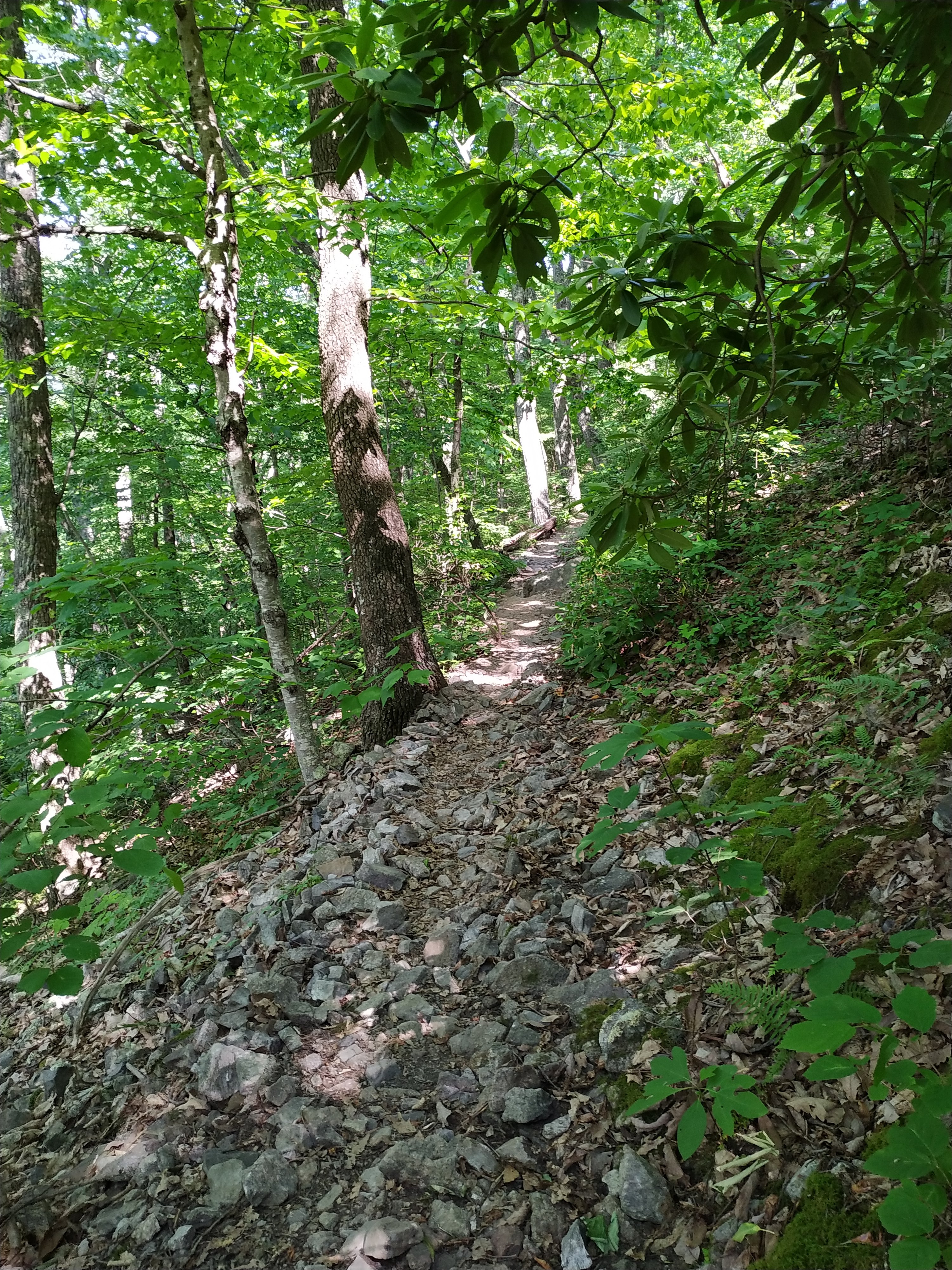 Von dort aus folgte ein langer Abstieg zum James River. Von 4.225 Fuß runter auf 695 Fuß. Und die letzten Meter so richtig schön steinig. Meine Füße und Knie sagen herzlichen Dank. 😉 Dazu war es weiterhin ziemlich schwül und warm.