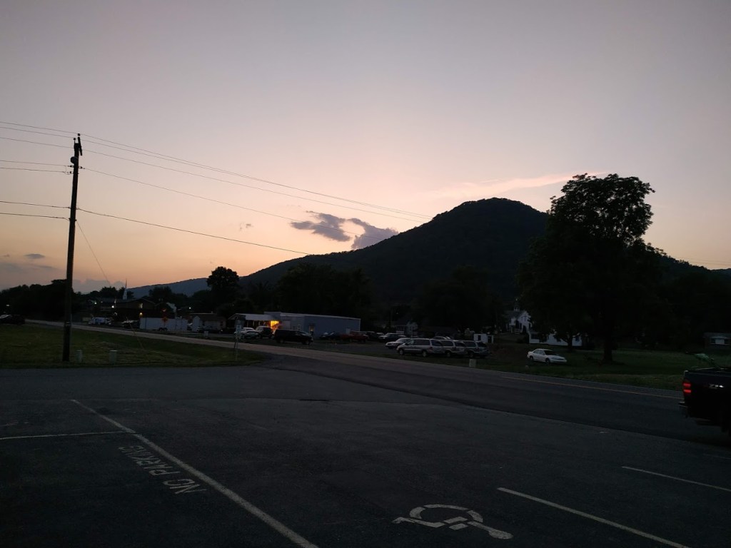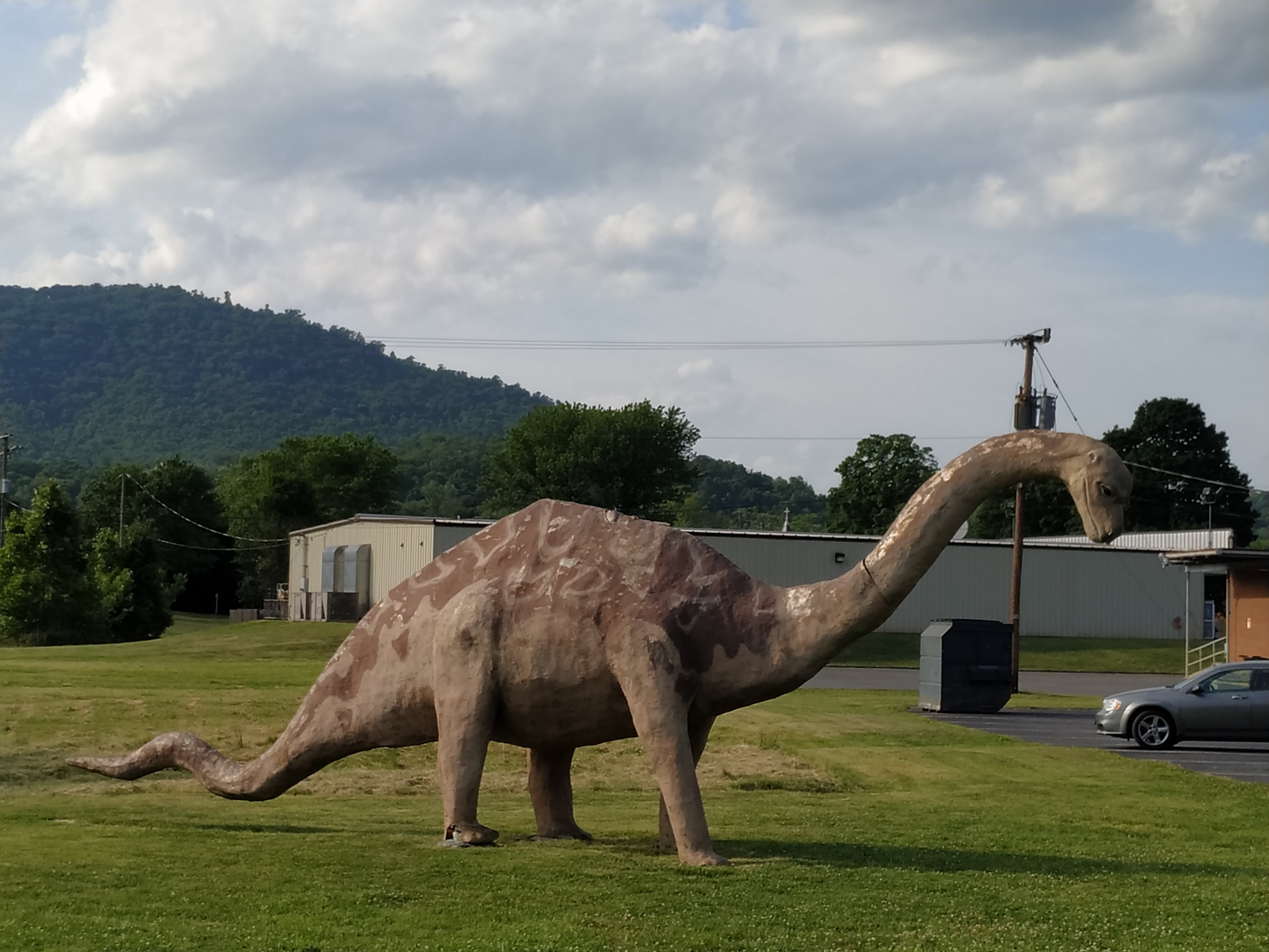Ein Restaurant, in dem ich mit Two Fingers zum Abendessen verabredet war, ein Dollar General und: ein freier Shelter mit Dusche! Das ist eigentlich auch schon das komplette Glasgow. Ach ja, und ein Dinosaurier. 😉 Wäre der Dinosaurier nicht, hier wollte ich nicht tot über den Zaun hängen.