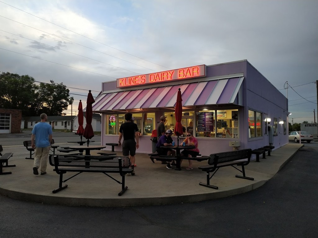 Der Spaziergang zurück ins Hostel tat ziemlich gut, da ich schon fast überfressen war. Allerdings ist kurz vor dem Hostel Kline’s Dairy Bar. Und hier gibt es sehr leckeres Eis. Und da der Abend noch warm und schön war, haben wir uns hier alle noch einen Nachtisch gegönnt. Darf man sich ja nach so einem langen Verdauungsspaziergang und überschaubaren Abendessen mal gönnen. 😁