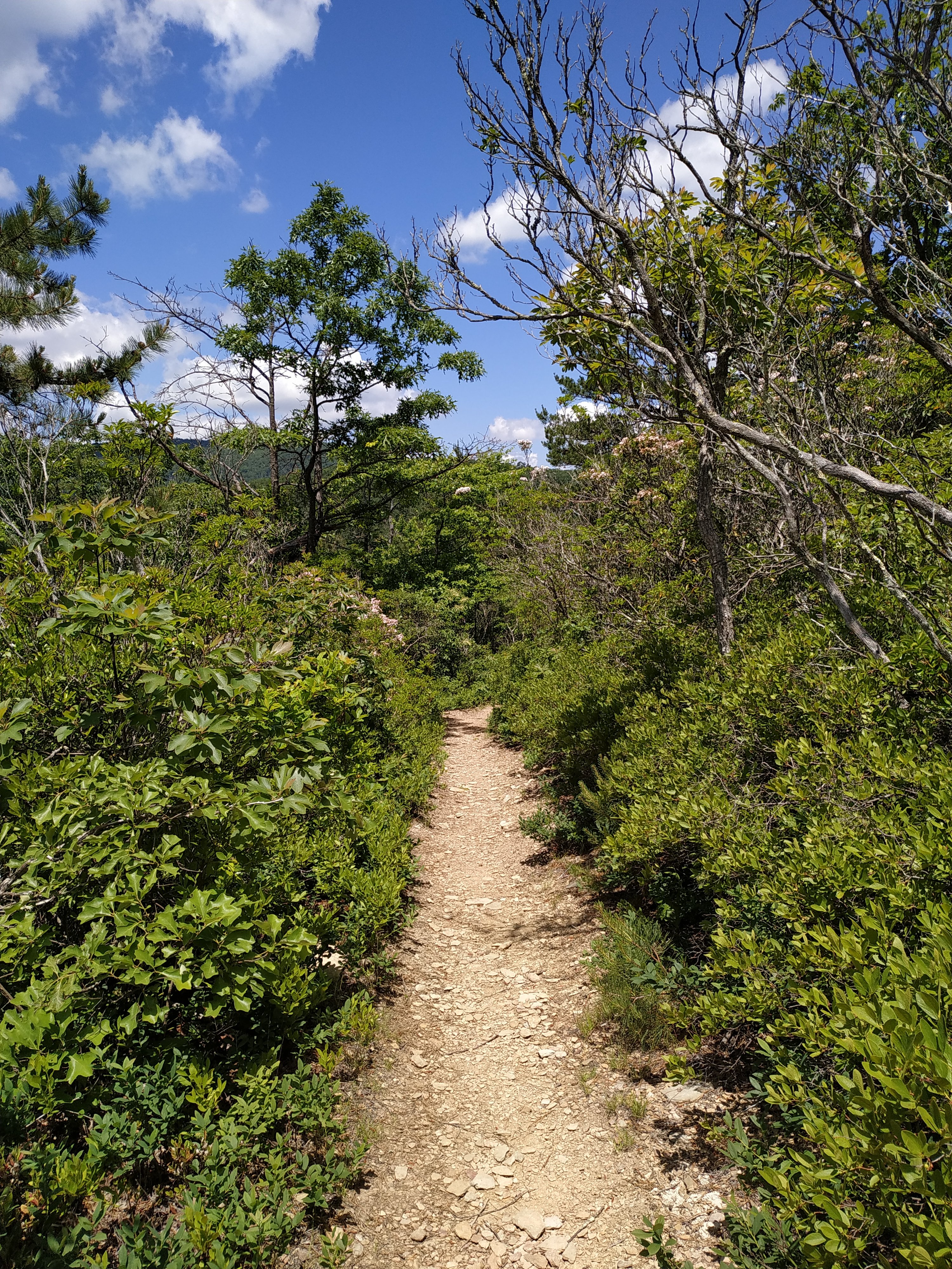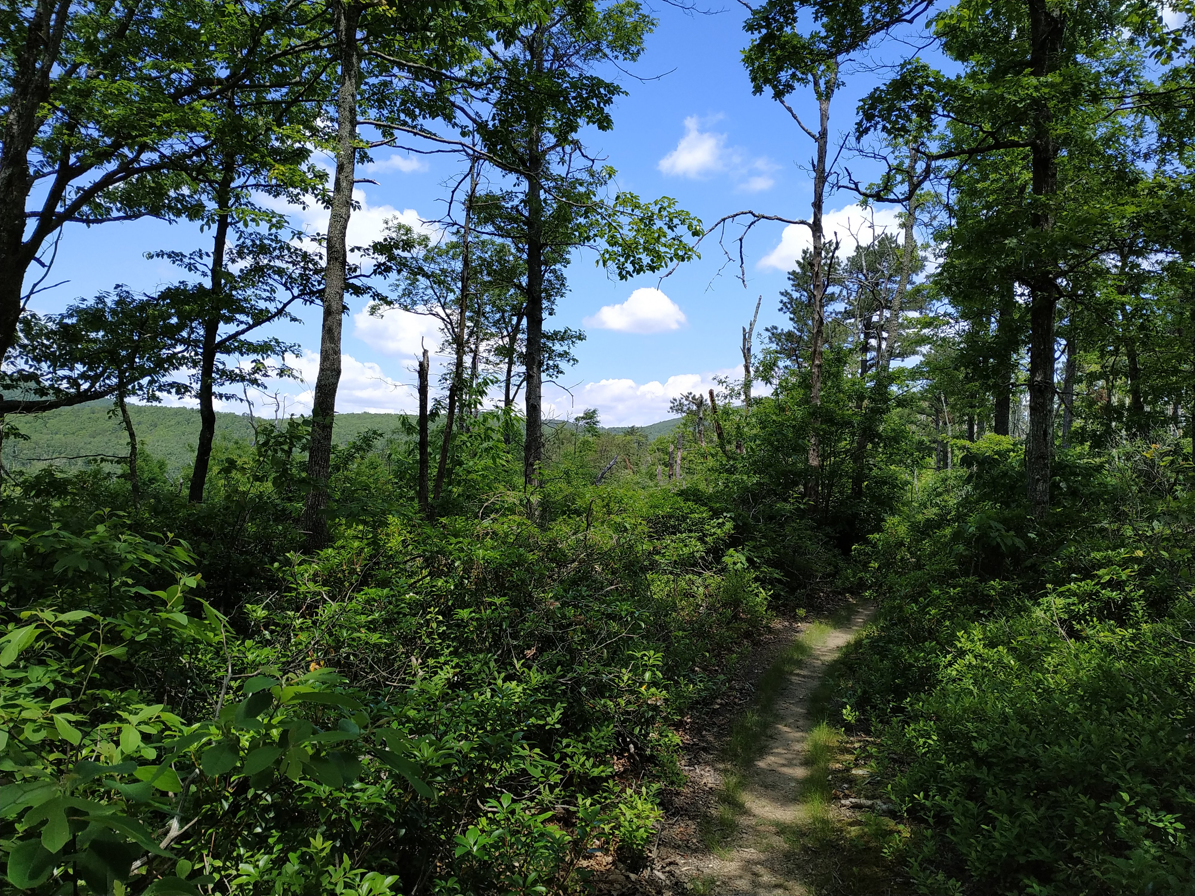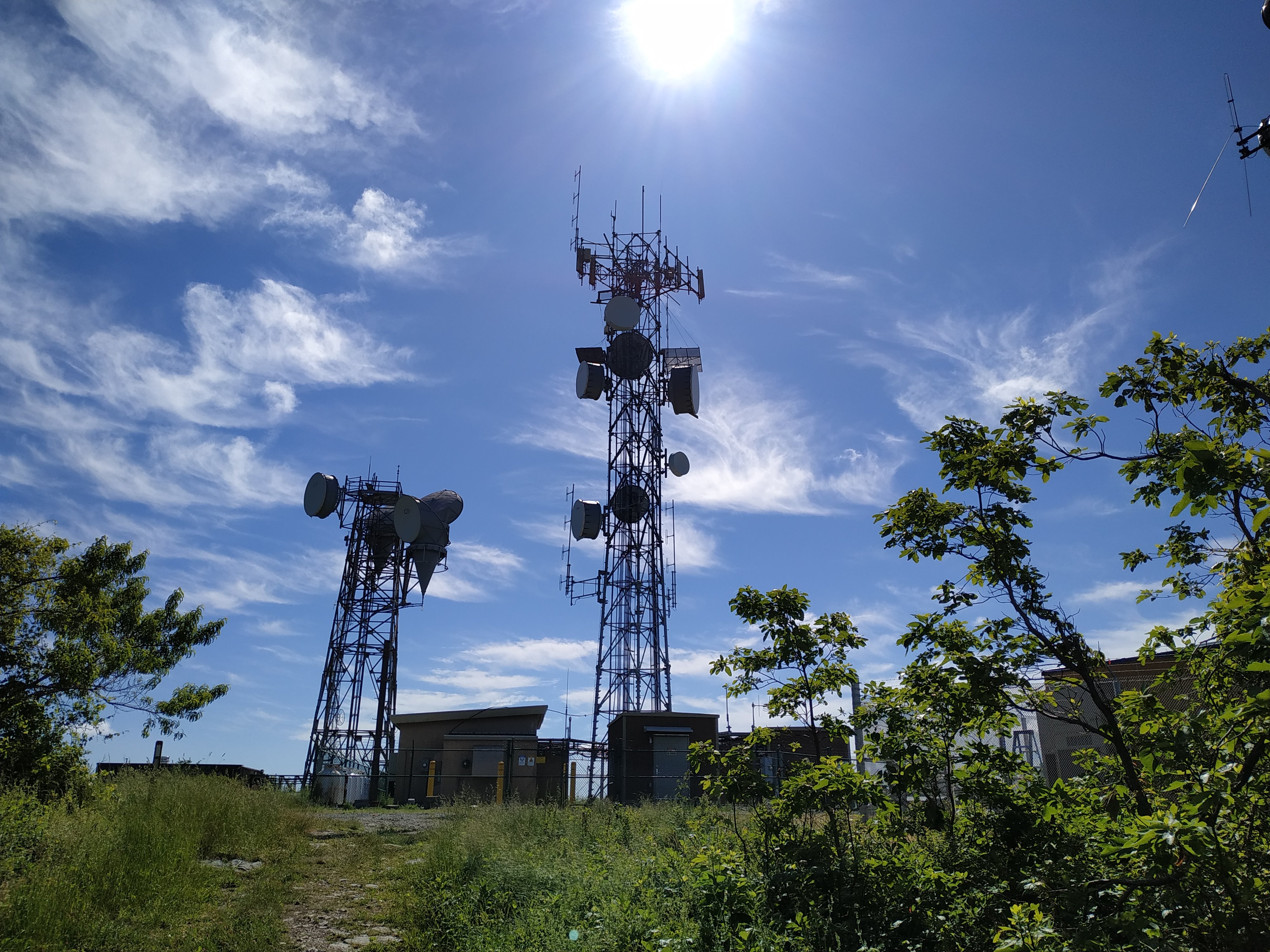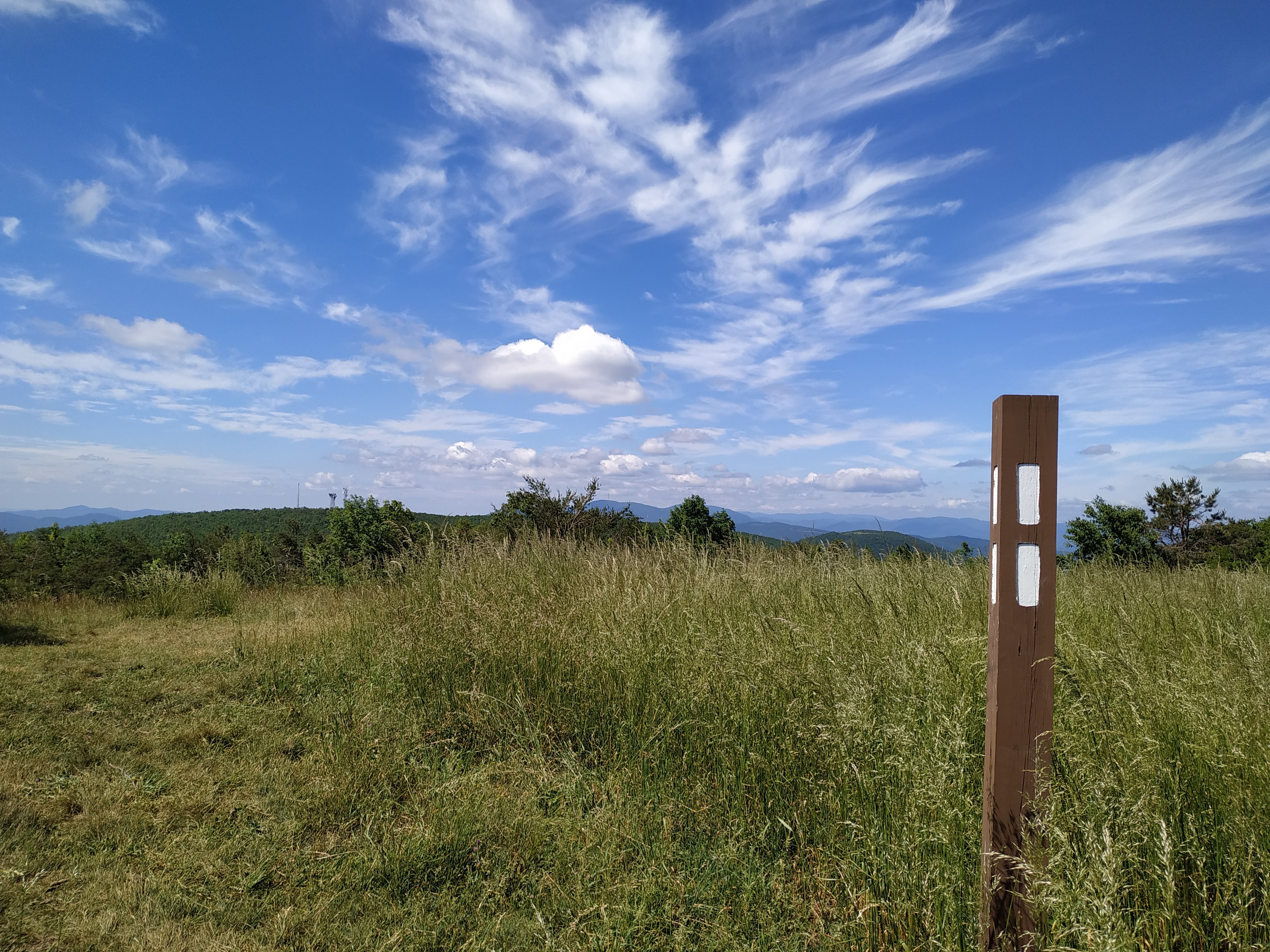 Ganz flach ist zwar anders, aber tatsächlich waren die Steigungen heute weniger steil und durchaus angenehm zu gehen. Zuerst ging es hoch auf Bears Den Mountain. Auf dessen Gipfel ist ein Funkturm.