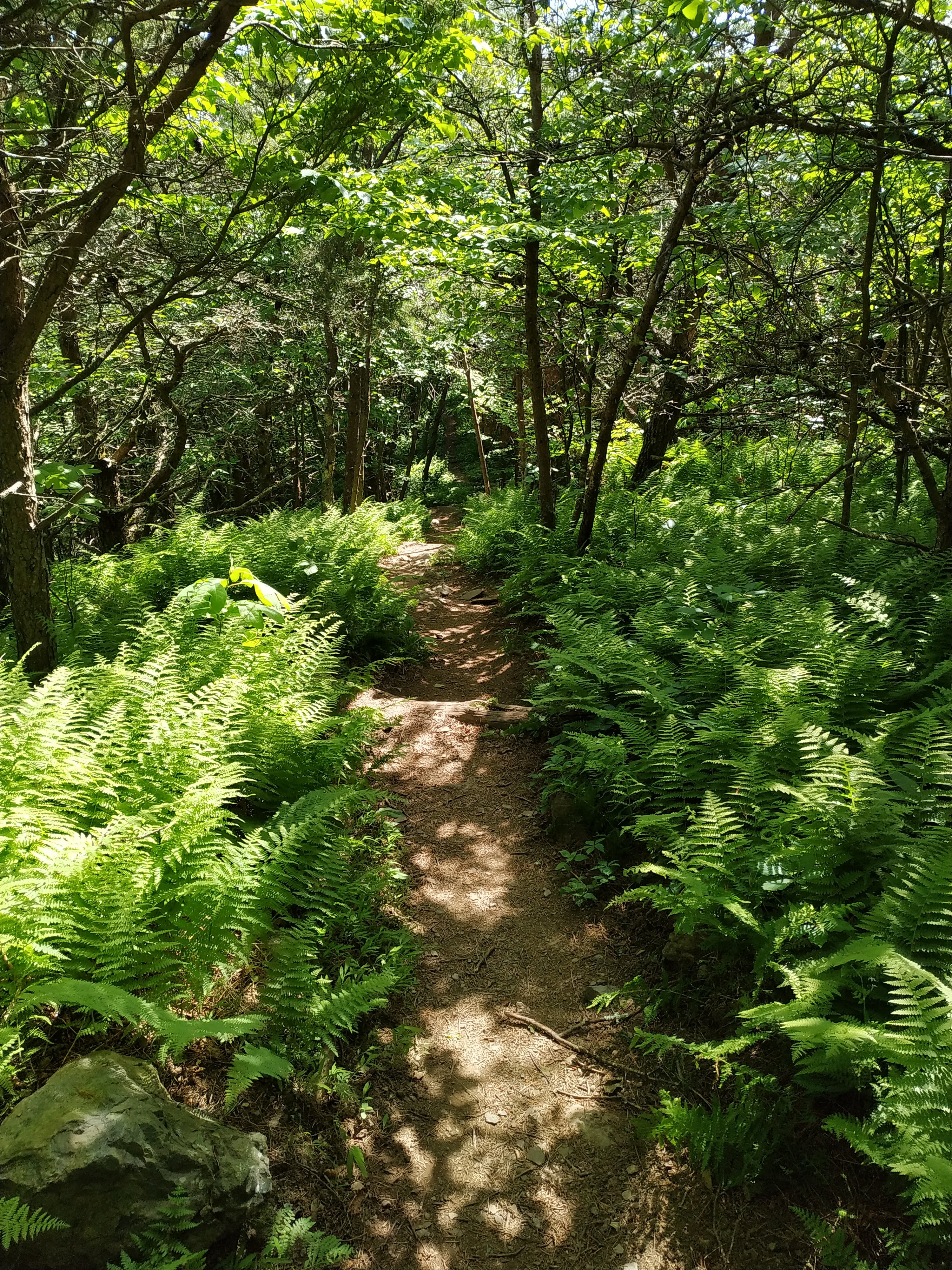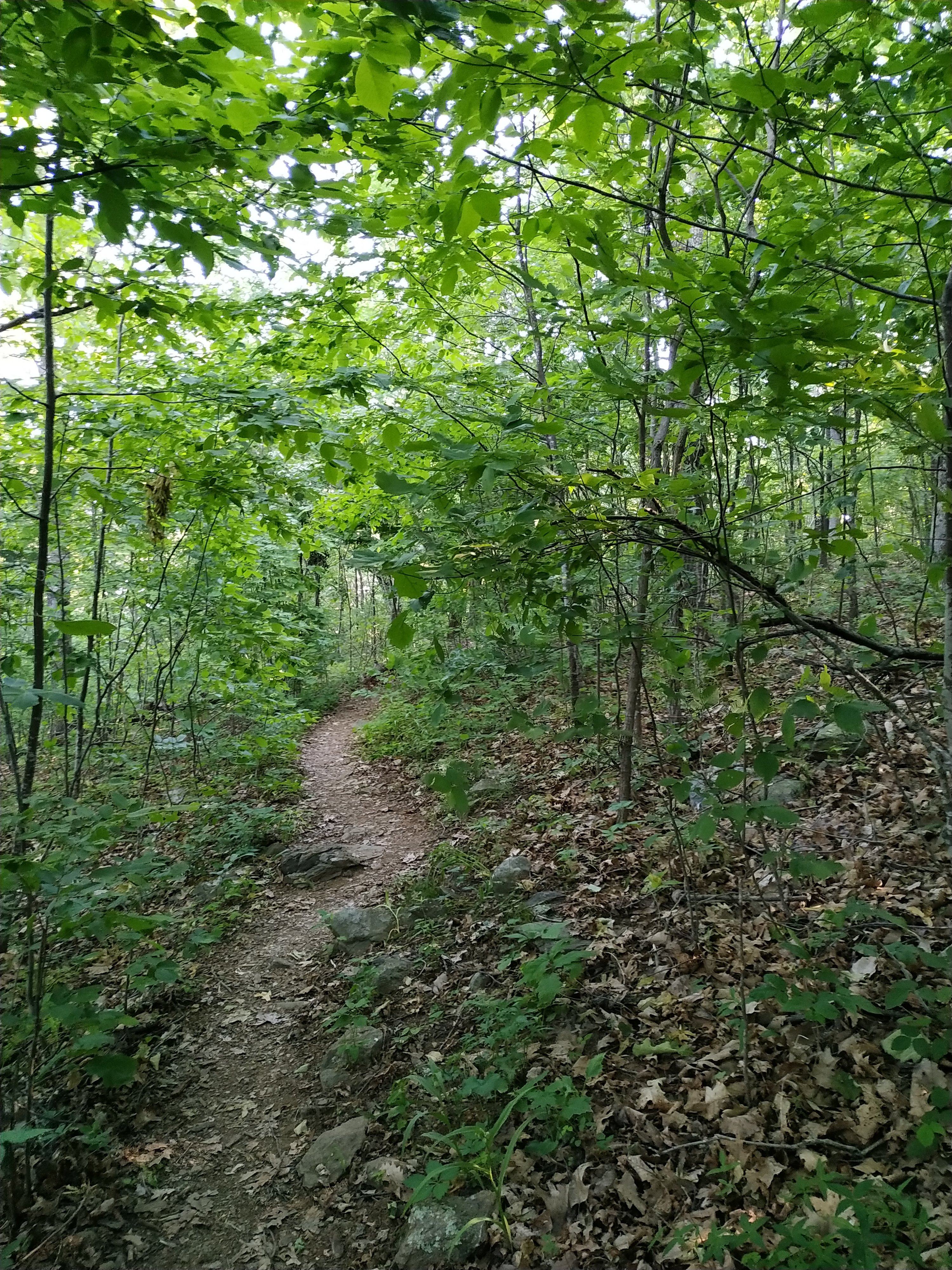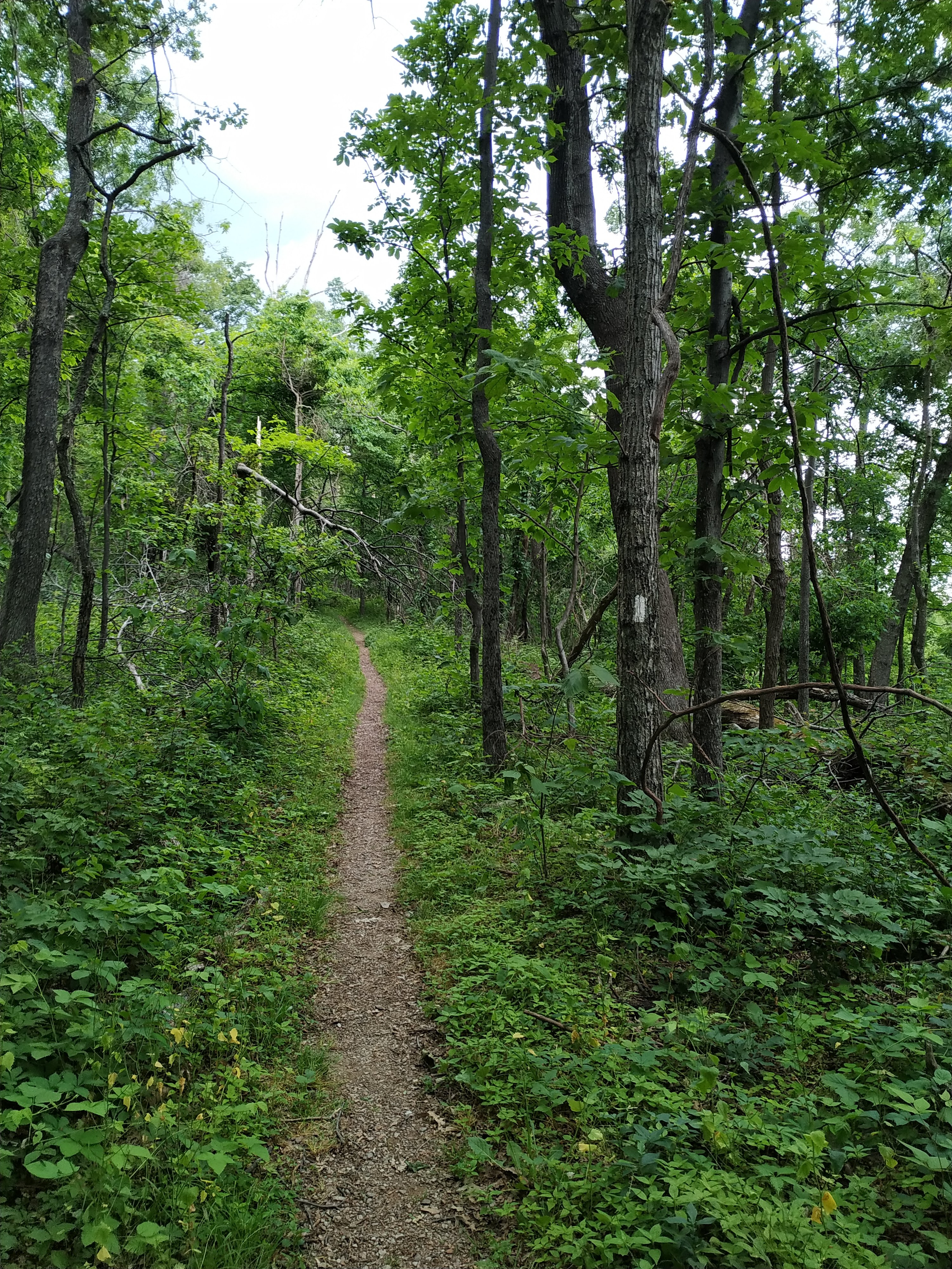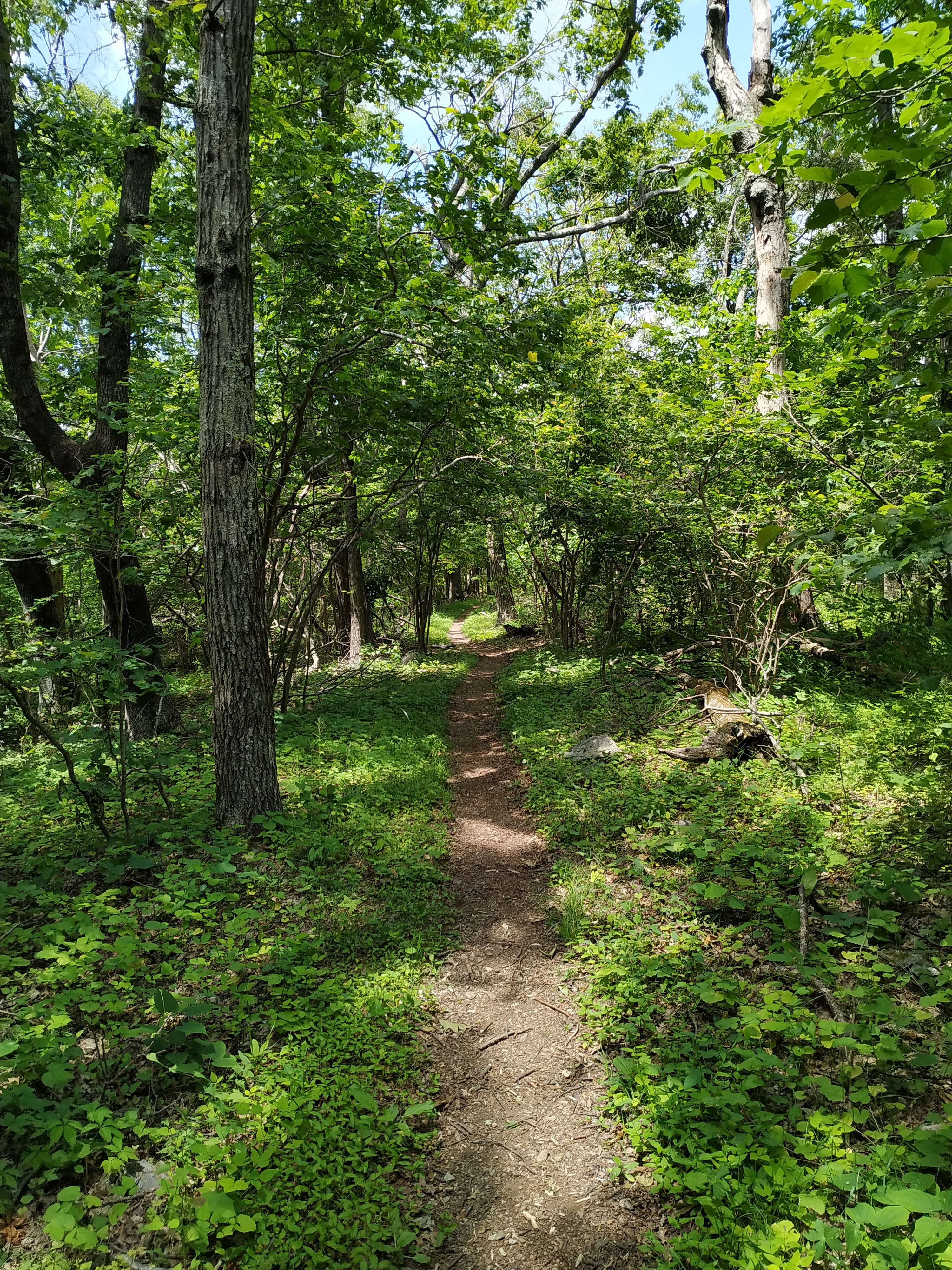 Ganz flach ist zwar anders, aber tatsächlich waren die Steigungen heute weniger steil und durchaus angenehm zu gehen. Zuerst ging es hoch auf Bears Den Mountain. Auf dessen Gipfel ist ein Funkturm.