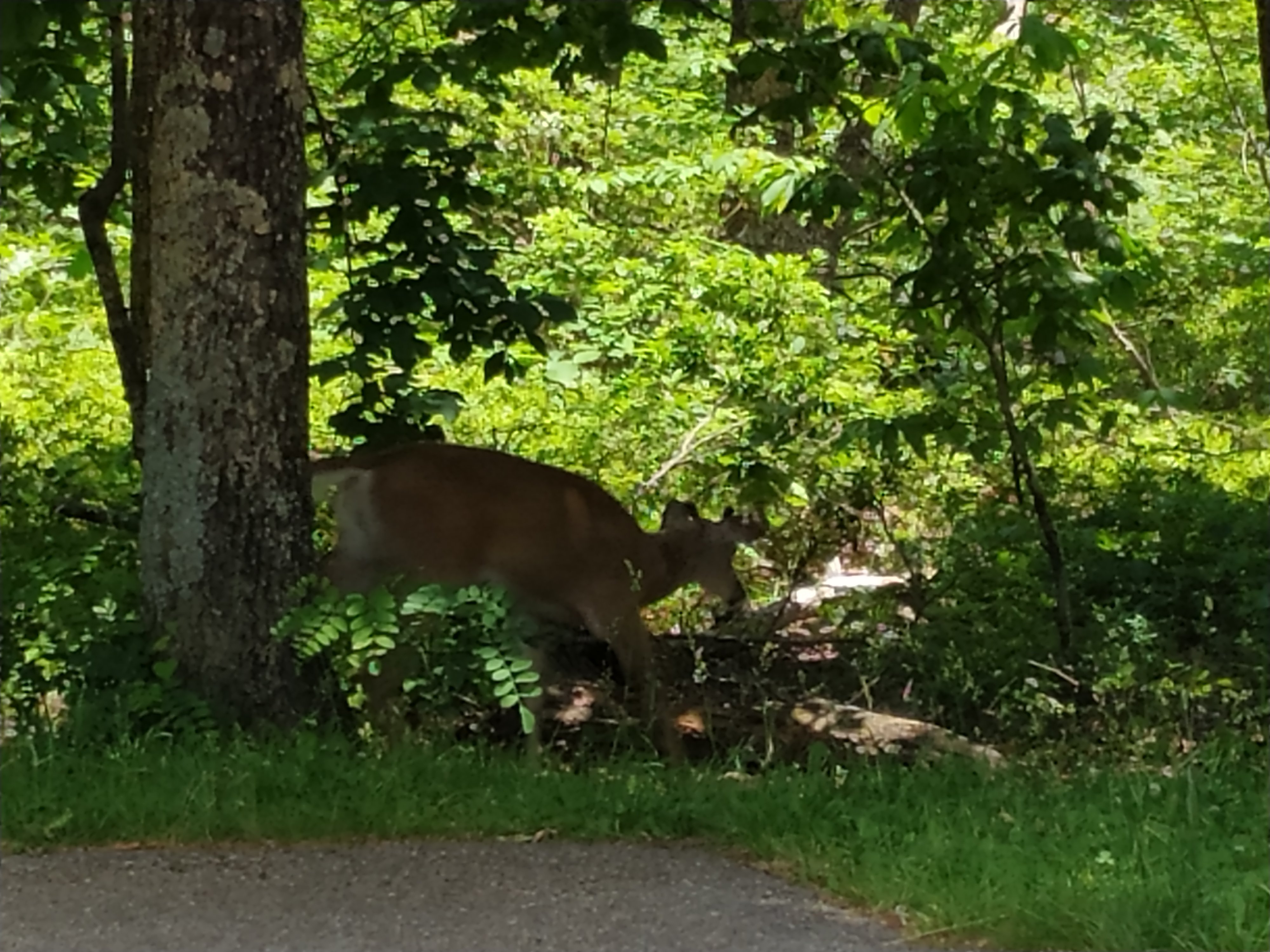 Nur wenig später lag ein Schild am Wegesrand: Trail Magic. Man soll einfach den Kofferraum eines Wagens öffnen und sich bedienen. Wären nicht schon zwei andere dort gewesen, dann hätte ich wohl verzichtet. Und wie wir so dastehen und unsere Sodas genießen, da schleicht sich doch von hinten jemand an uns an. Fast so, als wären wir gar nicht da.