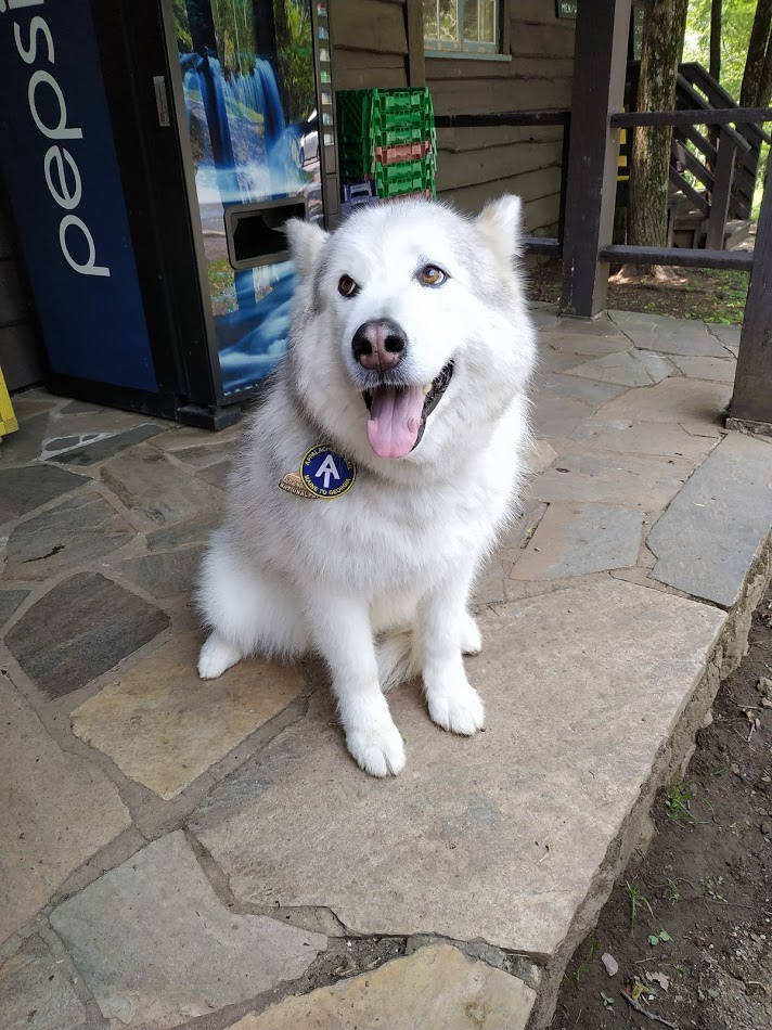 Vor dem Campstore hat jemand gewartet, während sein Herrchen einkaufen war. Ein super lieber Kerl – aber riesig! Jedes Mal wenn ich Hunde auf dem Trail sehe, dann freue ich mich riesig. Gleichzeitig vermisse ich aber in genau solchen Momenten immer meine Fellnase zu Hause besonders.