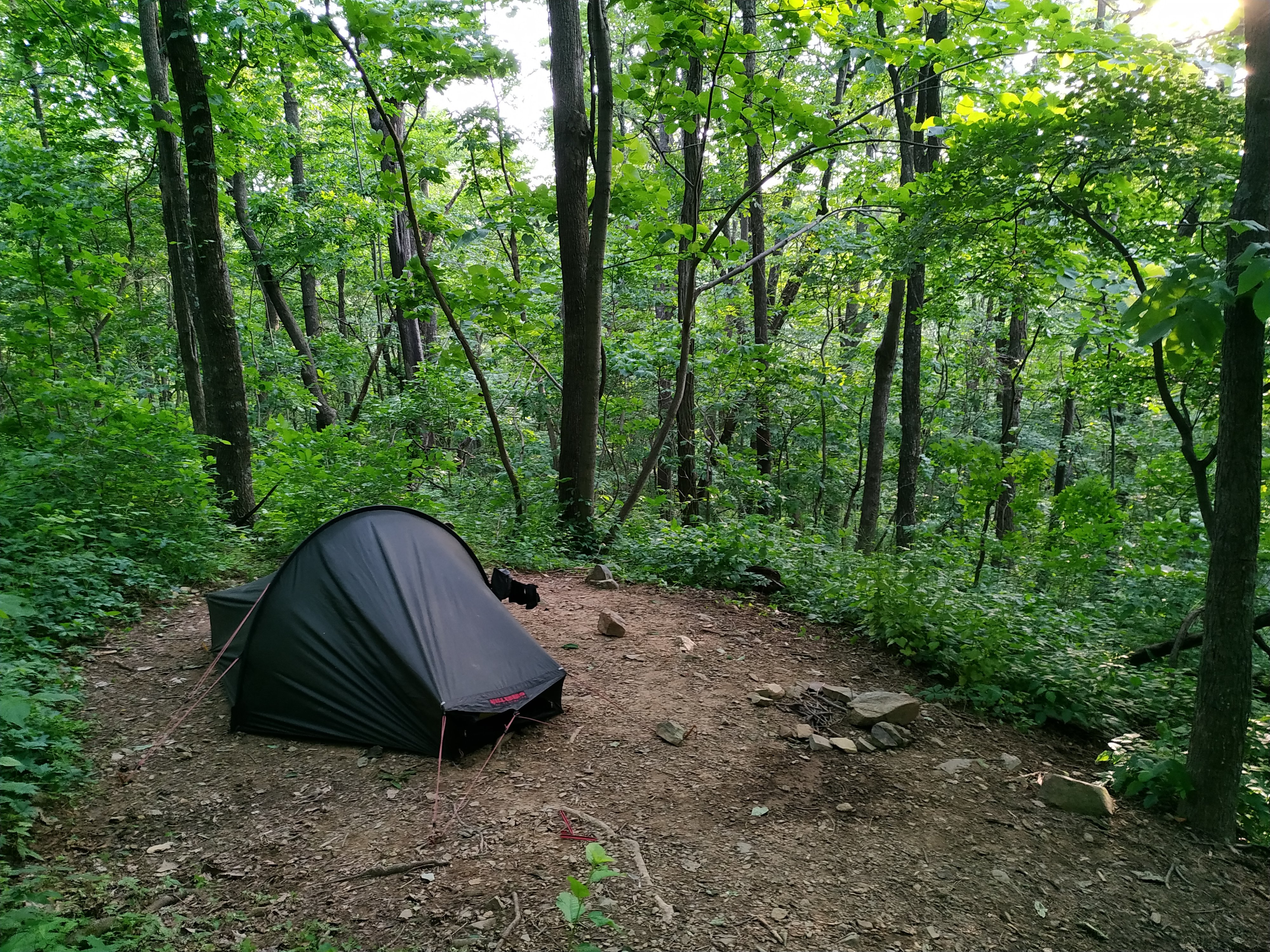Heute morgen bin ich gut erholt aufgestanden. Die Nacht auf dem weichen Waldboden kombiniert mit angenehm kühlen Temperaturen (nicht so kalt wie vorhergesagt) war wunderbar erholsam. Aufgestanden bin ich trotzdem erst um 6:15. Wieder auf dem Trail war ich um 7:40.