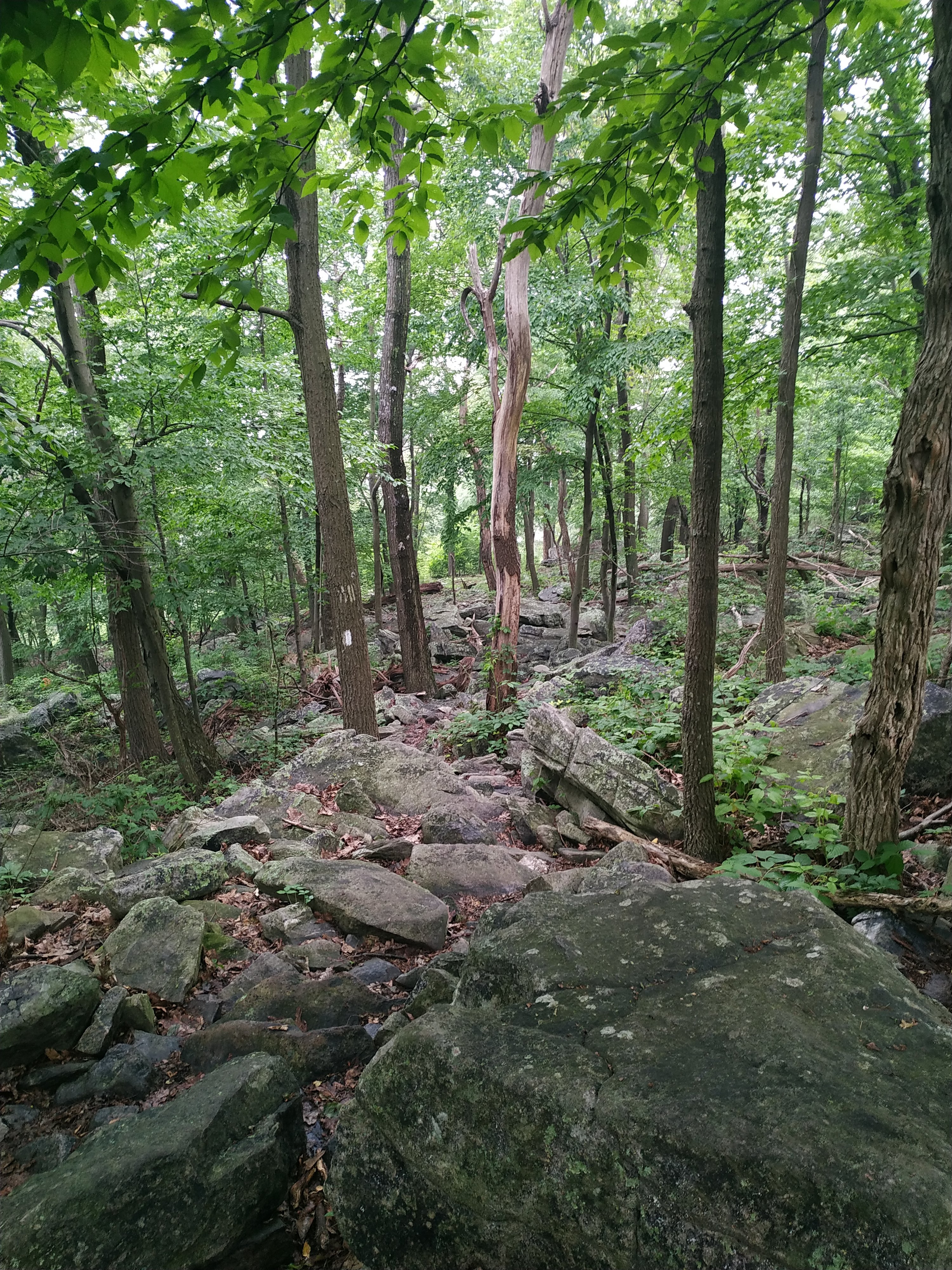 Und langsam aber sicher nährte ich mich Pennsylvania immer mehr. Pennsylvania ist verrufen als „Rocky Pennsylvania“. Und Maryland gab sich die größte Mühe, seinem Nachbarn da in nichts nachzustehen. Nasse und glitschige Steine, ein teilweise unsichtbarer Trail und schon 20 Meilen auf der Uhr. Da wurde ich nicht nur langsamer, sondern langsam auch müde.