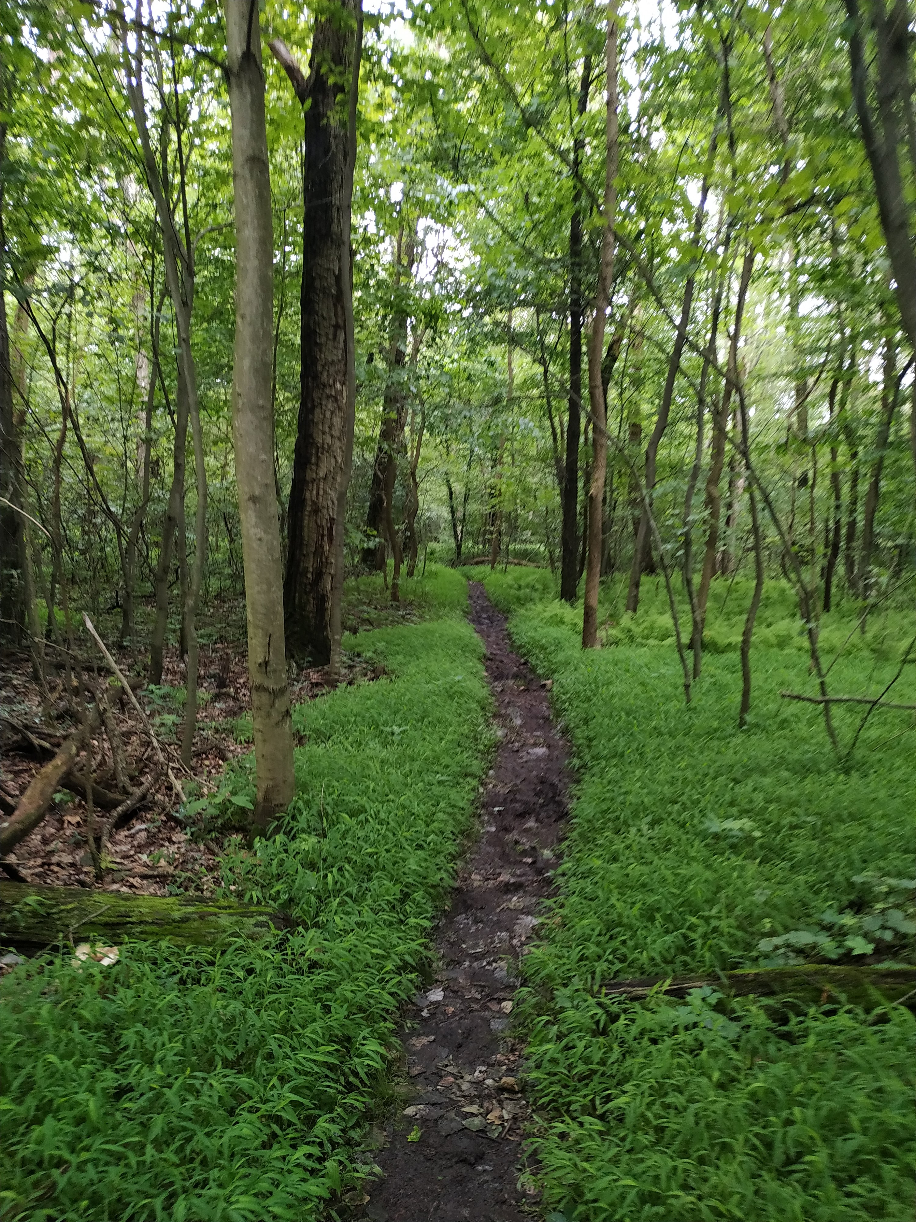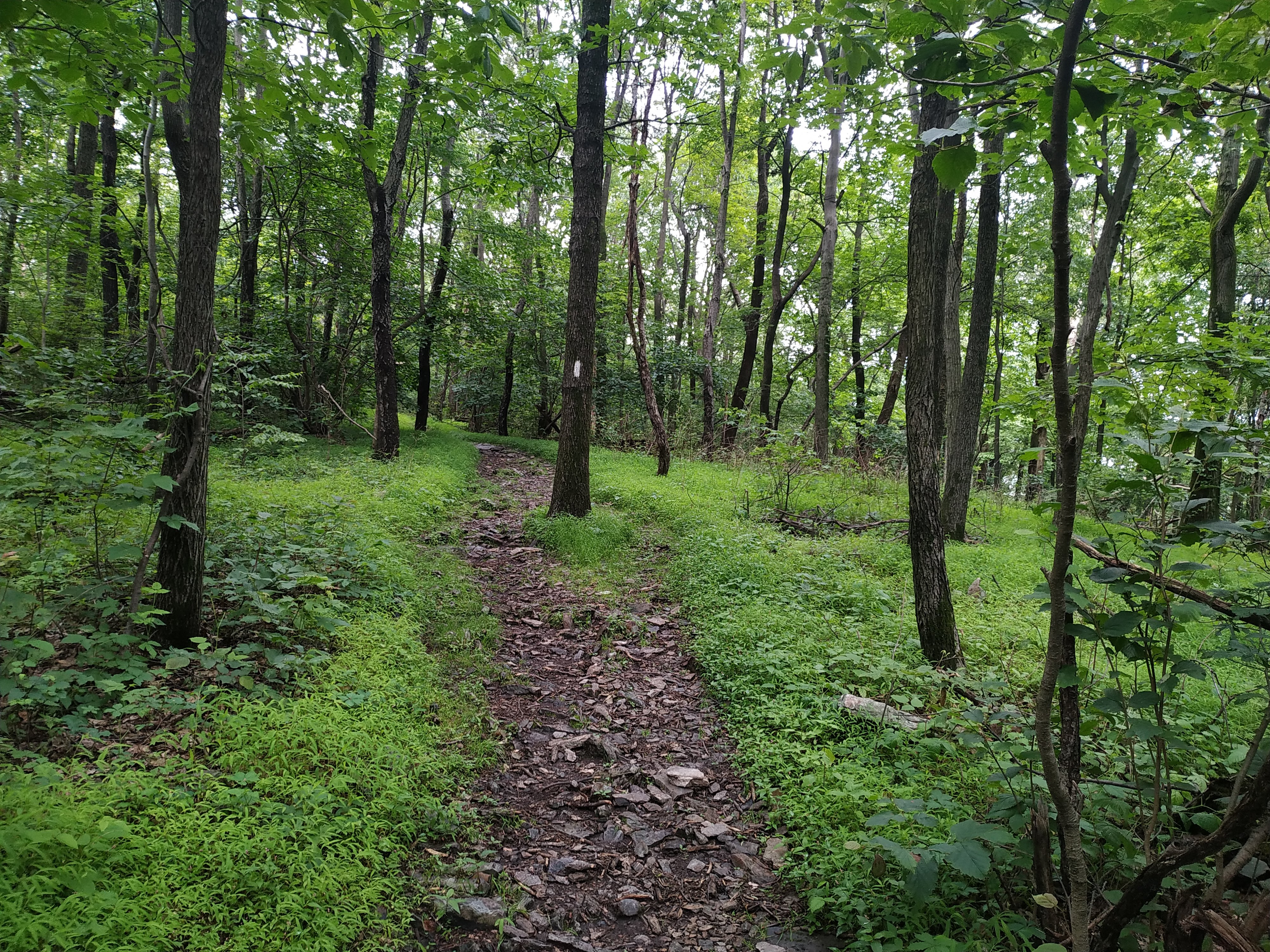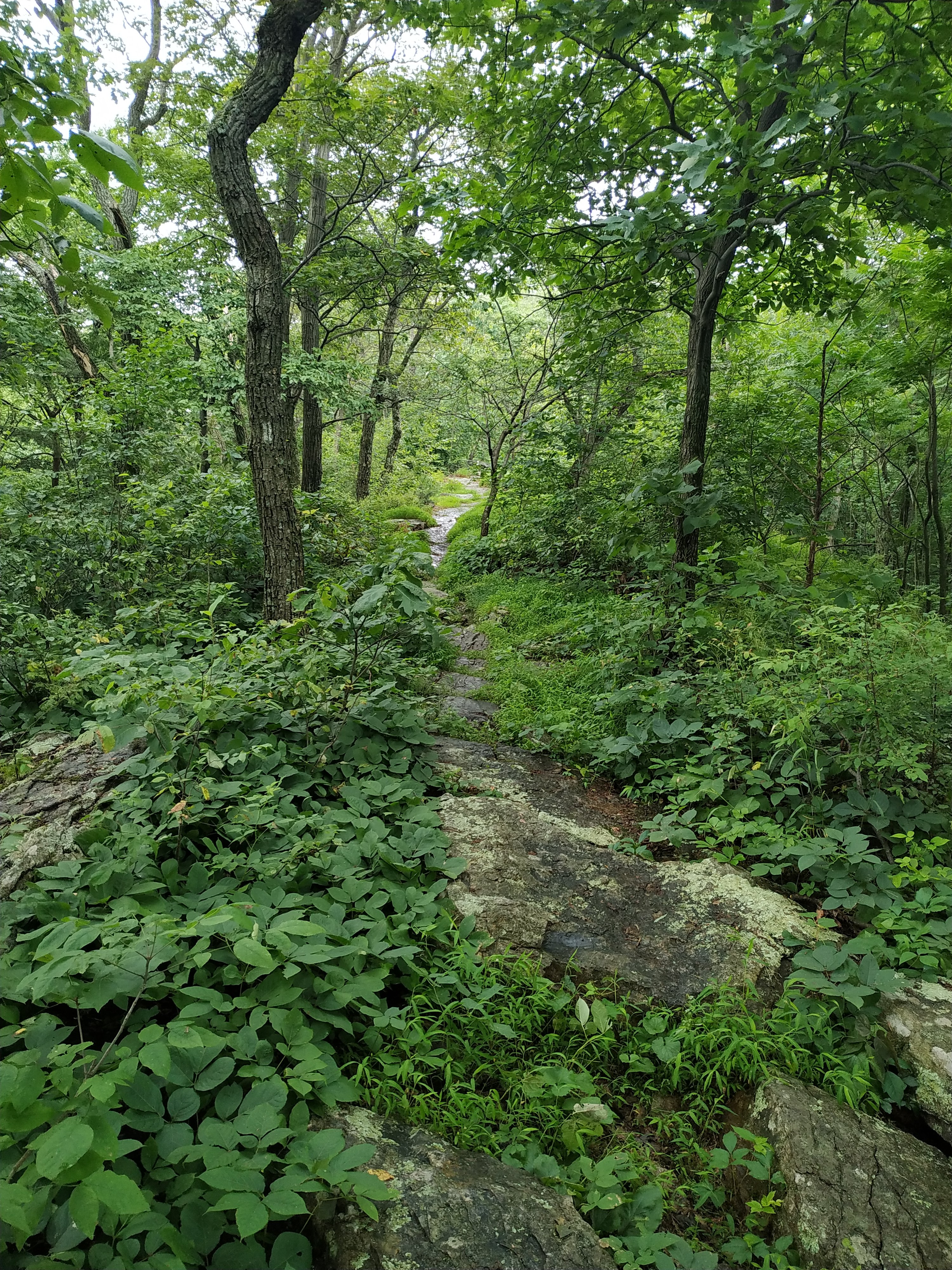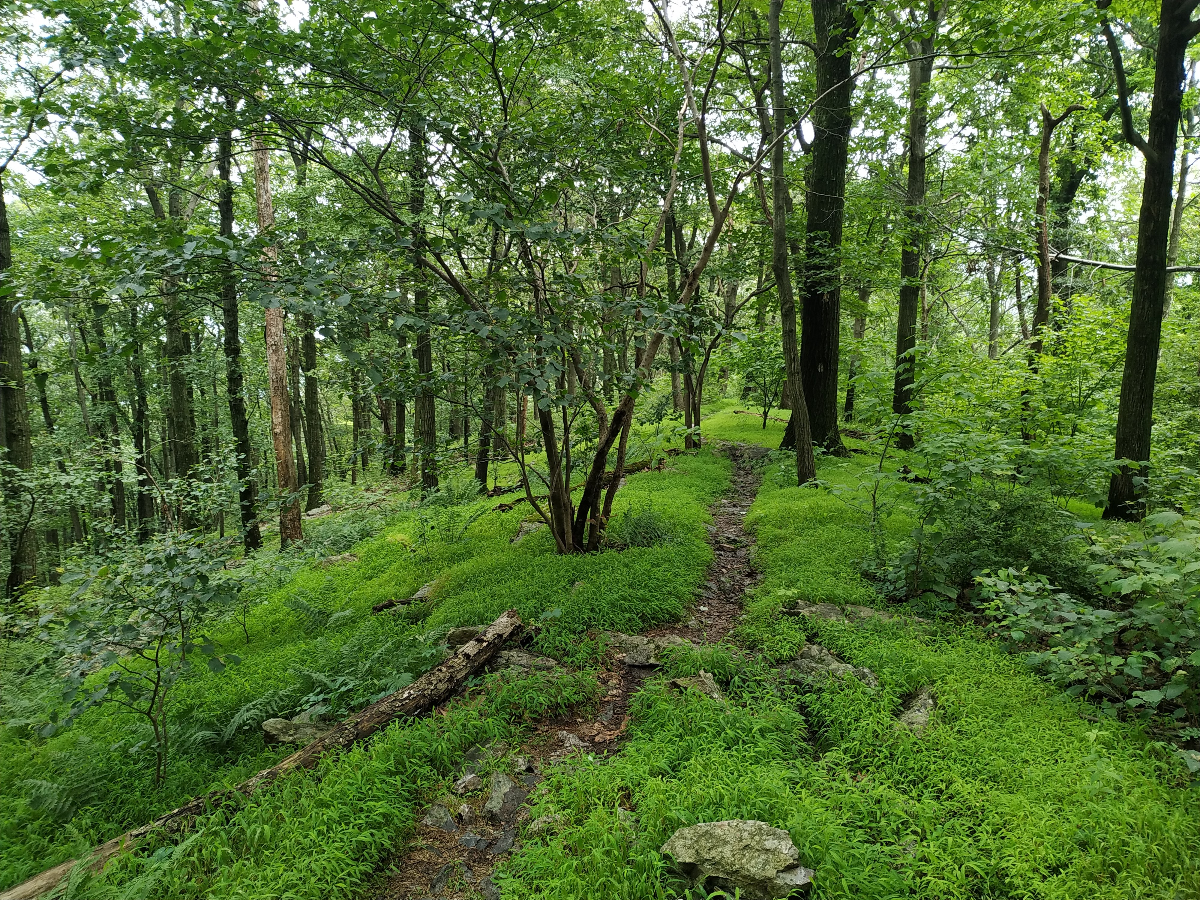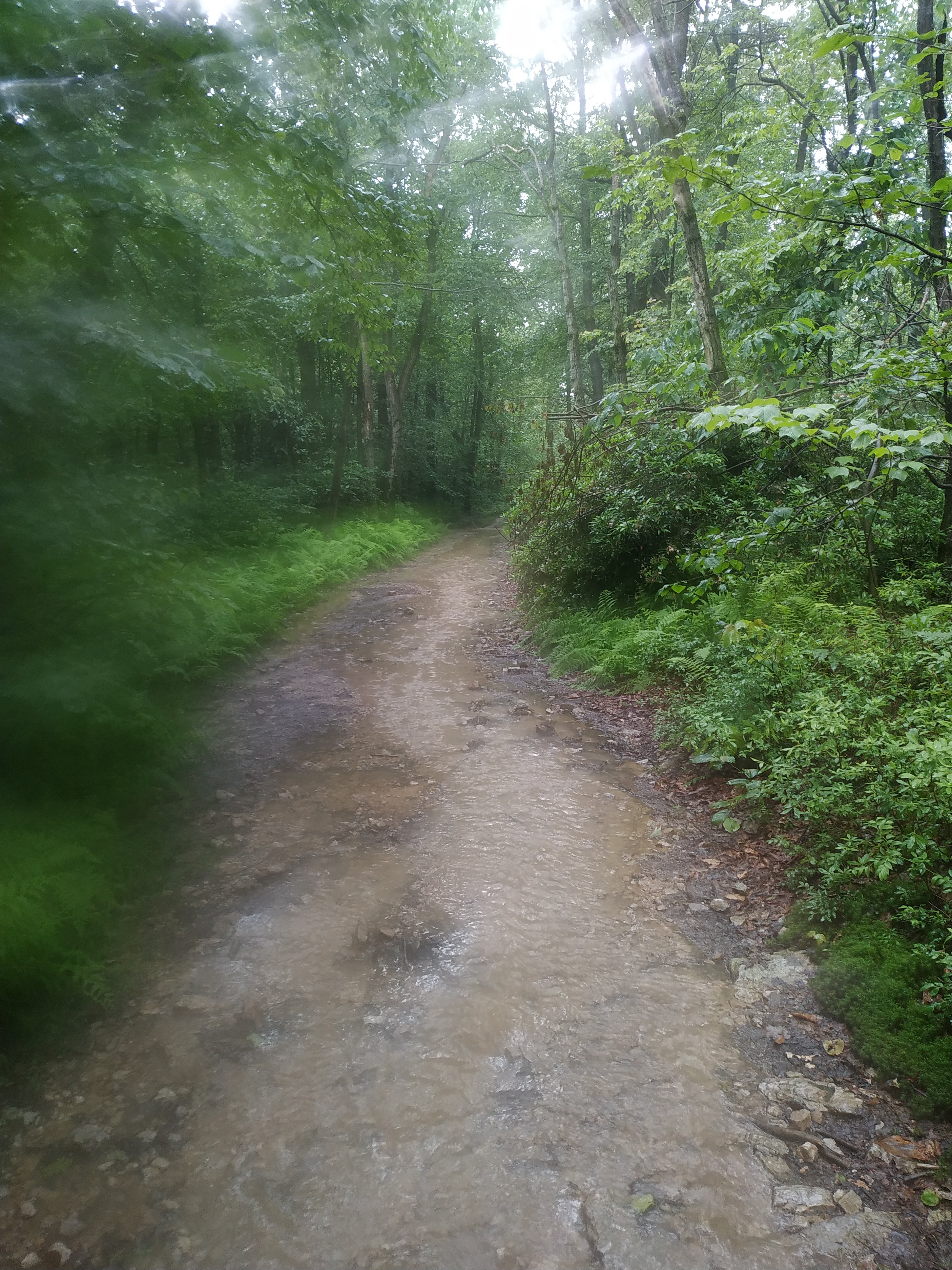 Oben auf der Ridgeline angekommen verliefen die ersten Meilen etwas auf und ab. Allerdings war es ziemlich schwül, was mich dann doch ordentlich zum schwitzen gebracht hat. Das war mir aber lieber als die vorhergesagte Alternative: der Starkregen mit Gewitter.