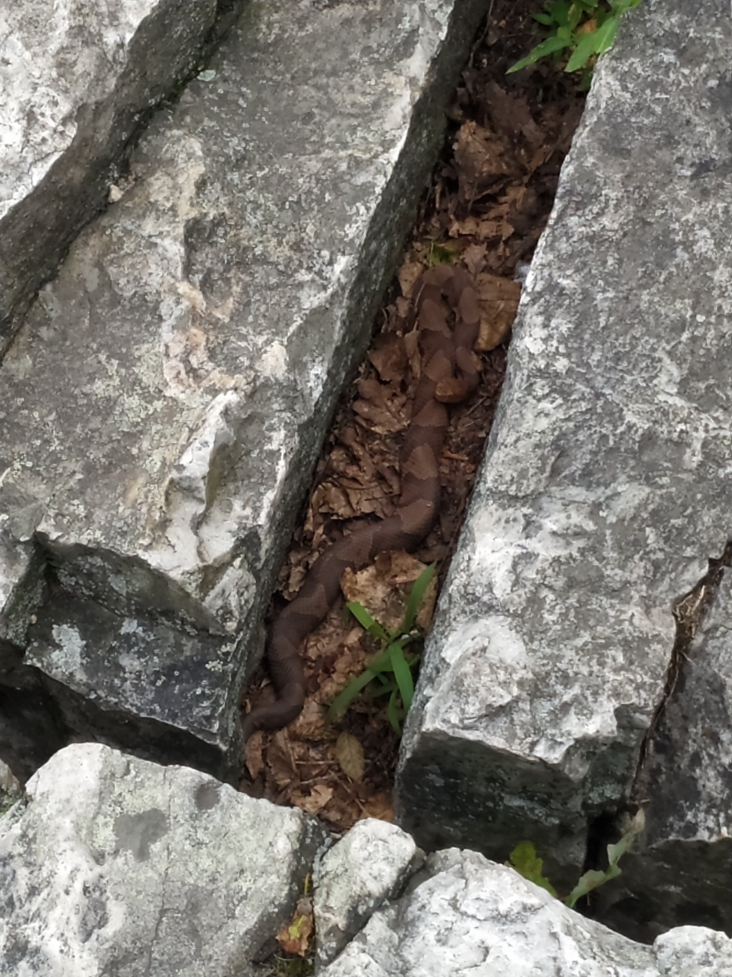 Als ich mein Foto gemacht habe, da kam hinter mit eine Familie mit 2 Kindern und Hund hoch. Die habe ich natürlich gewarnt. Der Vater war auch sehr dankbar und hat seinen Kindern nur aus der Distanz die Copperhead gezeigt.