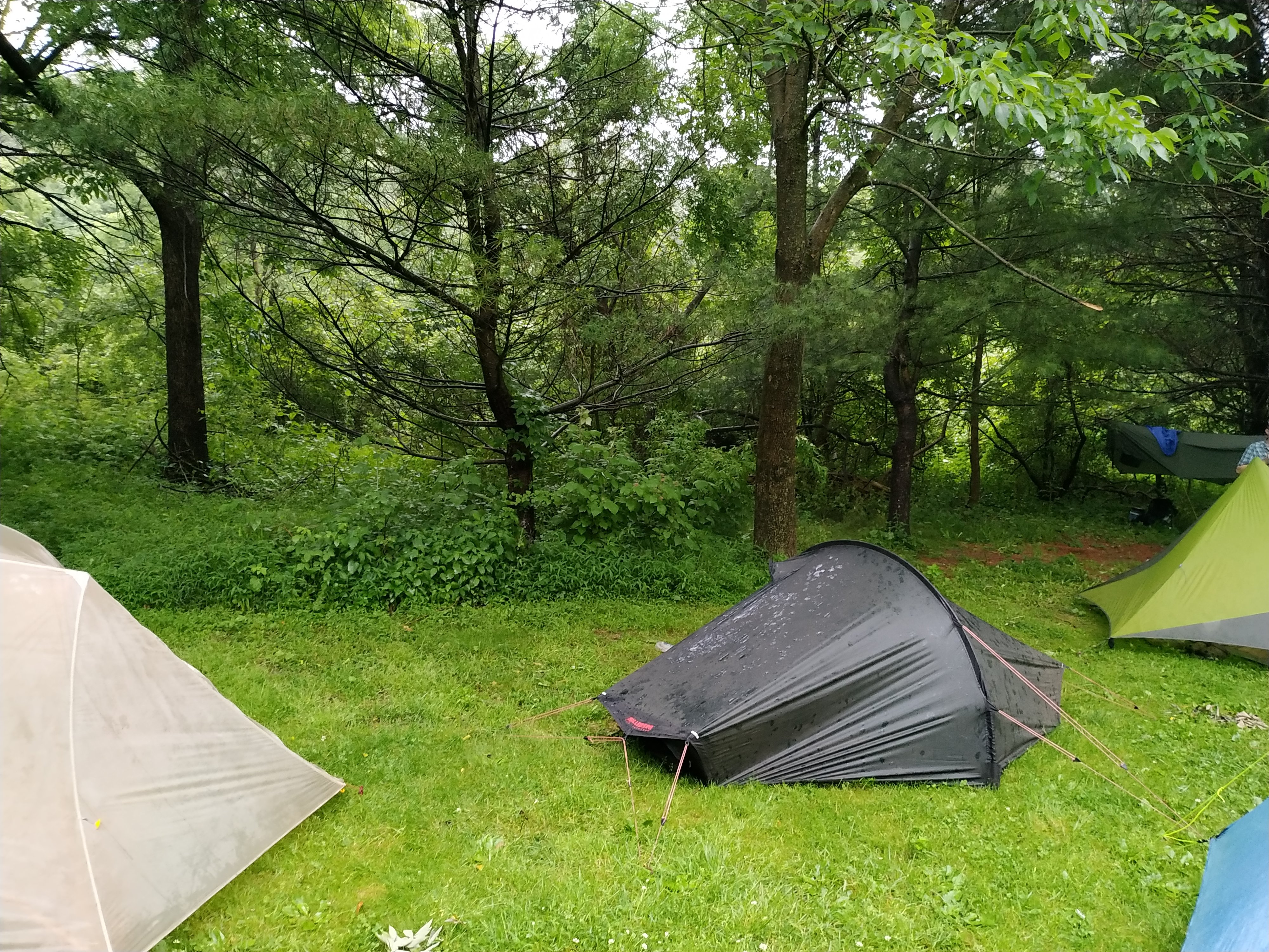 Das ging eine gute dreiviertel Stunde so weiter, bis es endlich aufhörte. Kurz danach hat ein Day-Hiker zu mir aufgeschlossen. Der hatte offensichtlich Redebedarf (oder wollte abgelenkt werden, da Ihm nach 16 Meilen die Füße weh taten). Auf jeden Fall haben wir uns gut unterhalten, bevor er zu seinem Auto und ich zum Eckville Shelter gegangen bin. Dort bin ich um 18:50 angekommen.