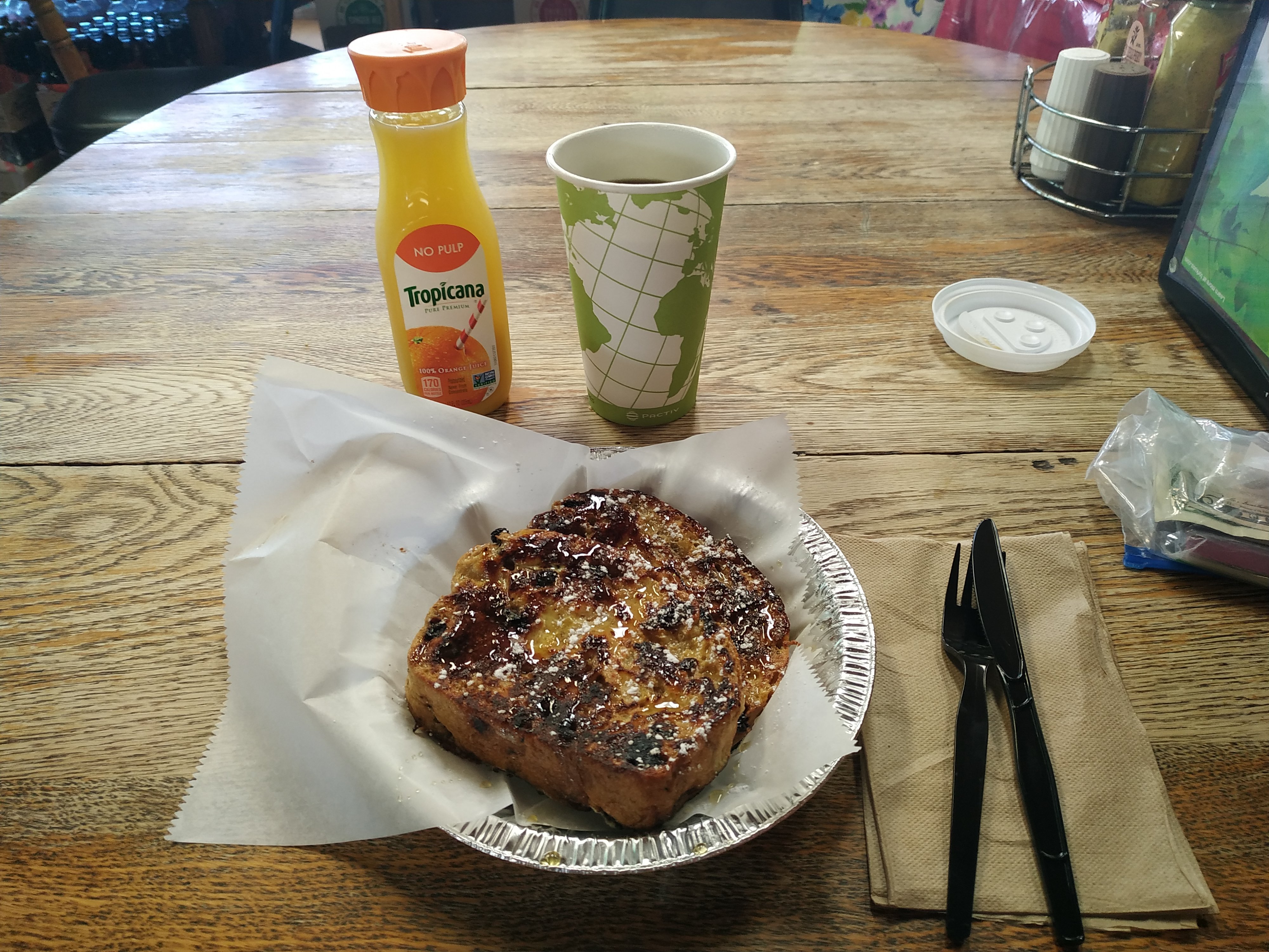 Heute morgen habe ich richtig schön ausgeschlafen und bin erst um 8h aufgestanden. Danach bin ich zur Apple Pie Bakery zum Frühstücken gegangen. Der French Toast dort war ziemlich lecker. Allerdings hat es auch fast 20 Minuten gedauert bis er fertig war. Und das obwohl außer mir kein anderer Kunde da war…