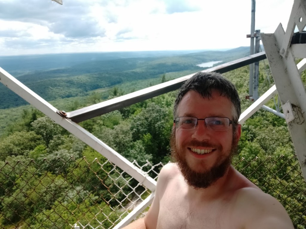 Nach dem Essen haben wir noch etwas unsere Sachen in der Sonne getrocknet. Außerdem sind wir zu einem nahegelegenen Laden für Angelbedarf und haben unsere Insektenabwehr aufgefrischt, bevor wir zu dritt weiter gewandert sind. Da war es dann übrigens 25° 😁 Und so haben wir uns, in der jetzt schwül warmen Luft, an den Aufstieg zum Culver Fire Tower gemacht.