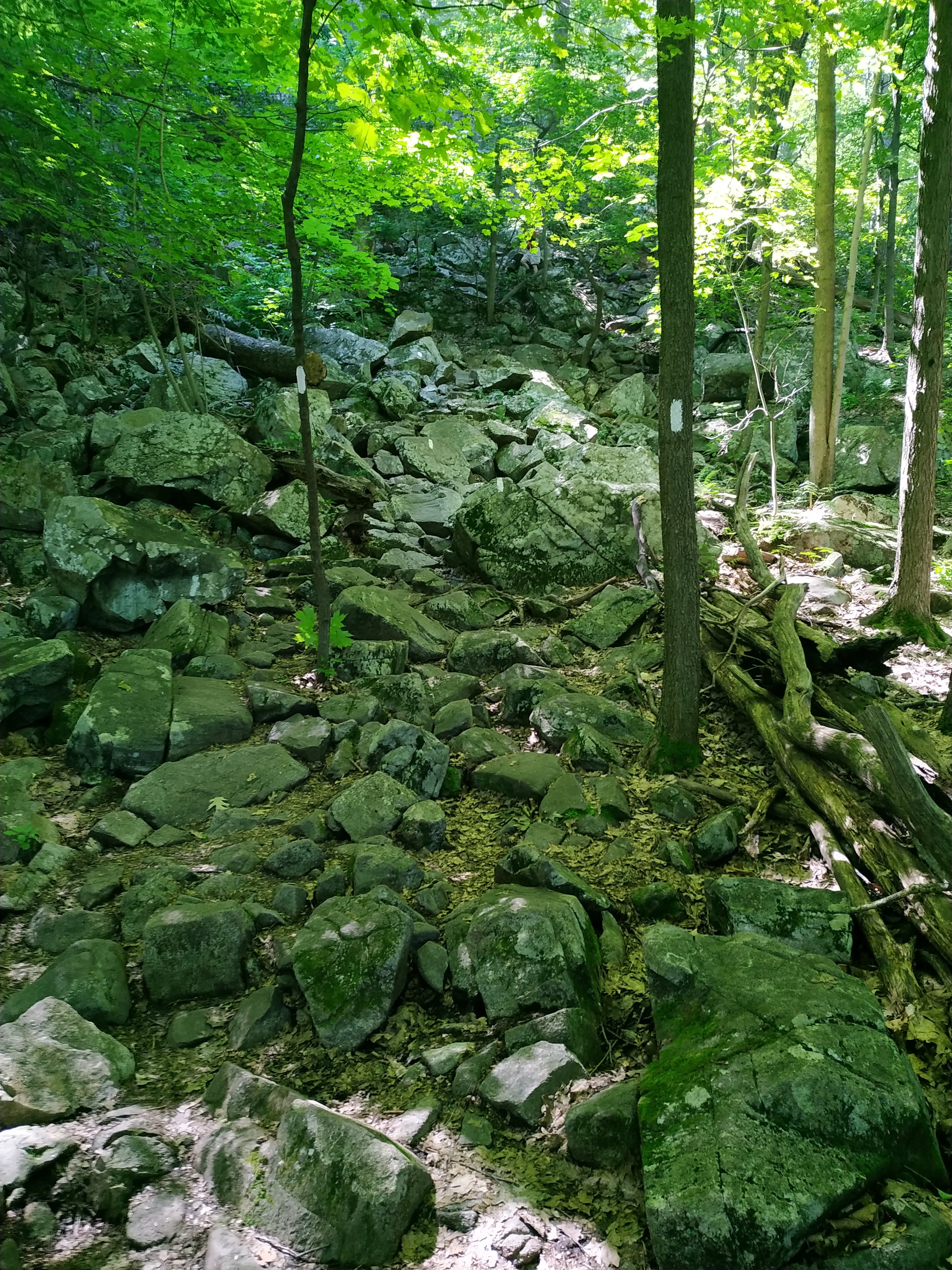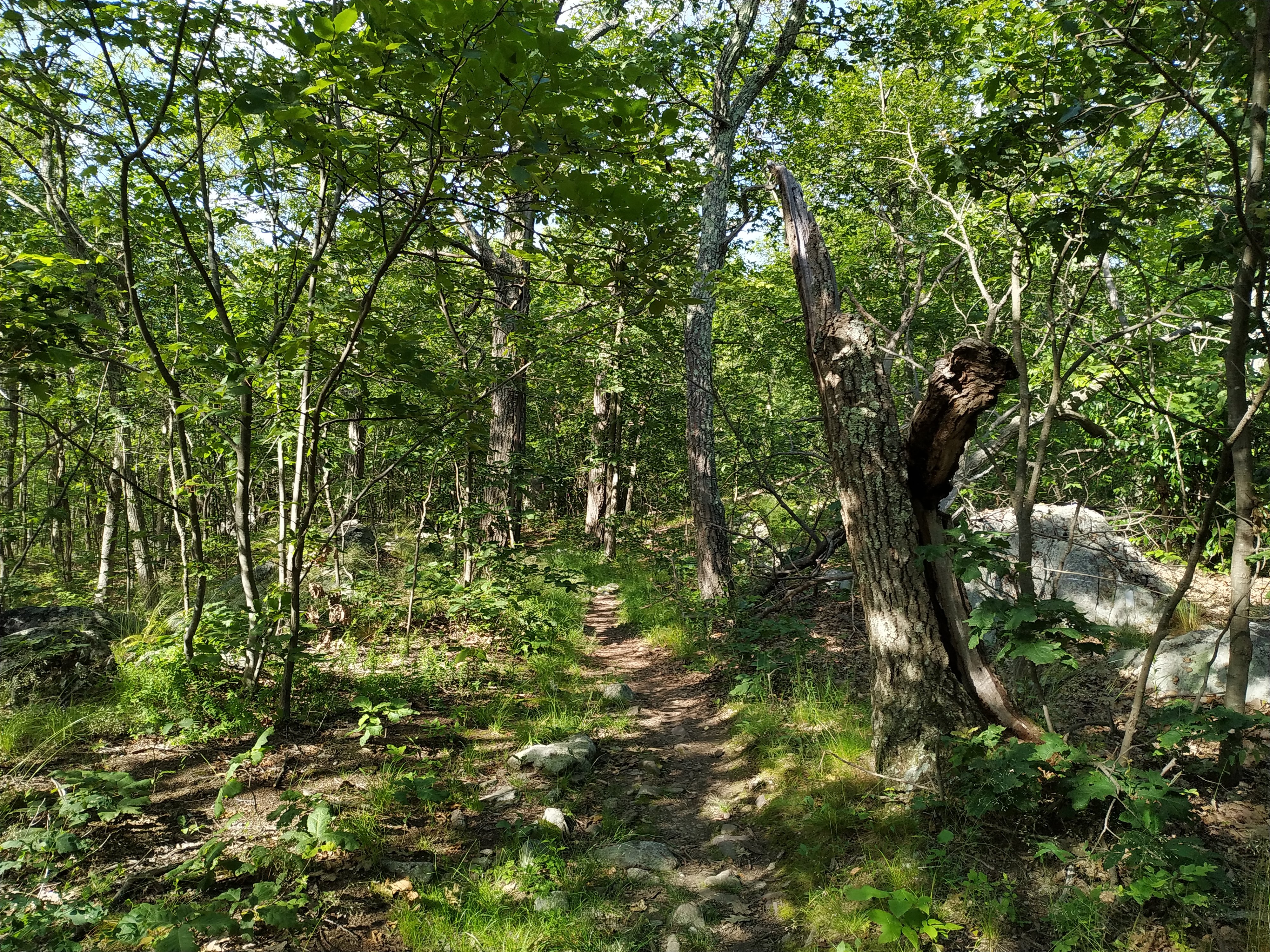 Despite the unimposing profile, rocks and abrupt ups & downs make this section challenging.