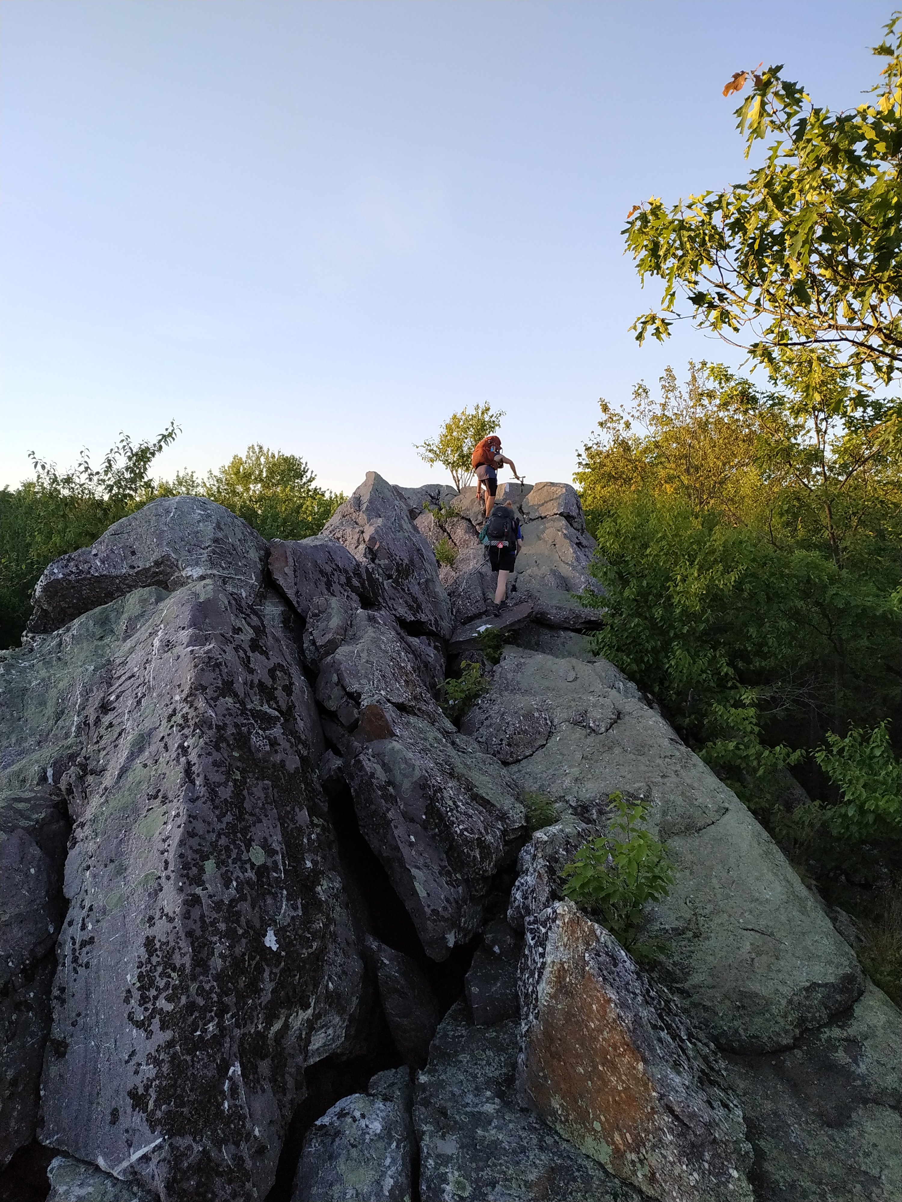 Die nächsten vier Meilen vergingen schwitzend, kletternd und Mücken verscheuchend.