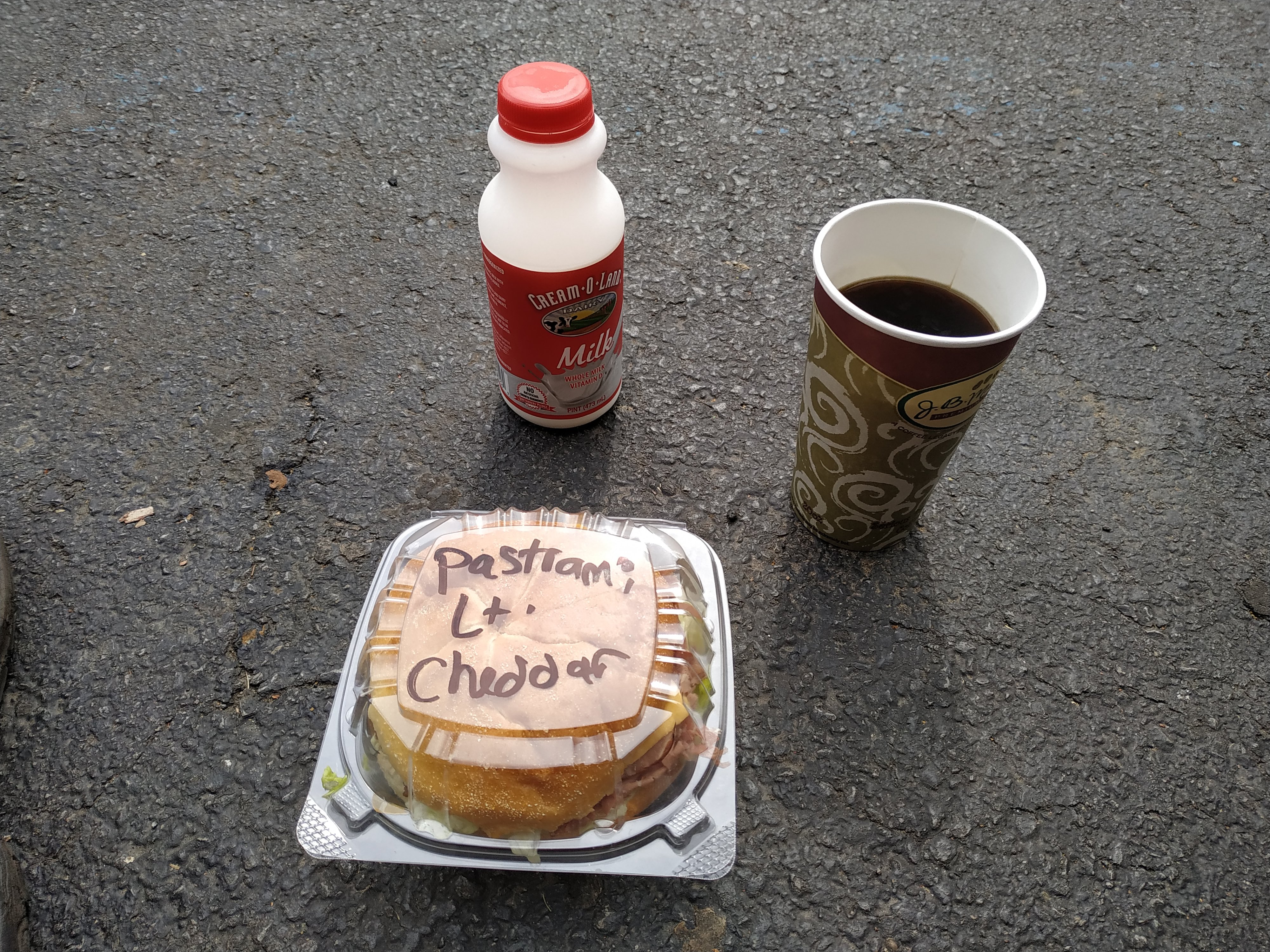 Ab und zu ist es doch sehr erholsam in einem richtigen Bett zu schlafen. Und da ich erst um 9:30 zum Frühstück verabredet war, hatte ich auch noch genug Zeit um auszuschlafen, morgens in Ruhe meine Sachen zu packen und etwas zu lesen. Das Frühstück gab es an der nahen Tankstelle.