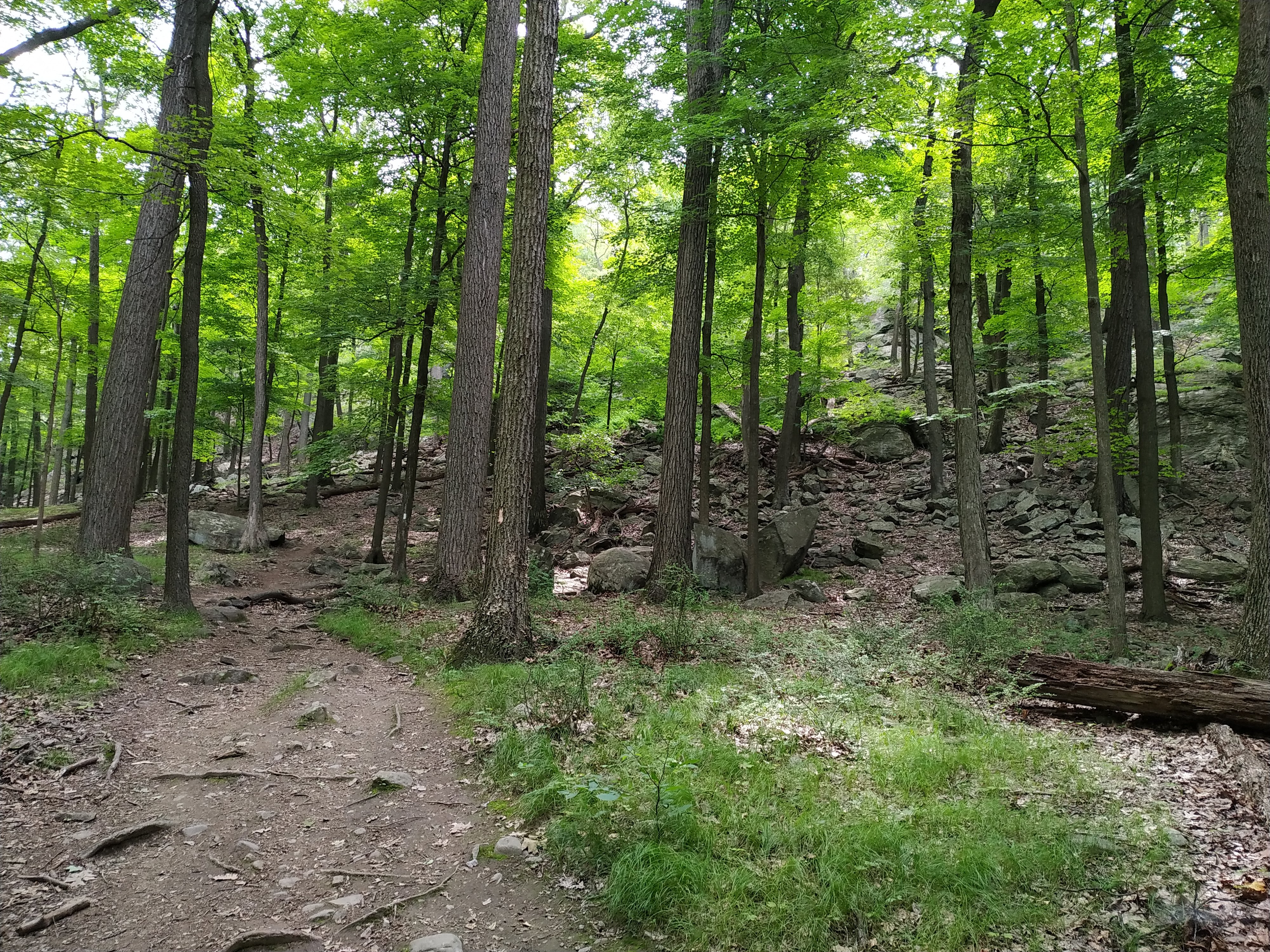 Der letzte Aufstieg des Tages führte hoch auf Black Mountain. Und von hier aus kann man sowohl den Hudson River, als auch die Skyline von Manhattan sehen. Zumindest wenn es dort gerade nicht regnet. 😉