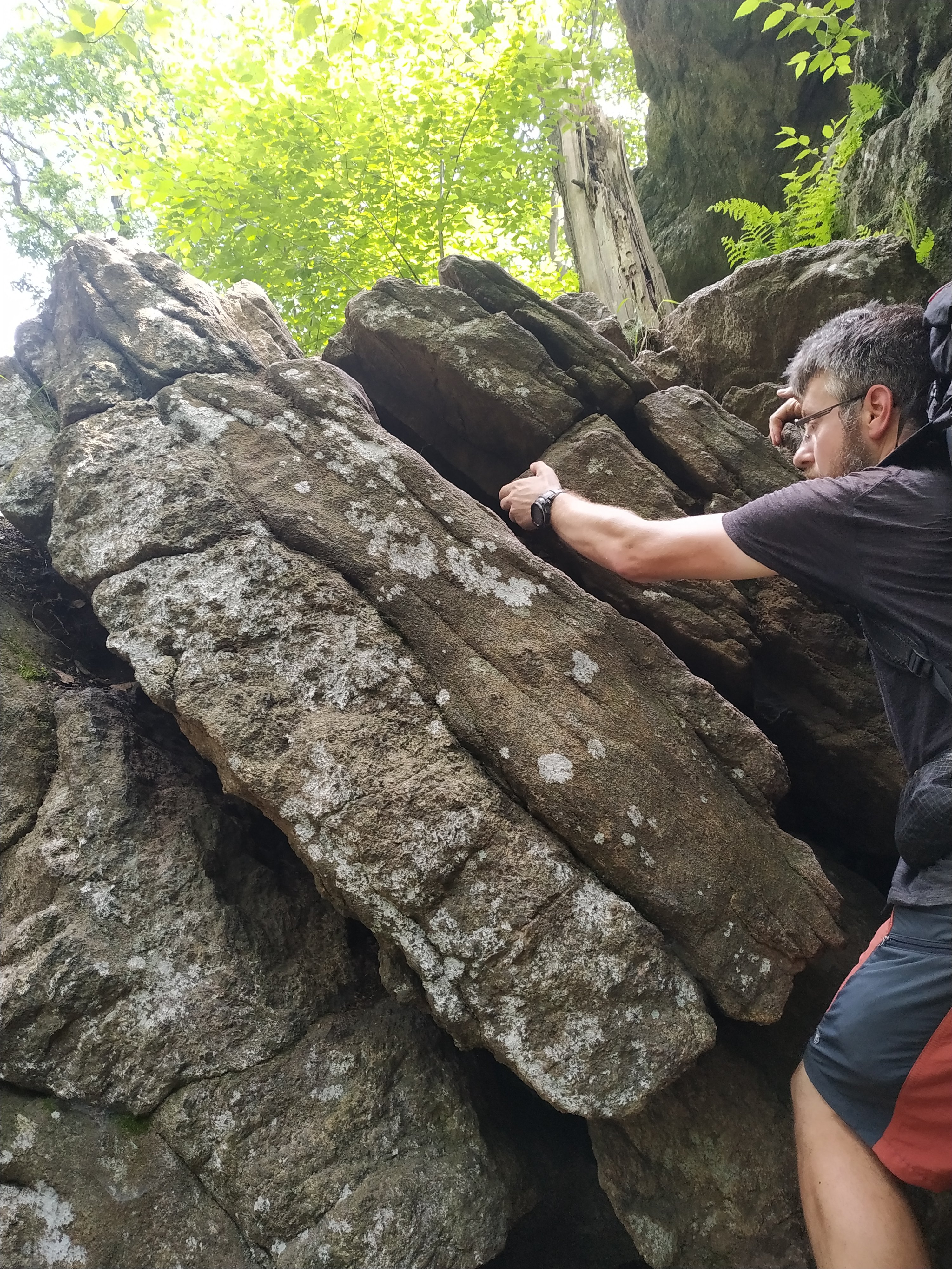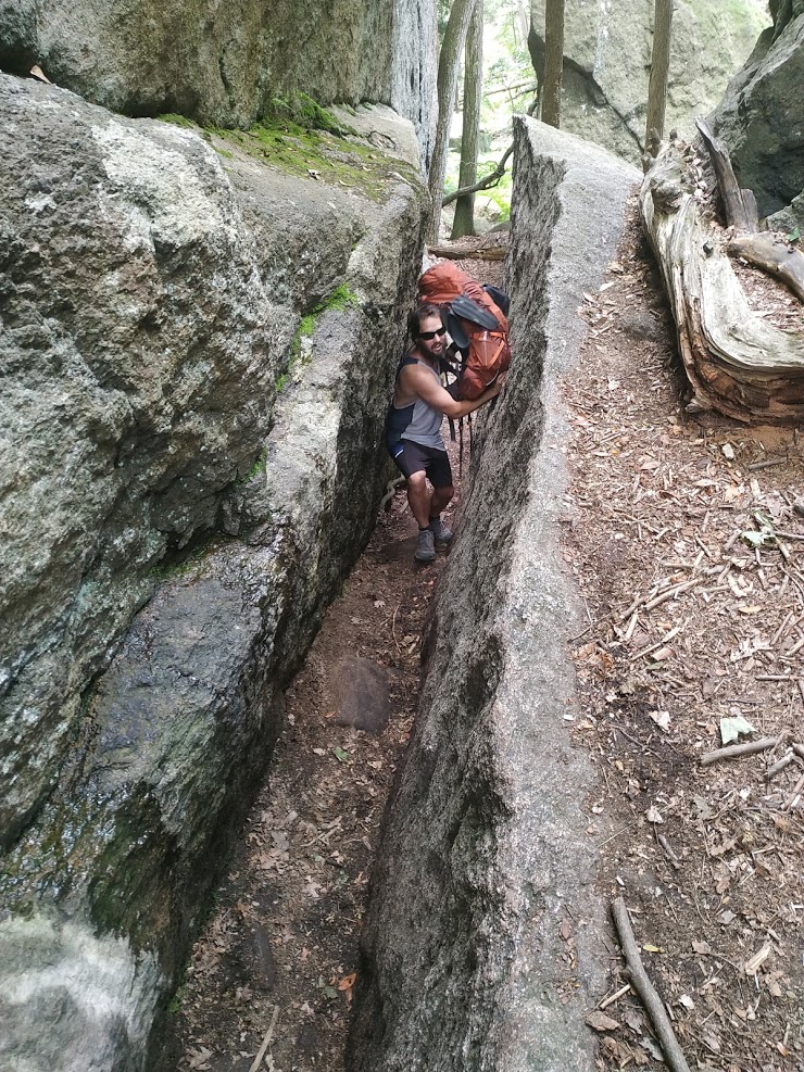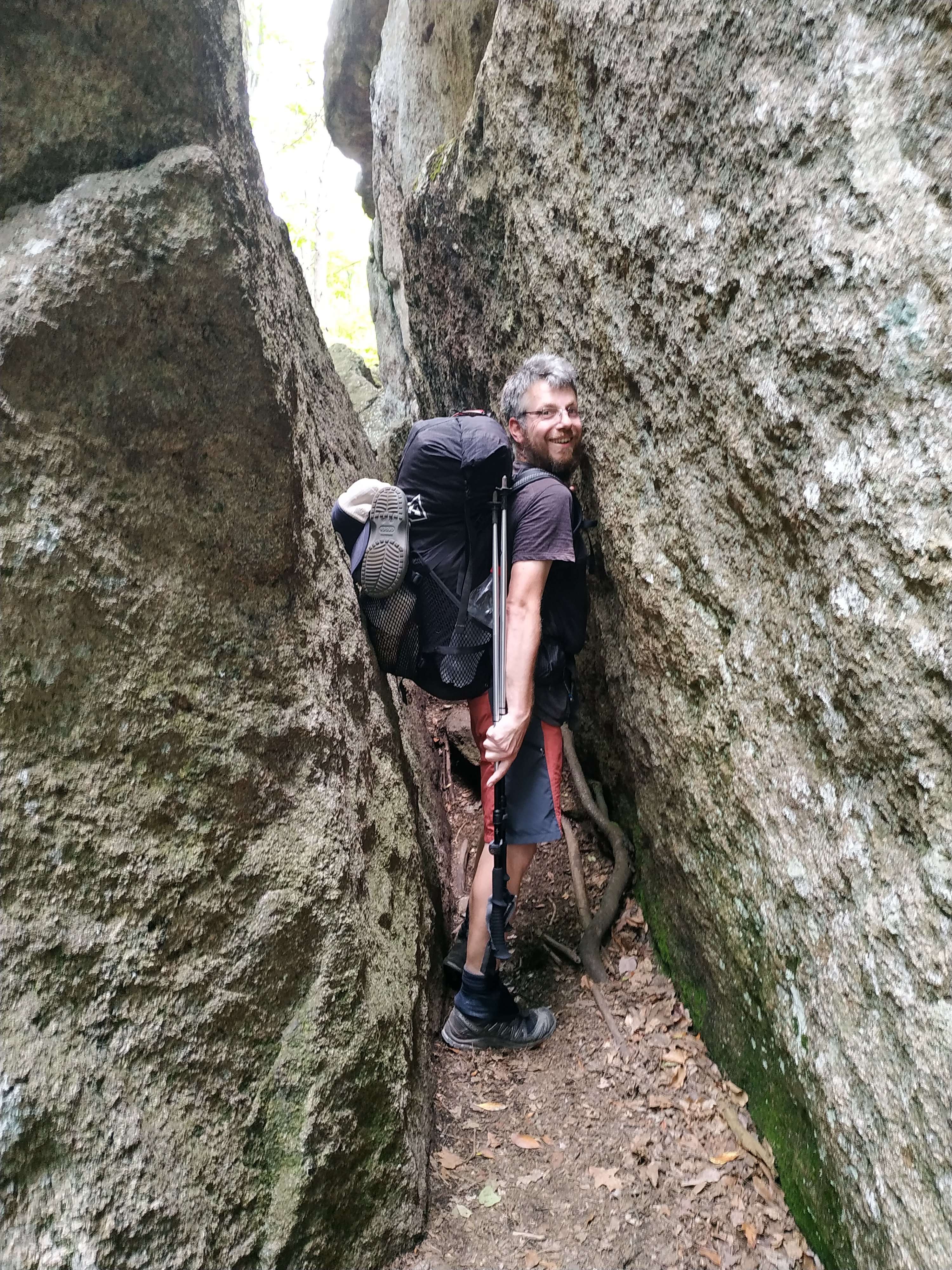 Als nächstes folgte eine Berühmtheit auf dem Trail: der Lemon Squeezer. Mit dem vollen Rucksack auf dem Rücken war da für mich kein Durchkommen. Und kurz davor habe ich Stretch getroffen. Ihn habe ich das letzte Mal in meiner ersten (!) Nacht in Georgia getroffen. Er kam von einem Seitentrail und wollte mir einreden ich ginge nach Süden.😉 Der Arme hat einen White Blaze übersehen und ist wieder zurück vor den Lemon Squeezer gewandert.
