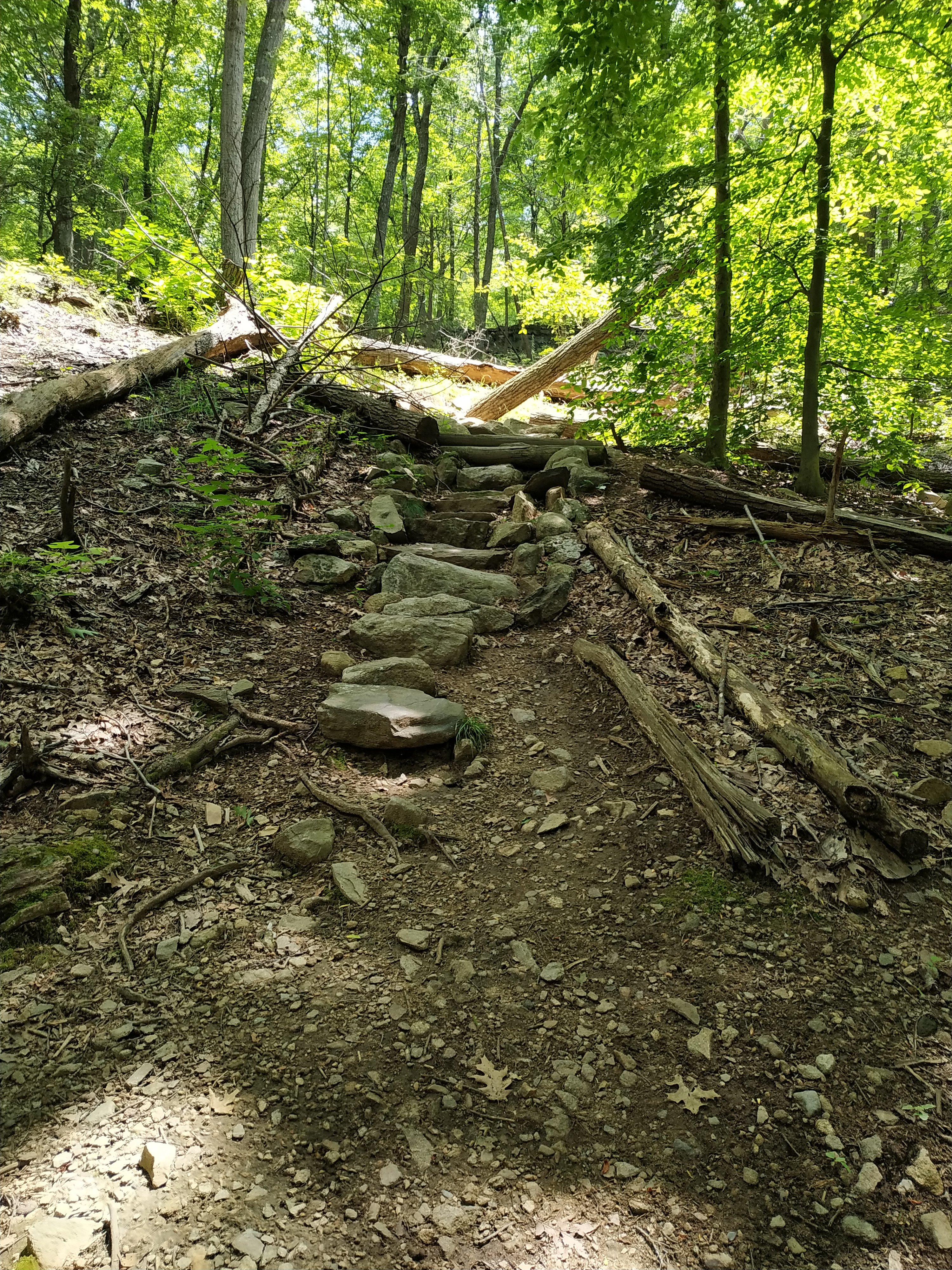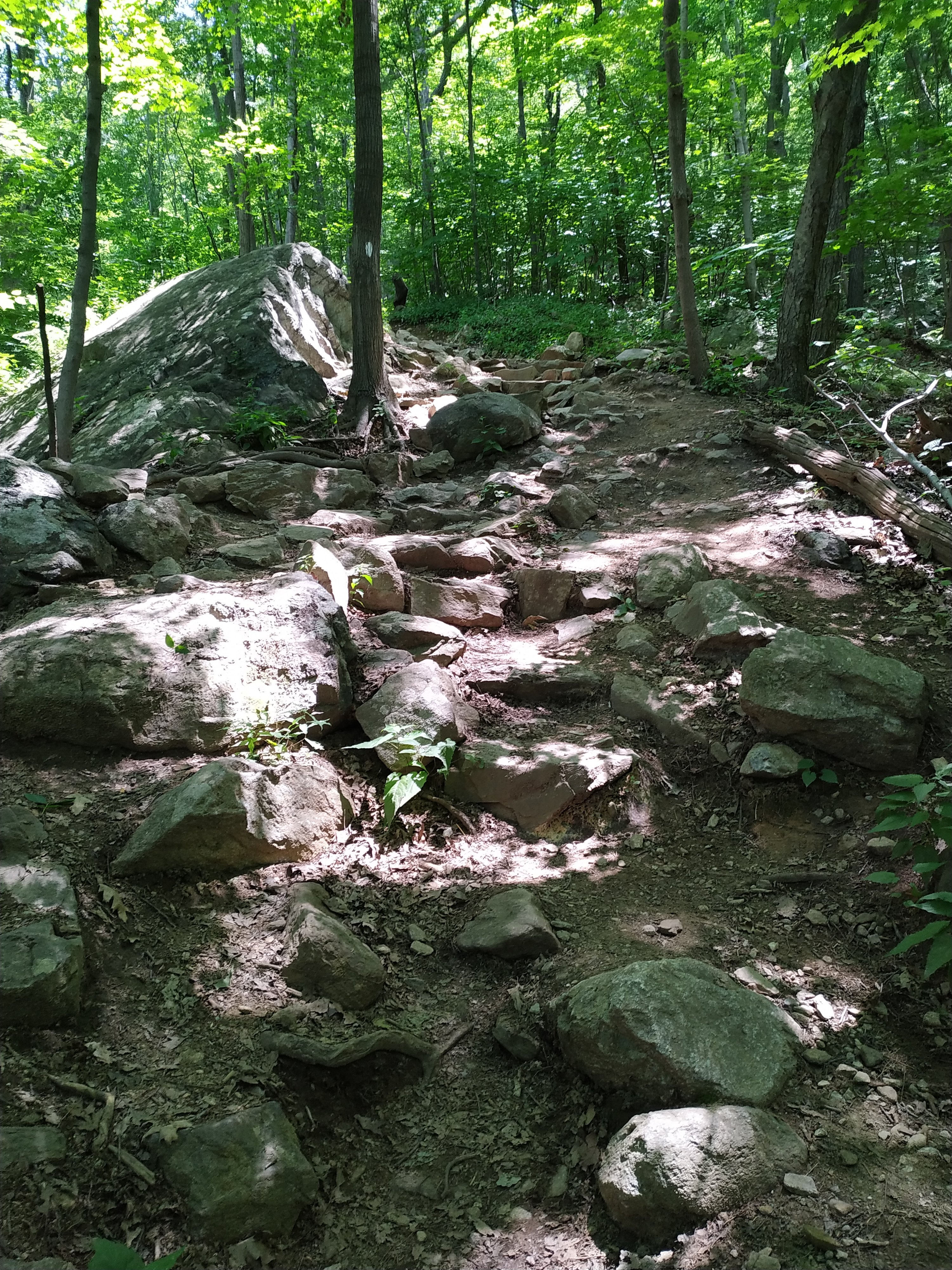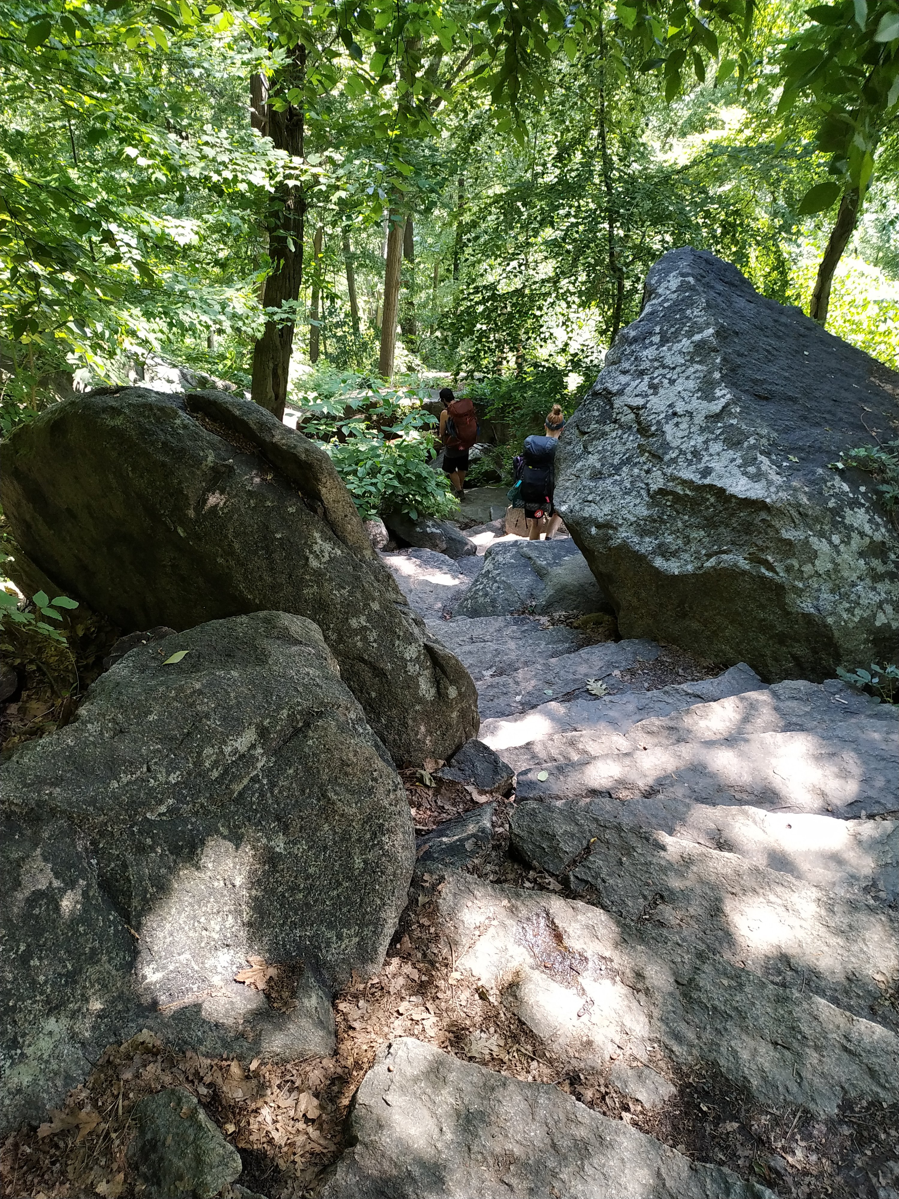 Anschließend folgte ein ziemlich ordentlicher Abstieg. Insgesamt über 1.000 Steinstufen führen nach unten zum Bear Mountain State Park.