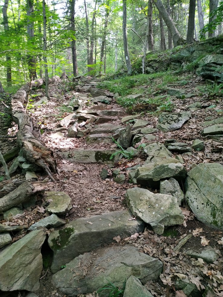 Aber was man hoch läuft, das muss man auch wieder runter laufen. Im Fall der St. John Ledges heißt das, 500 Fuß in 0,3 Meilen. Das war ein ordentlicher Abstieg über die Steinstufen. Nur schade, das man das auf den Fotos nicht wirklich erkennt.