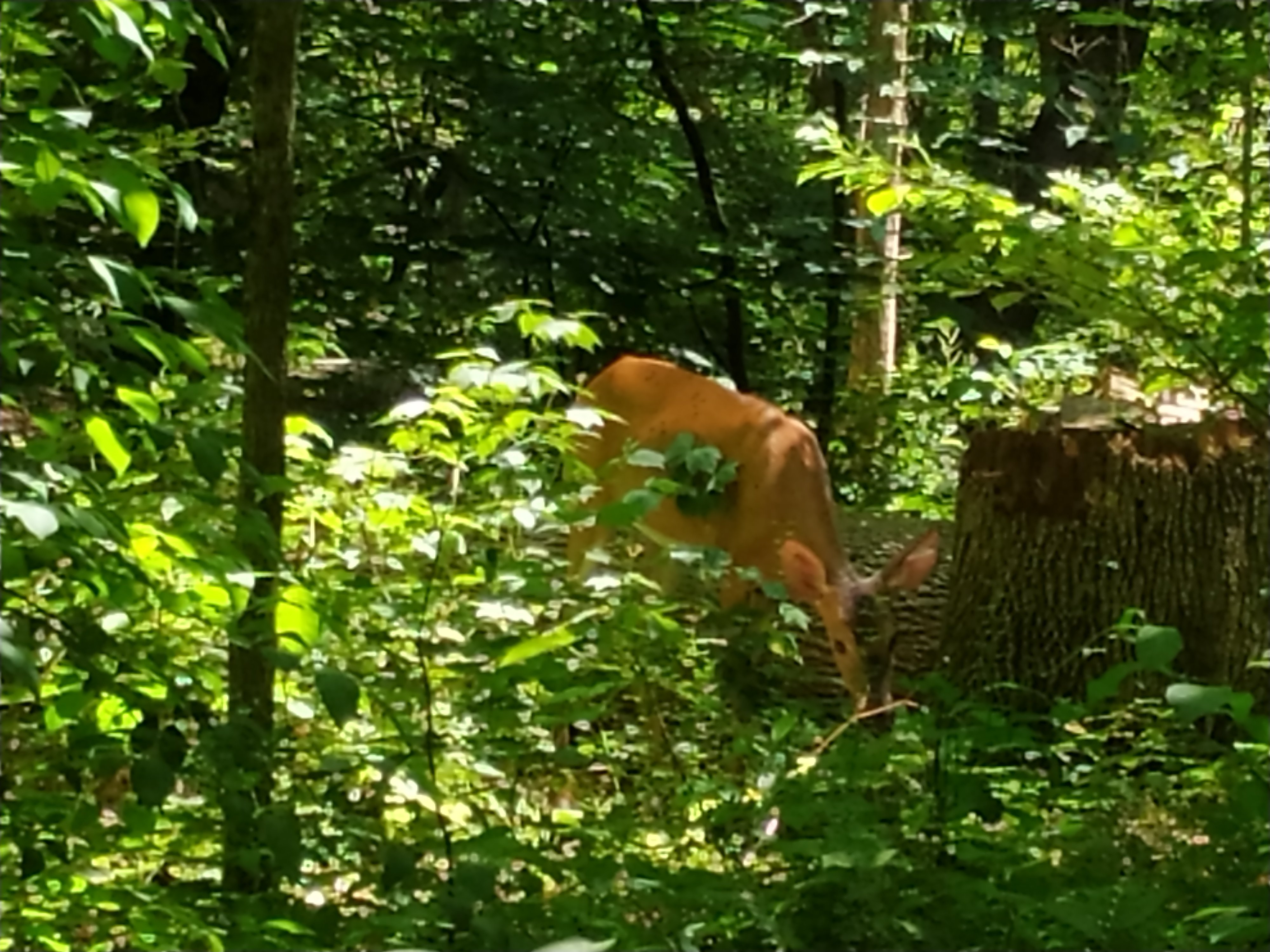Um 13h habe ich am Stewart Hollow Brook Shelter meine Mittagspause gemacht. Dabei hatte ich Gesellschaft von einem Day-Hiker und später von Fireball und 5 O’Clock. Und ein Reh hat die ganze Zeit ganz ungestört gegrast.