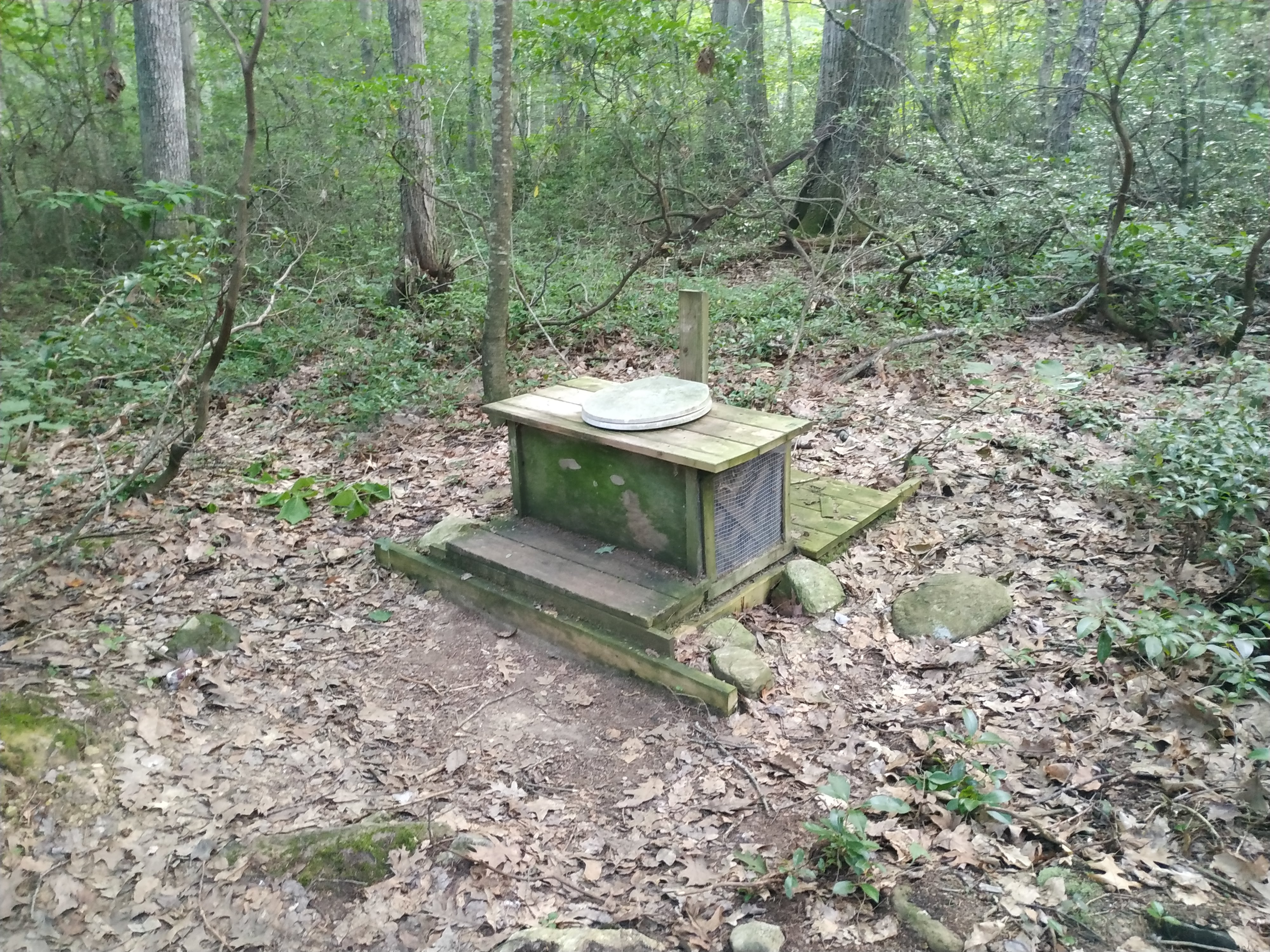 Die Campsites hier in Connecticut sind übrigens fast so gut ausgestattet wie die Shelter. Hier gibt es Bärenboxen und Privies. Allerdings sind die Privies sehr … einfach gehalten. 😅 Sehr gute Belüftung, nur leider auch ein direkter Zugang für die Mosquitos. 😉