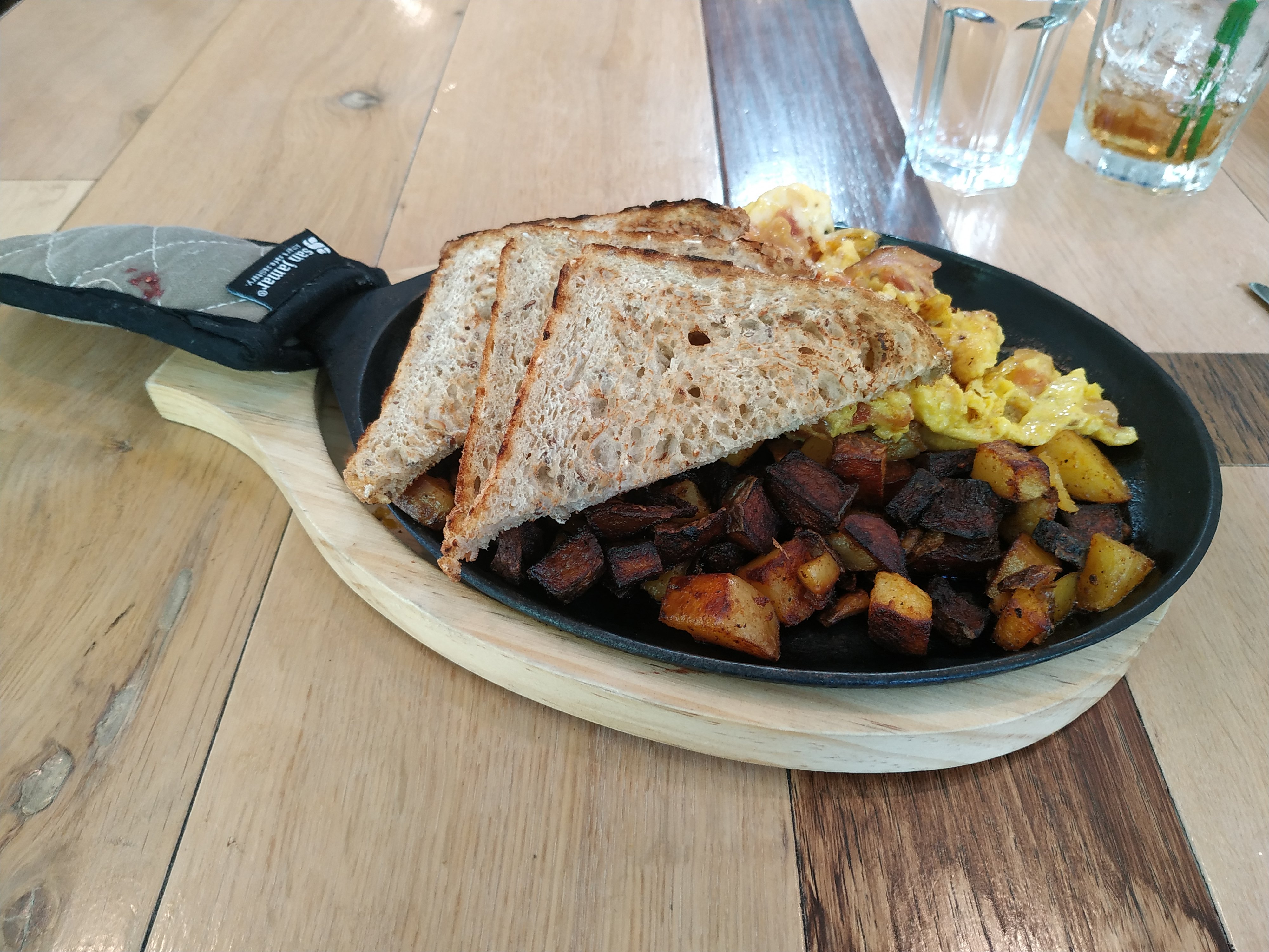 Eiskalte Cola – super! Danach sind wir gemeinsam die etwas mehr als eine Meile zum Mountain House Diner gewandert. Dort gab es für mich ein sehr leckeres Johnny Cash Skillet.