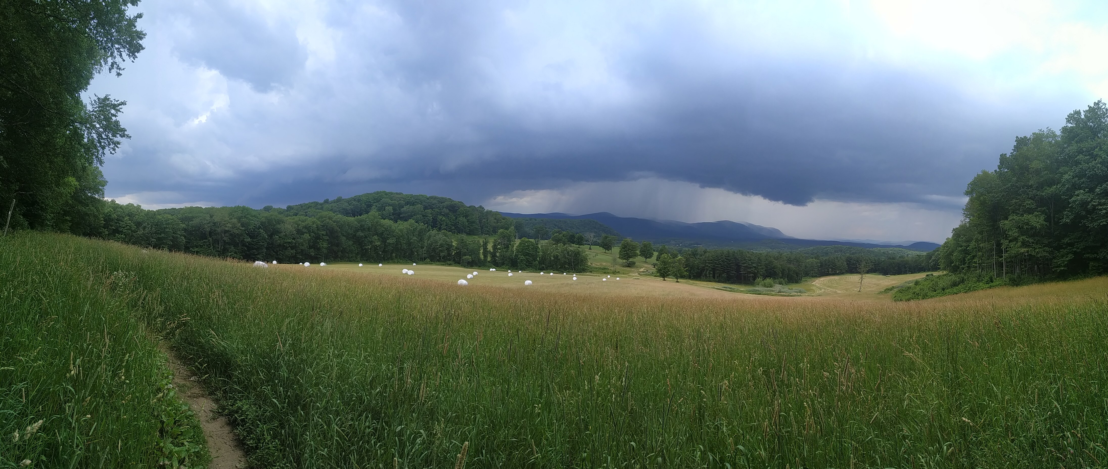 Oben an der Ridgeline angekommen kündigte sich Besuch an. Das angesagte Gewitter wütete schon in der Ferne.