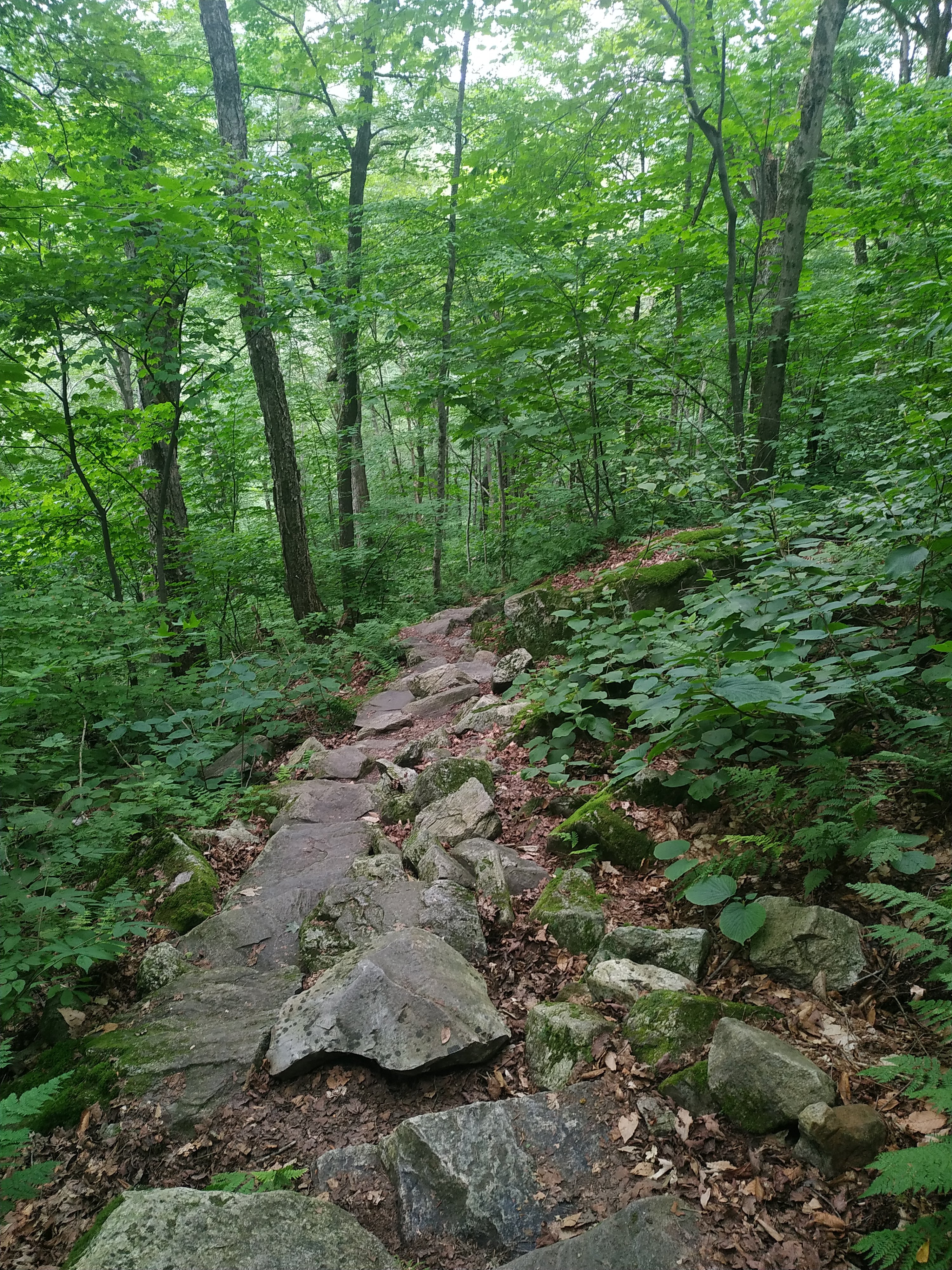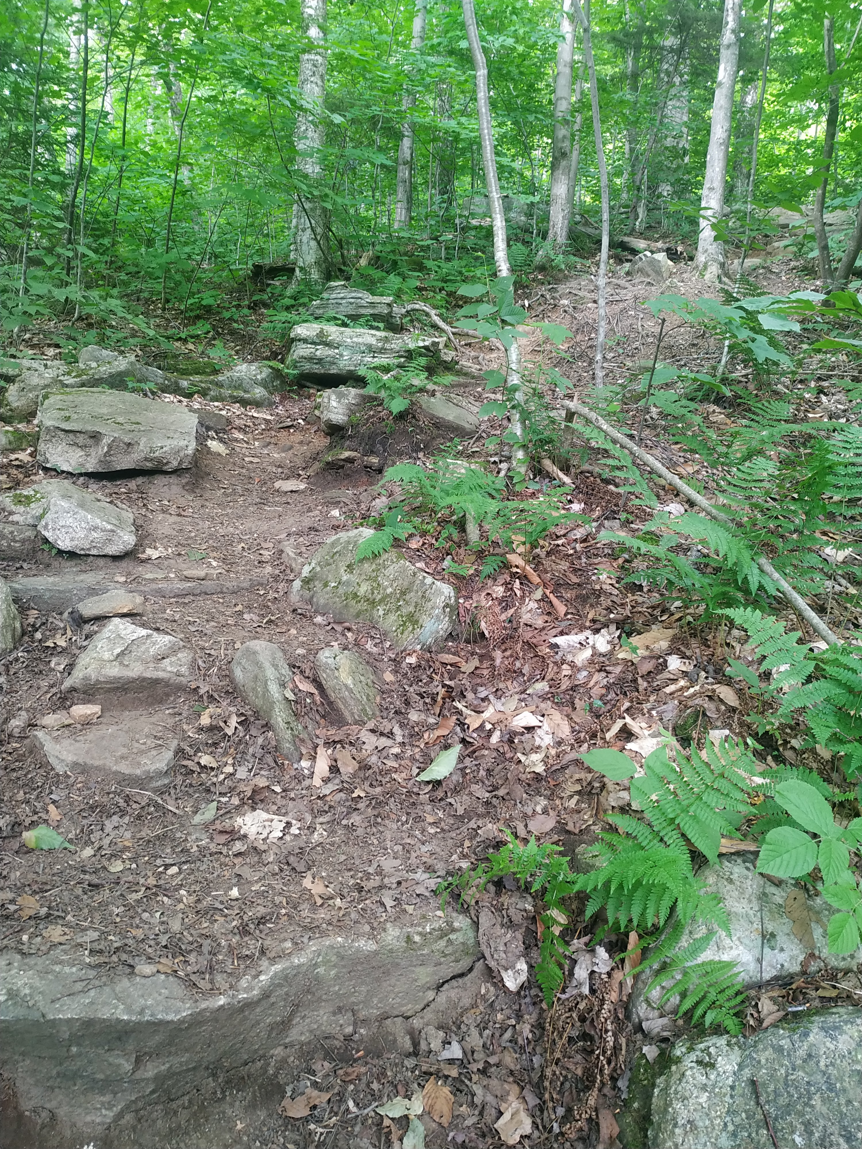 Kurz vor dem Abstieg runter nach Bennington habe ich eine Jugendgruppe getroffen. Und die haben mich vor dem steilen Abstieg gewarnt. Zuerst wollte ich das schon als Bla bla abtun, aber das Guidebook zeigte etwas ähnliches an. Ich durfte mich also freuen… Und die Jugendlichen hatten Recht. Es war wirklich ziemlich steil.