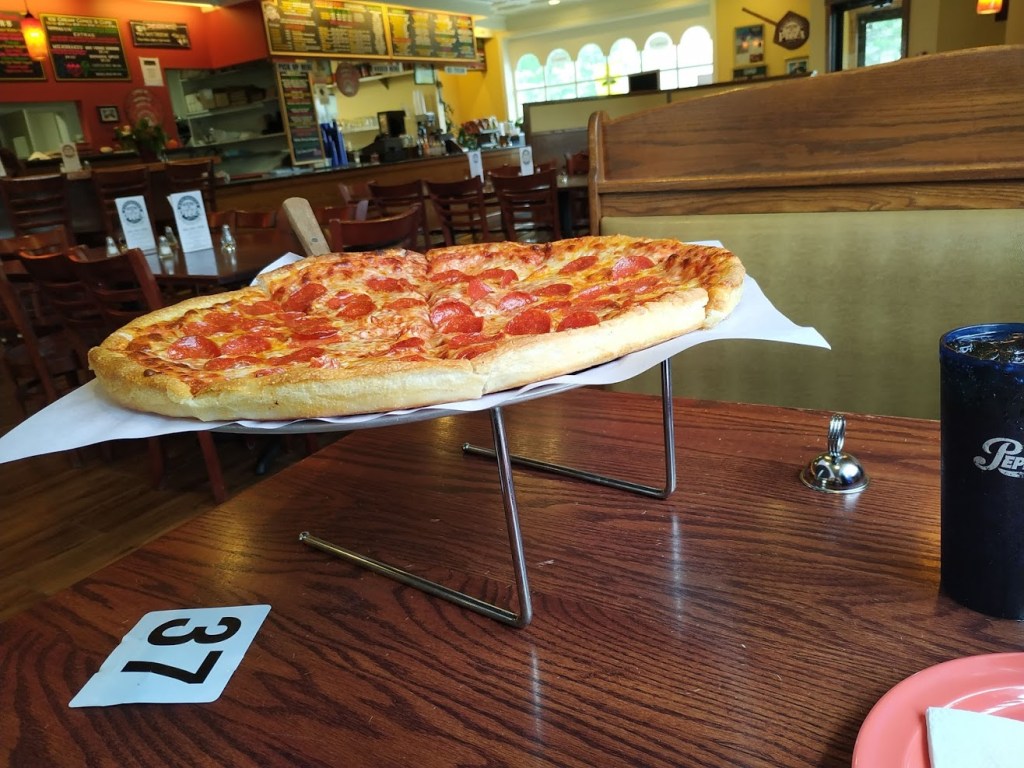 In der Stadt angekommen bin ich zuerst zu Manchester Pizza essen gegangen. Eine 18″ Peperoni Pizza. Die Hälfte zum sofort Essen, die andere Hälfte als Abendessen und Proviant für morgen.