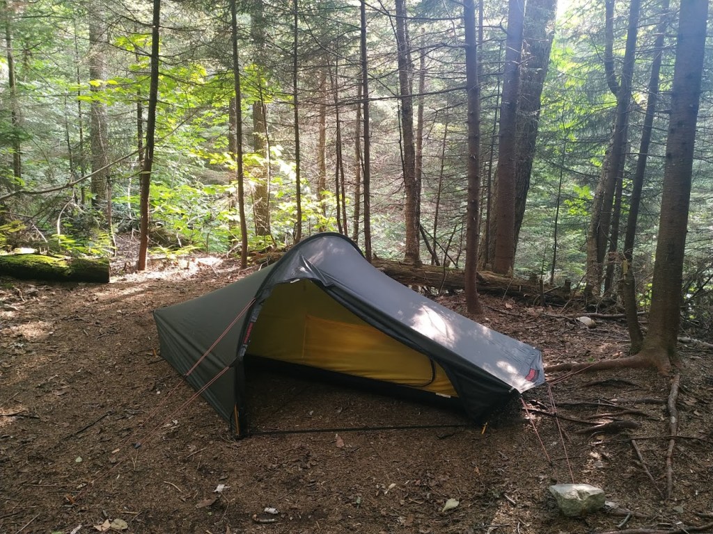 Kurz vor 18h war ich am Shelter und eigentlich wollte ich noch eine halbe Meile weiter zur nächsten Campsite. Die Hiker hier am Shelter haben mich aber gewarnt, das eine große Gruppe Boyscouts schon auf dem Weg dorthin ist. Also habe ich mich für die Ruhe hier und einen schönen Zeltplatz direkt neben dem Bach entschieden. Das Rauschen ist einfach entspannend.