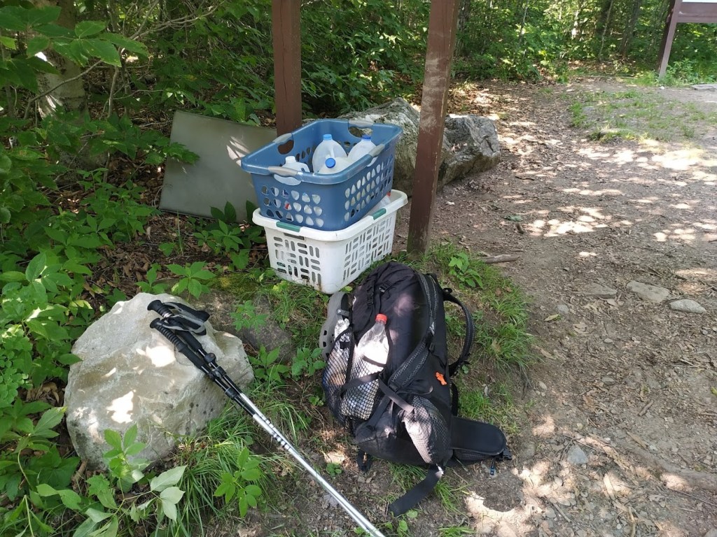 Unten angekommen gab es Trail Magic in Form von Wasserkanistern. Genau passend. Denn nach der Pizza und dem damit verbundenen Durst sowie den Meilen danach war mein Wasser fast alle.