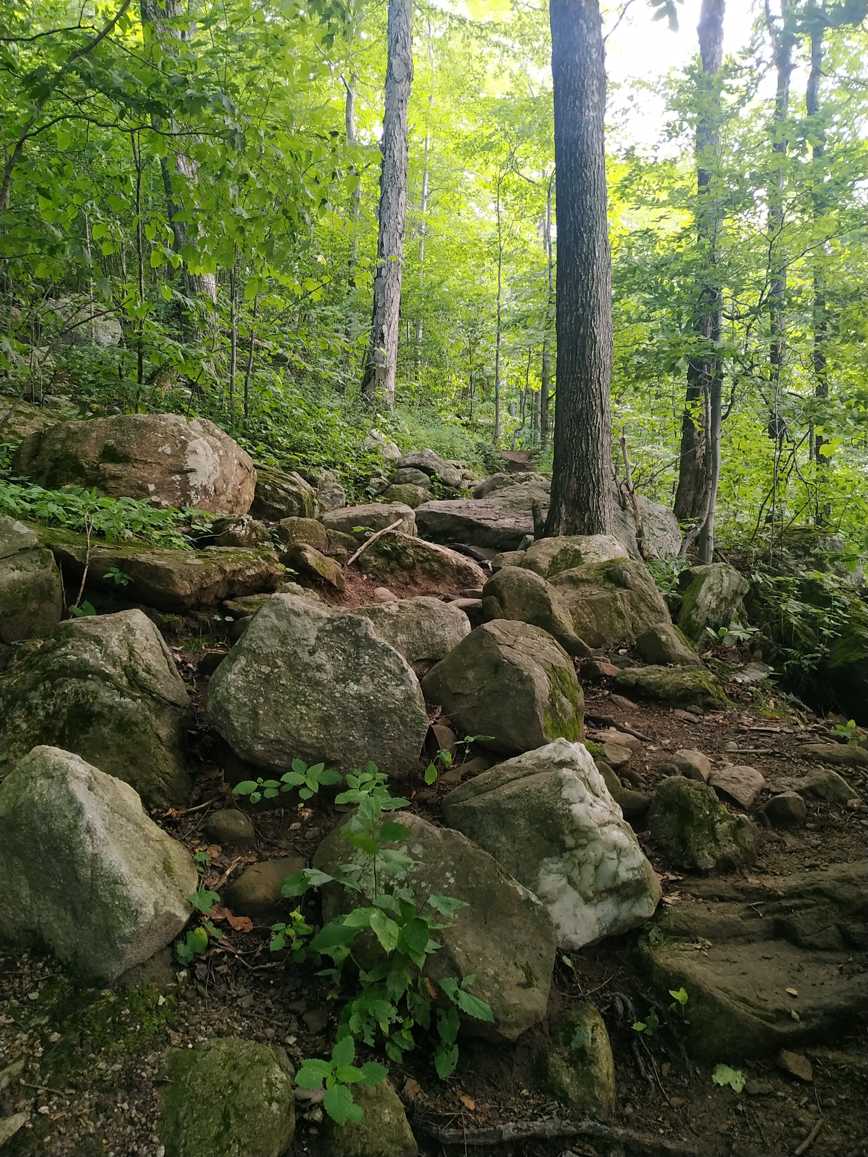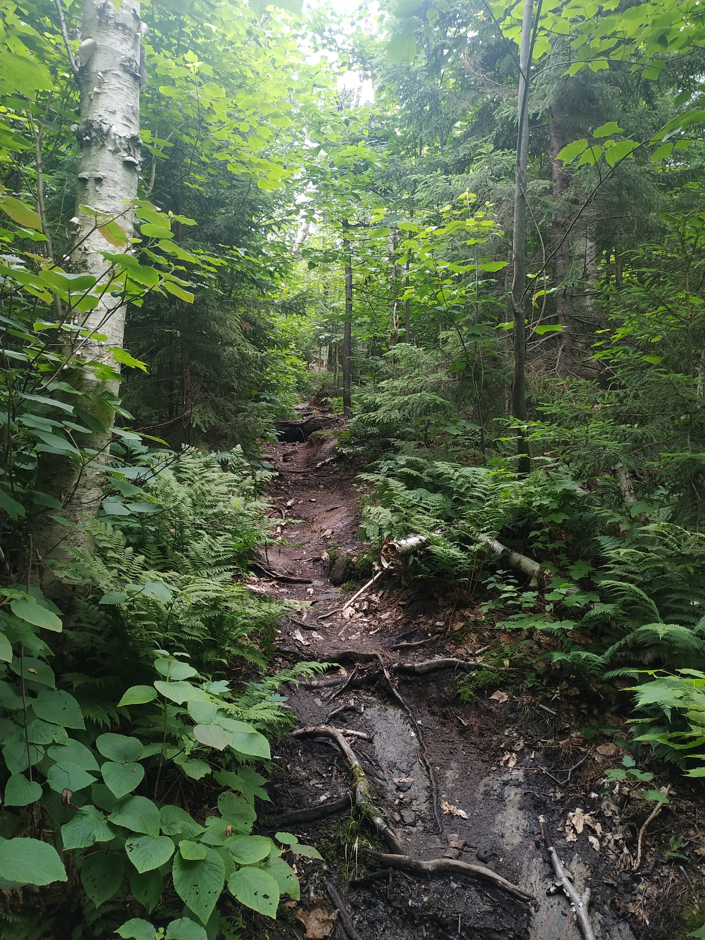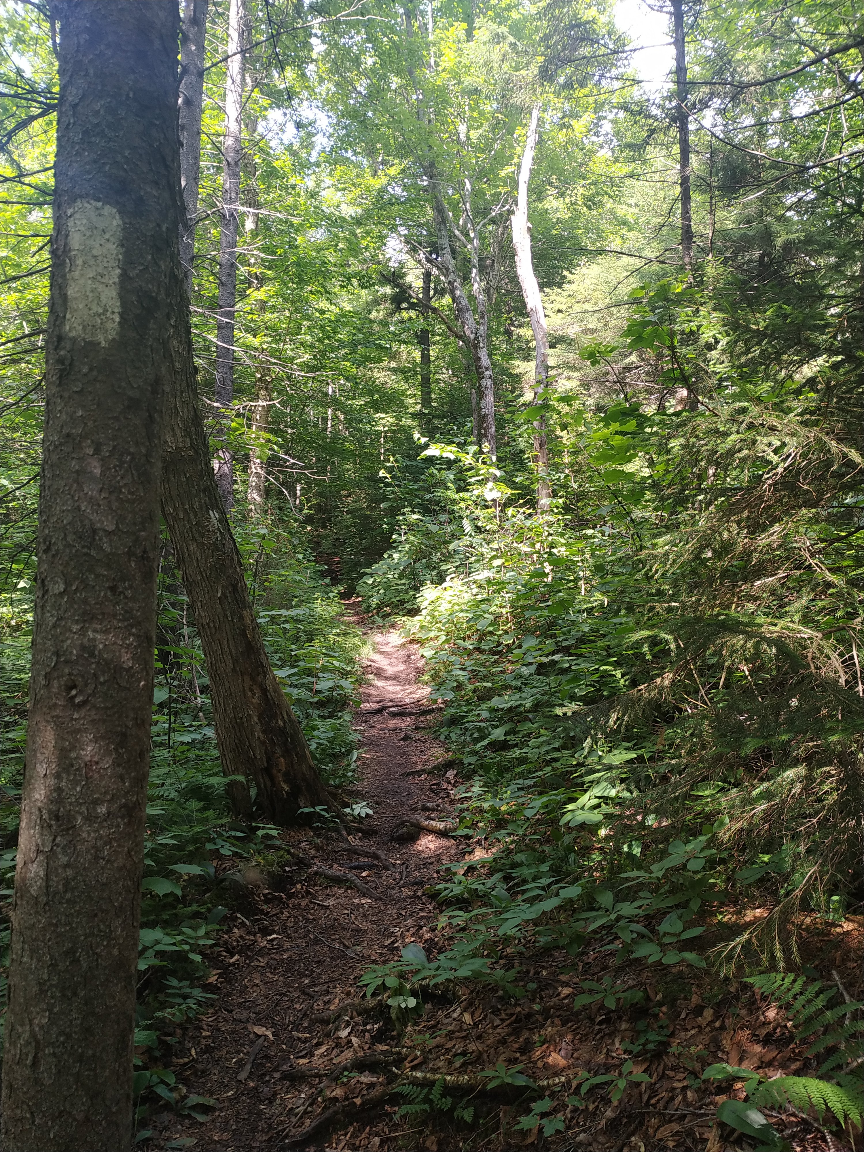 Danach war der leichte Teil des Tages vorbei und der Ernst des Wanderalltags begann. Von hier aus ging es gefühlt nur noch nach oben. Und da ich die Green Mountains schon verlassen habe, ist es leider auch nicht mehr so schön, das ich über den Anblick den Aufstieg vergessen würde. Zuerst ging es hoch auf Quimby Mountain, 1.300 Fuß auf etwa 1,3 Meilen. Ein fieses Verhältnis. Entsprechend steil waren viele Abschnitte.