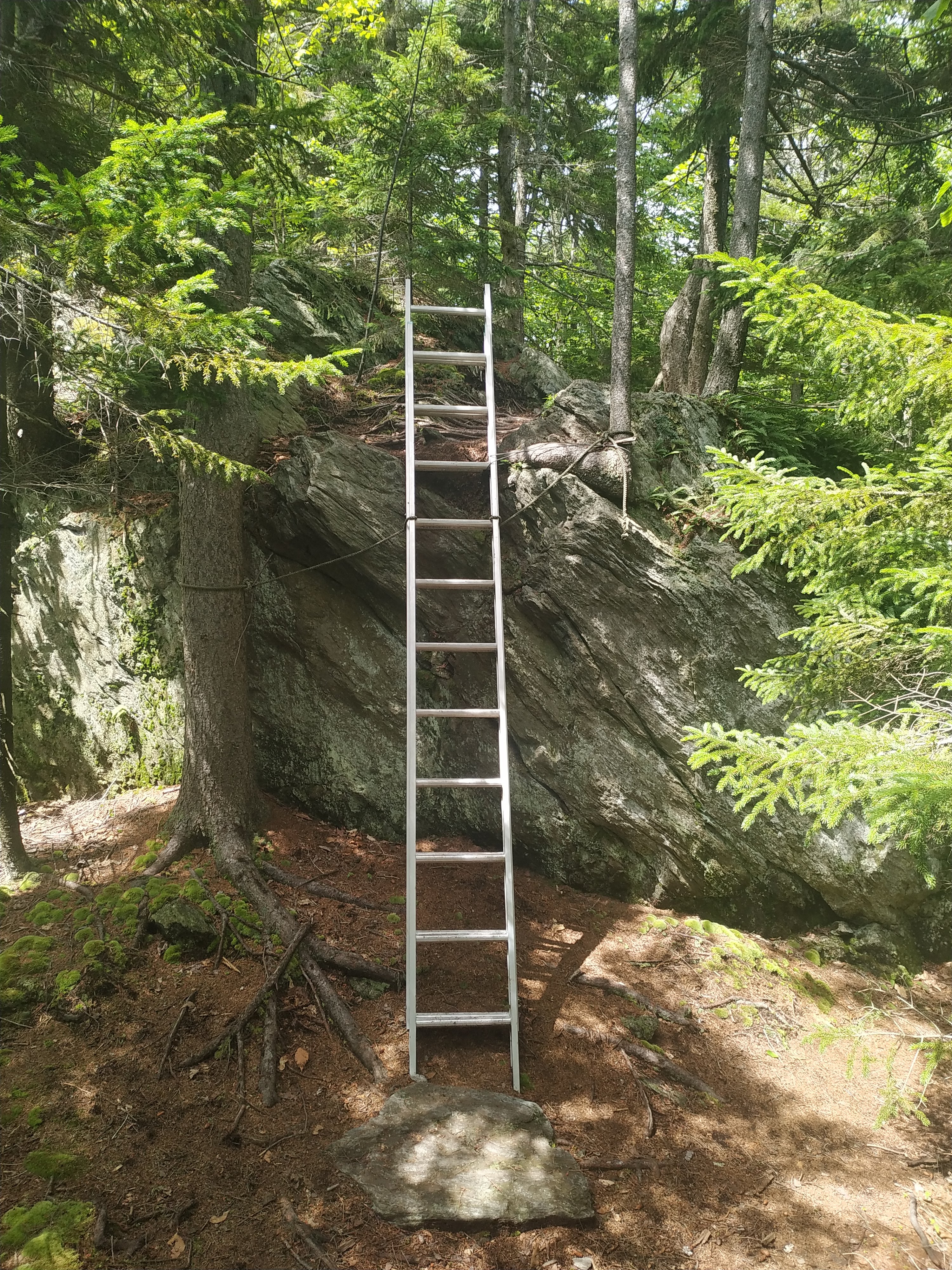 Oben angekommen durfte ich die Höhe erst einmal einigermaßen halten. Und dann stand da auf einmal eine Leiter in Wald – anders wäre der Abstieg auch knifflig geworden. 😉