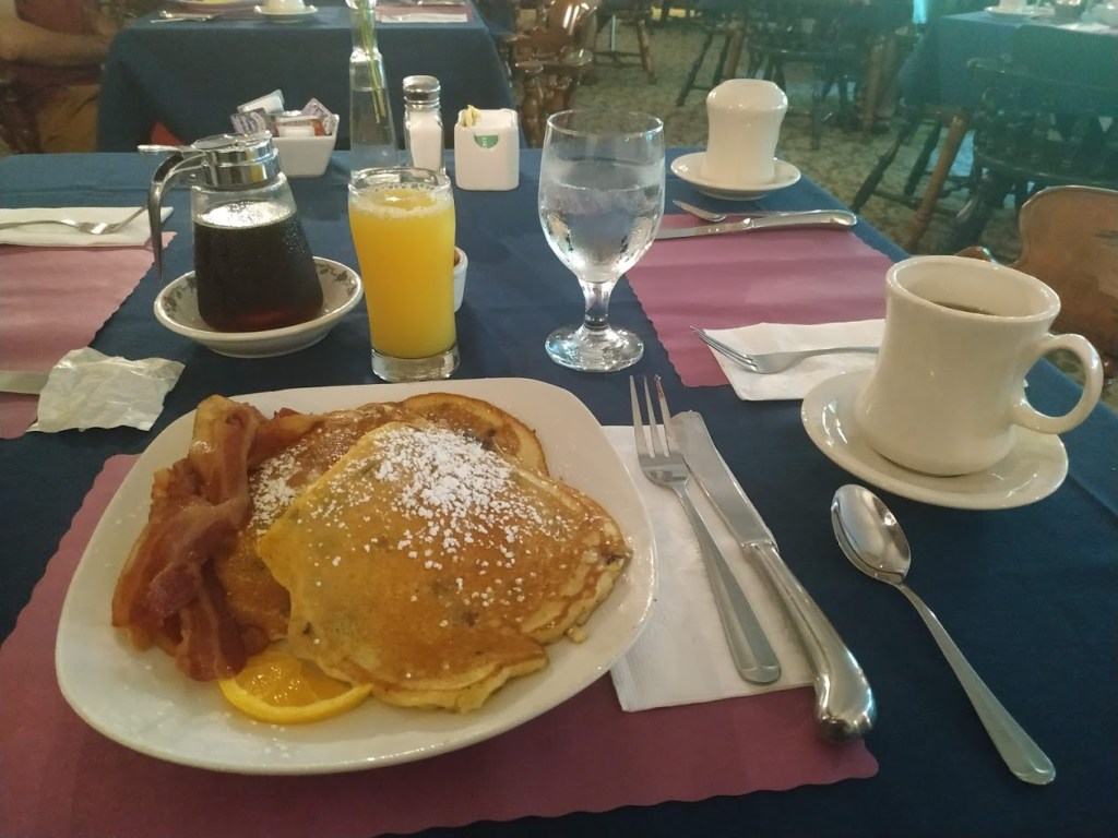 Leider habe ich in der letzten Nacht nicht so gut geschlafen. Irgendwie konnte ich nicht einschlafen. Trotzdem bin ich um kurz nach 6h aufgestanden und habe vor dem Frühstück schon meinen Rucksack gepackt. Pünktlich um 7:30 war ich unten und habe mir meine Blaubeer-Pancakes schmecken lassen. Ganz in Ruhe und ganz entspannt.