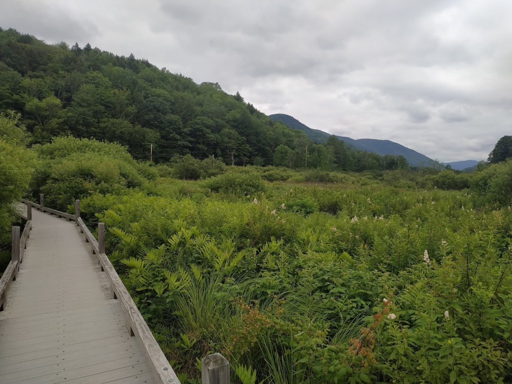 Zuerst schlängelte der Trail sich abwärts hin zum Gifford Woods State Park. Das ist ein hervorragend ausgebauter Campingplatz. Und entsprechend viele Day-Hiker habe ich in der nächsten Stunde gesehen. Und direkt danach kommt der Kent Pond. Ein hübscher kleiner See.