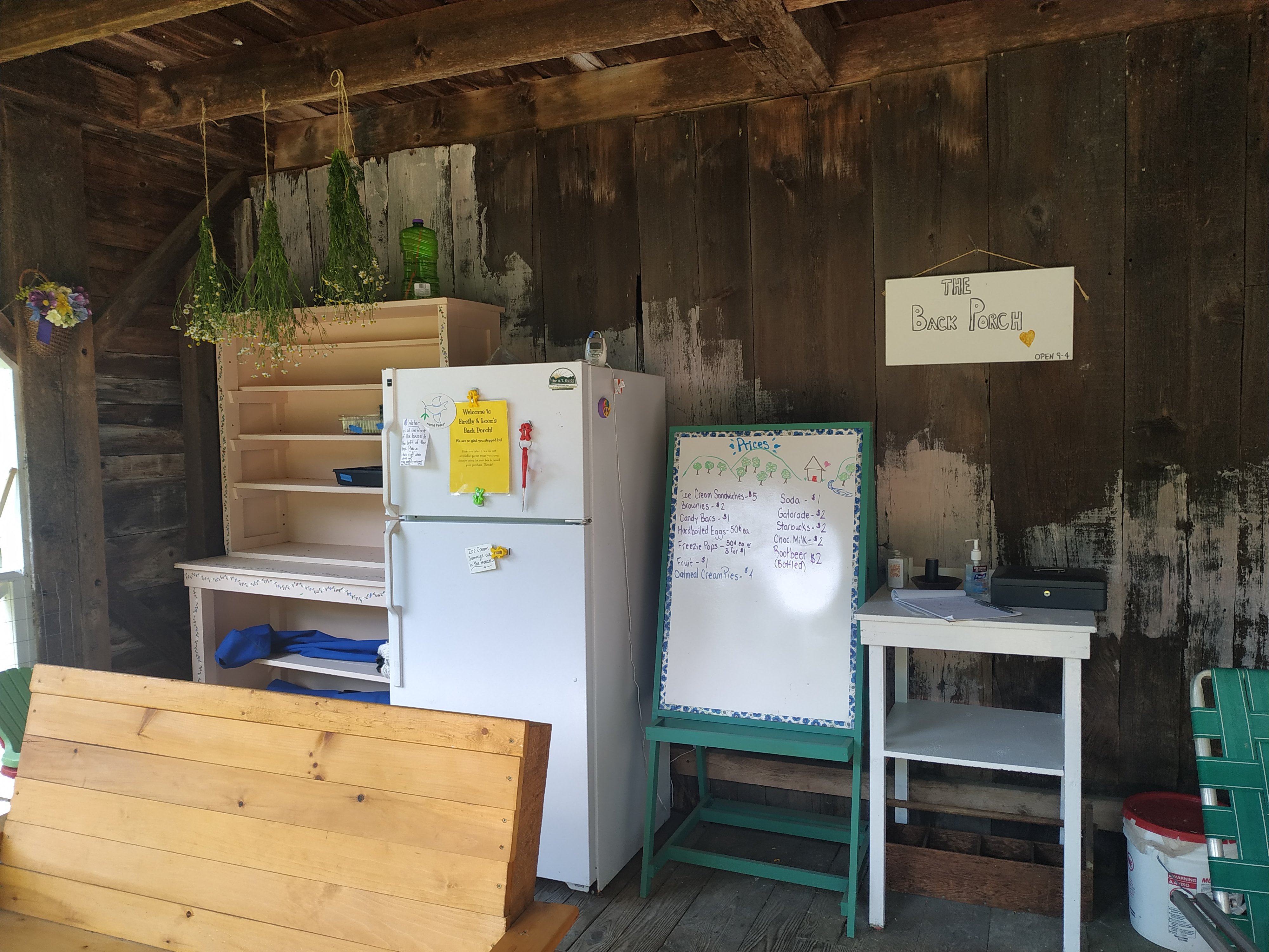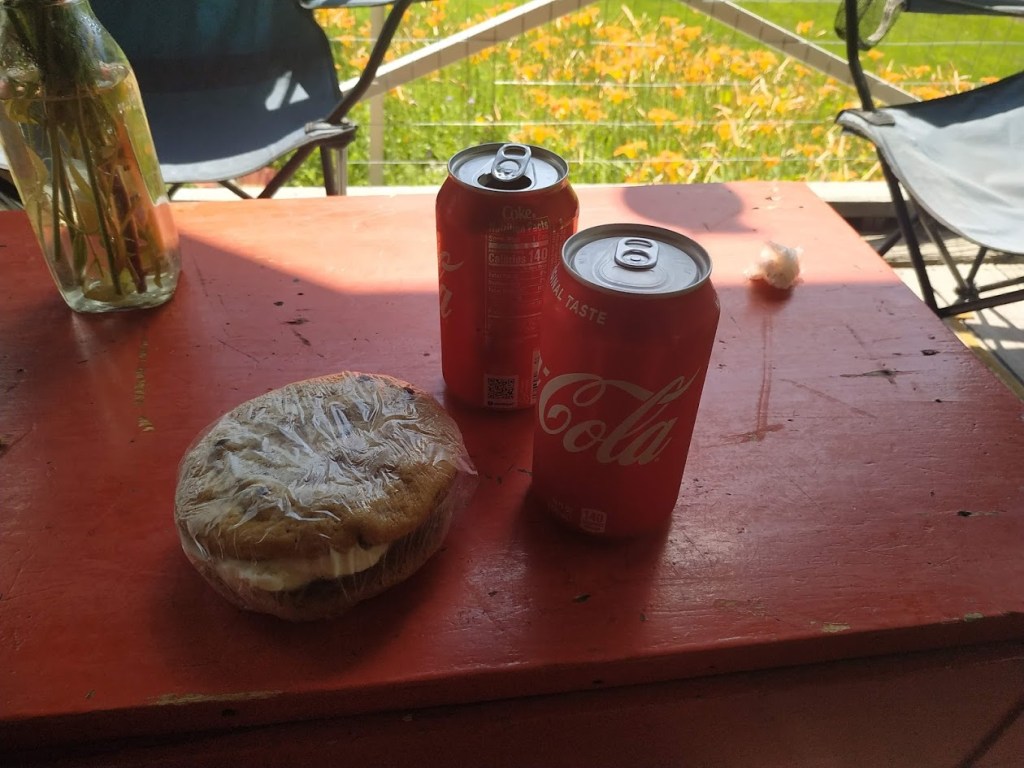 Gut das nach acht Meilen und drei Wiederholungen die Pomfret Road kam. Von hier aus war es nämlich nur ein Katzensprung zur Back Porch. Ein Thru-Hiker Ehepaar hat hier ein Haus gekauft und verkauft auf der Veranda jetzt kalte Getränke, selbst gebackenes und selbstgemachte Eis Sandwiches. Und hier habe ich zugeschlagen. Im Schatten auf der Veranda sitzend habe ich zwei Sodas, einen riesigen Brownie und ein Eis Sandwich vernichtet. Danach war ich voll und es ging mir besser.