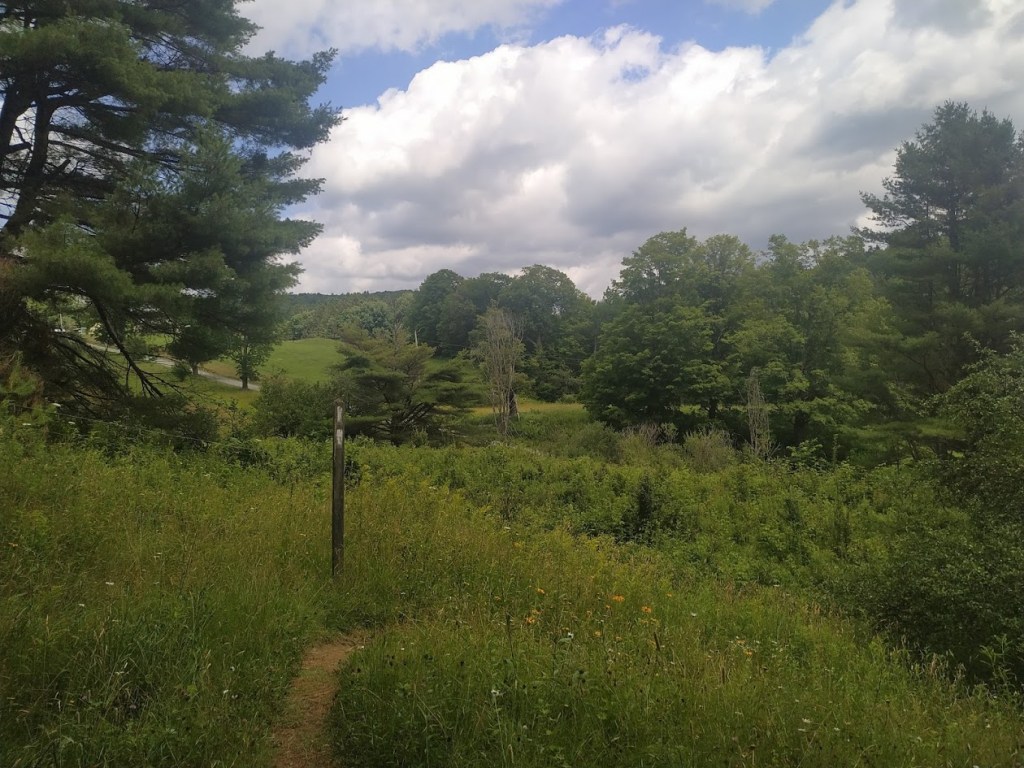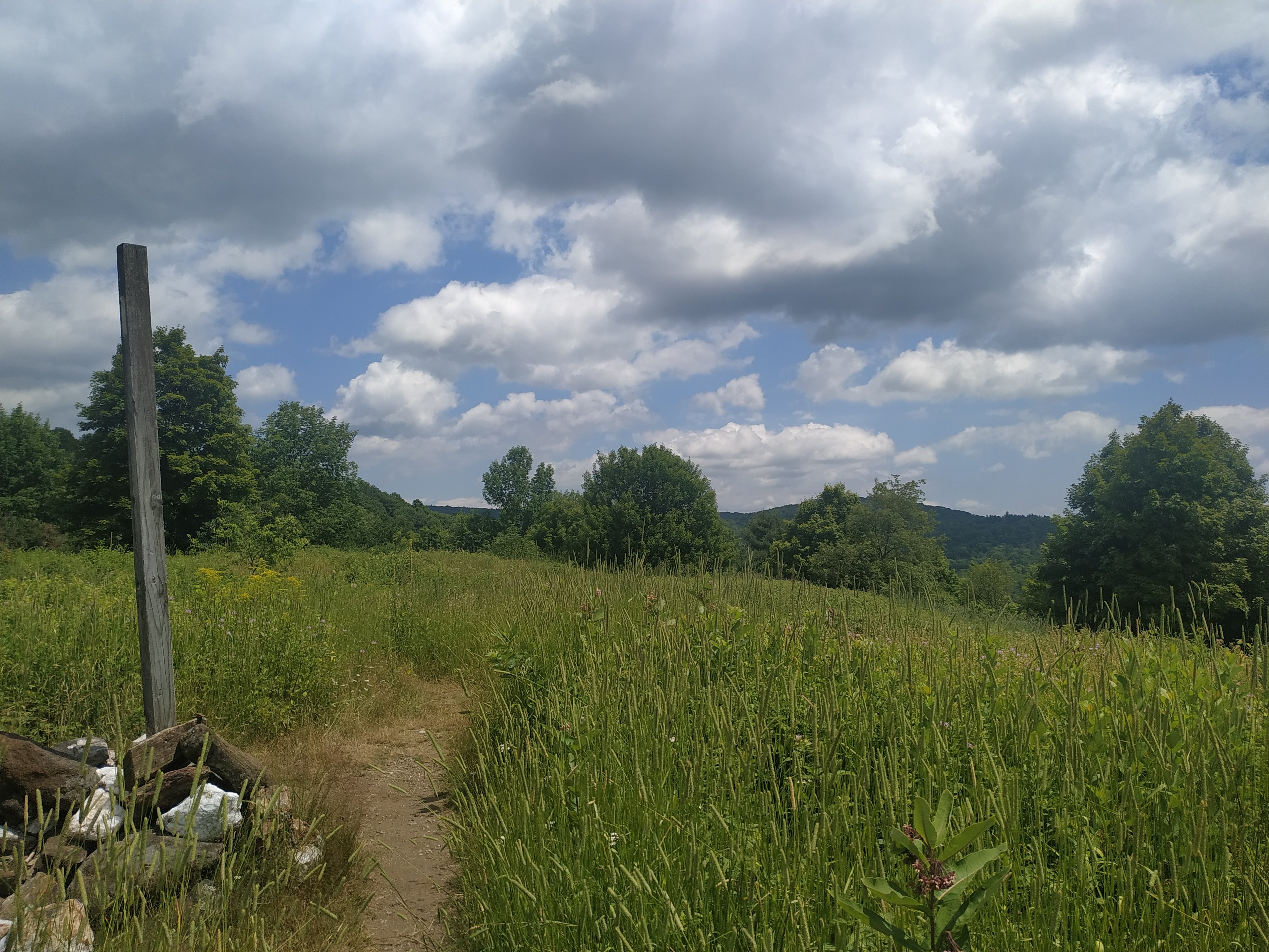 Und die Energie sollte ich auch gut gebrauchen können. Direkt nach der Pause kam ein Anstieg über eine halbe Meile und 700 Fuß. Und das inzwischen in der Mittagshitze. Danach ging es ,wie heute nicht anders zu erwarten weiter: beständig hoch und runter. Nach 13 schweißtreibenden Meilen stand ich auf dem Gipfel von Thistle Hill. Theoretisch sollte es von hier aus nur noch leicht rollend abwärts gehen.