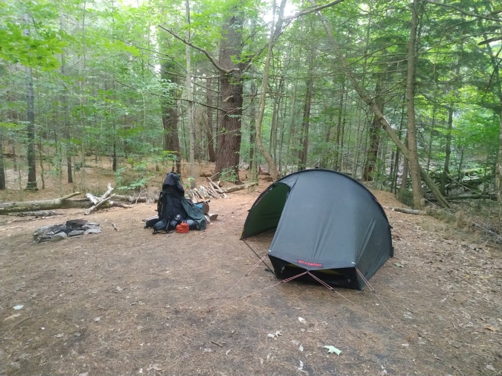 Um 18:50 habe ich den Shelter erreicht. Und da war ich ziemlich erschlagen und von Mücken zerstochen. Mein Zeltplatz ist ziemlich hübsch, dafür ist die Wasserquelle nicht wirklich toll. Aber es hat gereicht, um meine Füße zu kühlen und mich und meine Beine etwas zu waschen. Und das war auch beides dringend nötig.