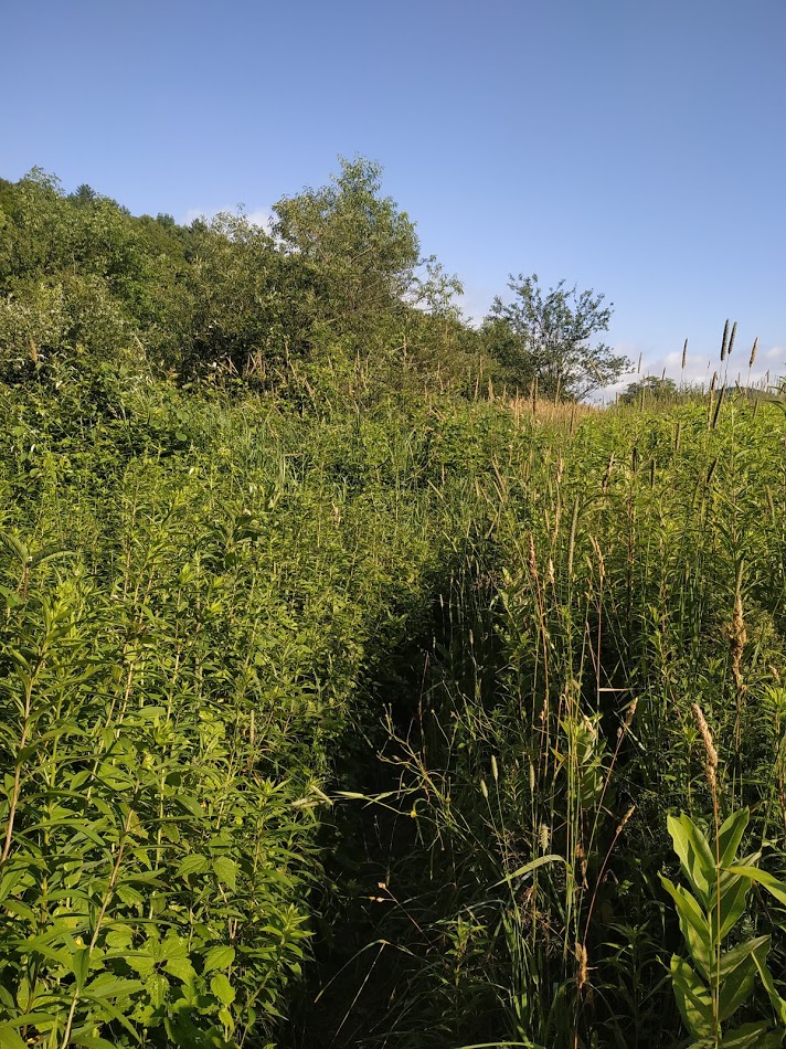 Danach zeigte sich dann auch, was heute für ein Tag werden sollte: ein heißer Tag mit hoher Luftfeuchtigkeit und ständigem Auf und Ab. Ein PUDD (Pointless Up and Down Day). Dabei war das Muster meist das gleiche: ein steiler Aufstieg durch den Wald, gefolgt von einem grasigen und dadurch ziemlich schwül heißem Gipfel und einem steilen Abstieg runter zu einem Bach.
